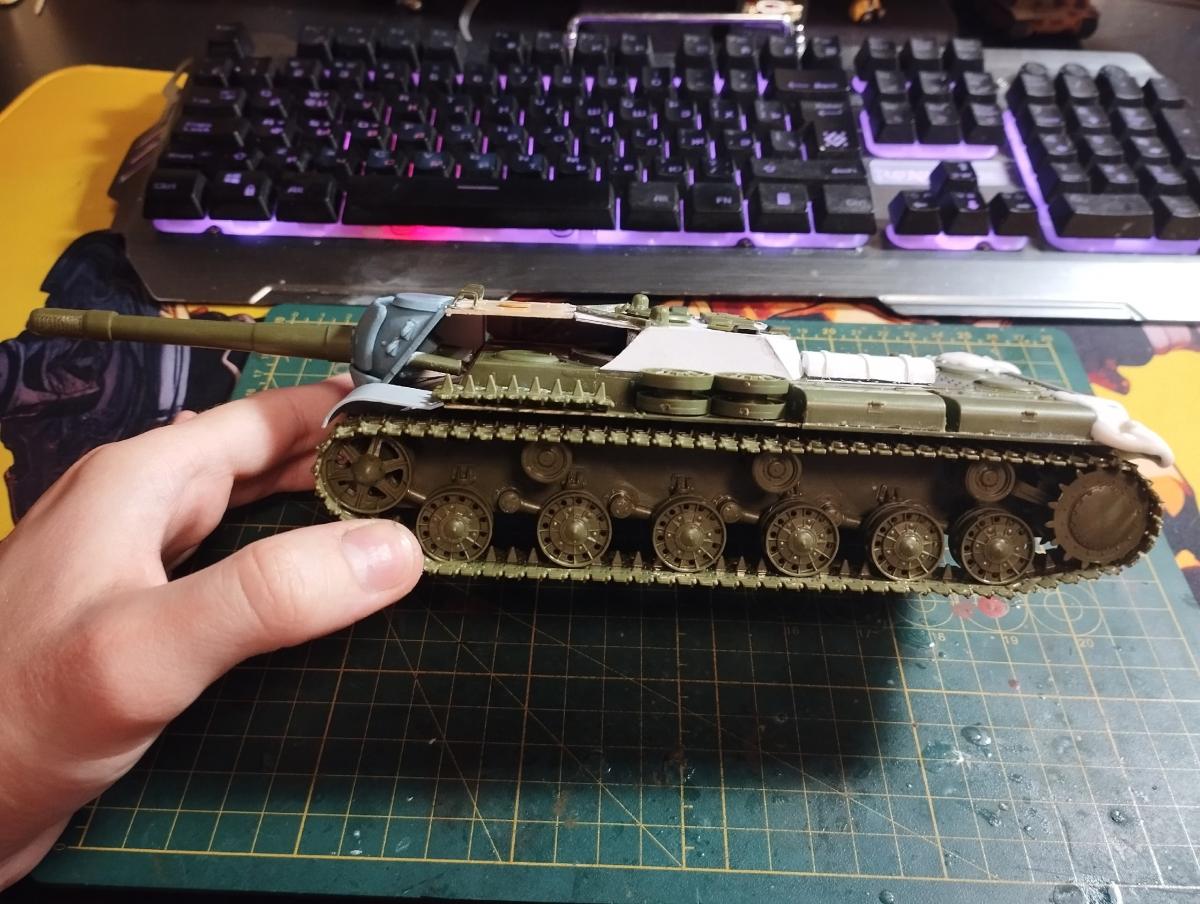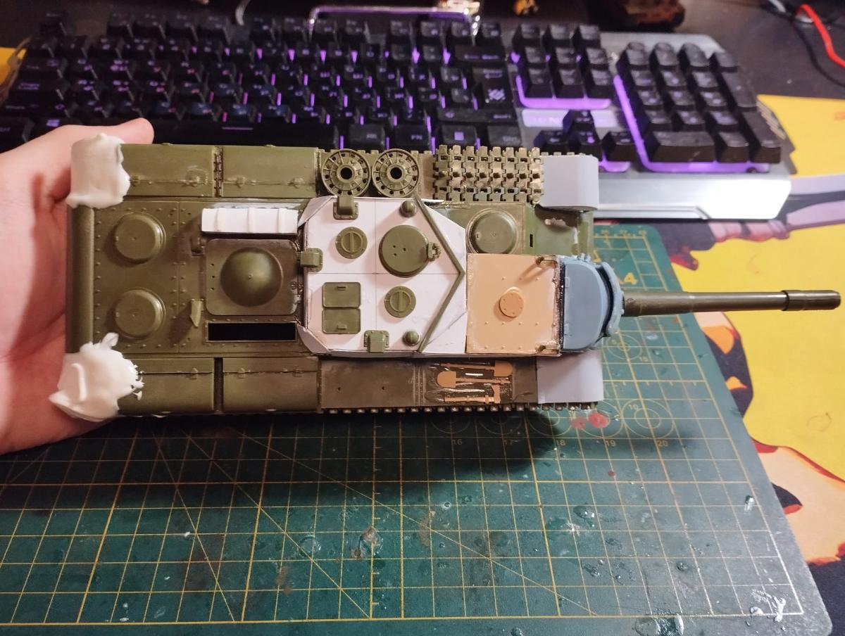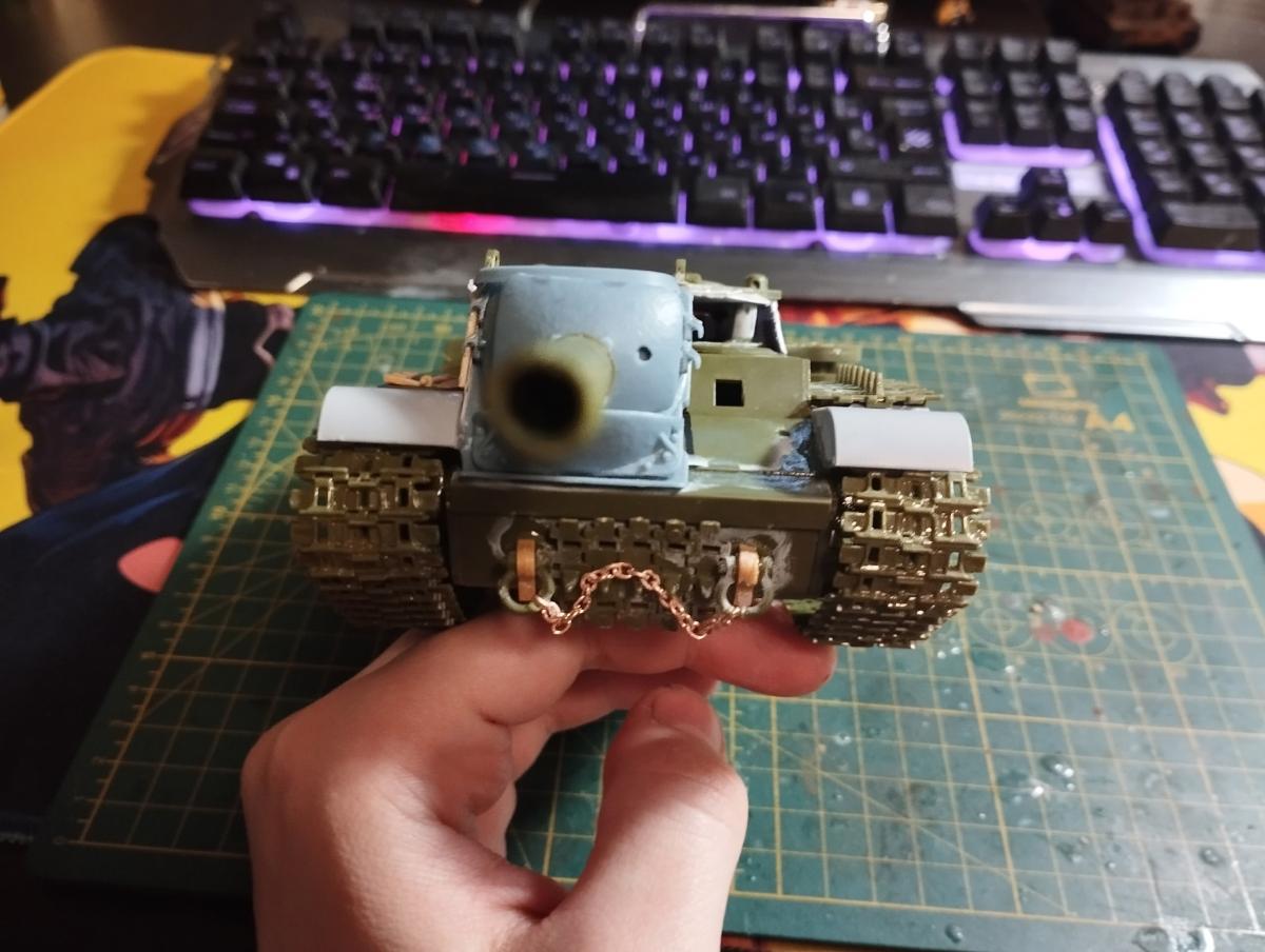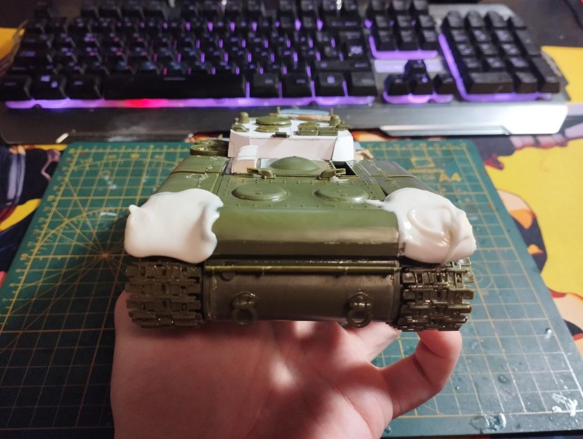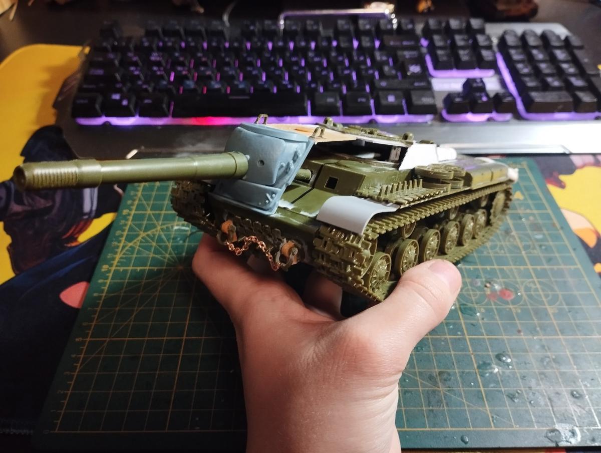 Вместе с товарищем из группы в ВК " Танковое бюро 13" мы в процессе мозгового штурма создавали танк Кв-1ш2. Этот танк сделан на основе корпуса от танка кв 2. В этом танке стоит 152 мм орудие мл-20. Вообще мы собирались создать танк Кв-1ш По его 3д модели, но в ходе обсуждений мы поняли, что некоторые детали в корпус танка не подойдут или могли бы мешать экипажу, поэтому приняли решение сместить башню в бок что бы механику водителю и другим членам экипажа было удобнее к примру. Маска орудия этого танка сделала из заказных на 3д принтере деталей танка ису-122с. В дальнейшем все мелкие детали заделаются и будут скрыты и зашпаклеваны, так как сейчас эта модель только в процессе создания. Поэтому модель танка может выглядеть весьма неумело и плохо. Но это лишь моя первая самоделка по 3д модели как пересоздание велосипеда.