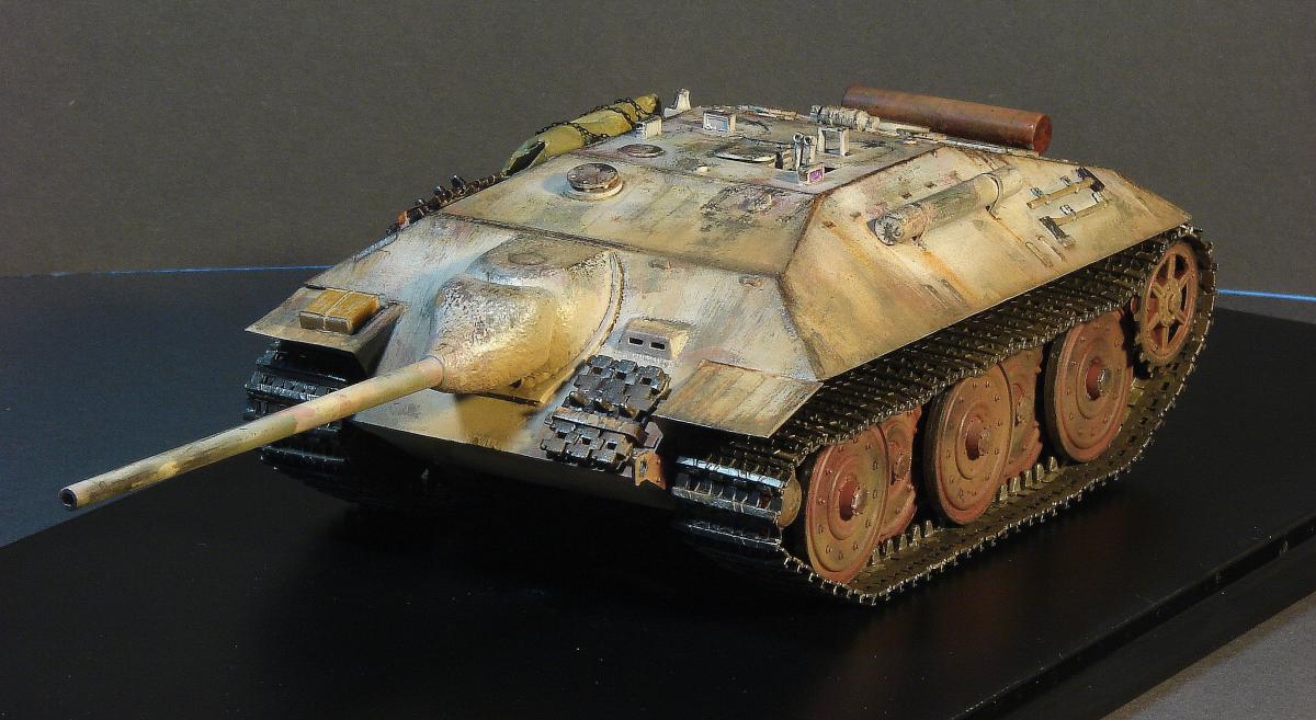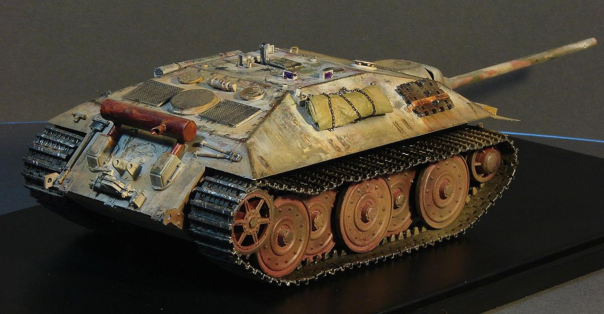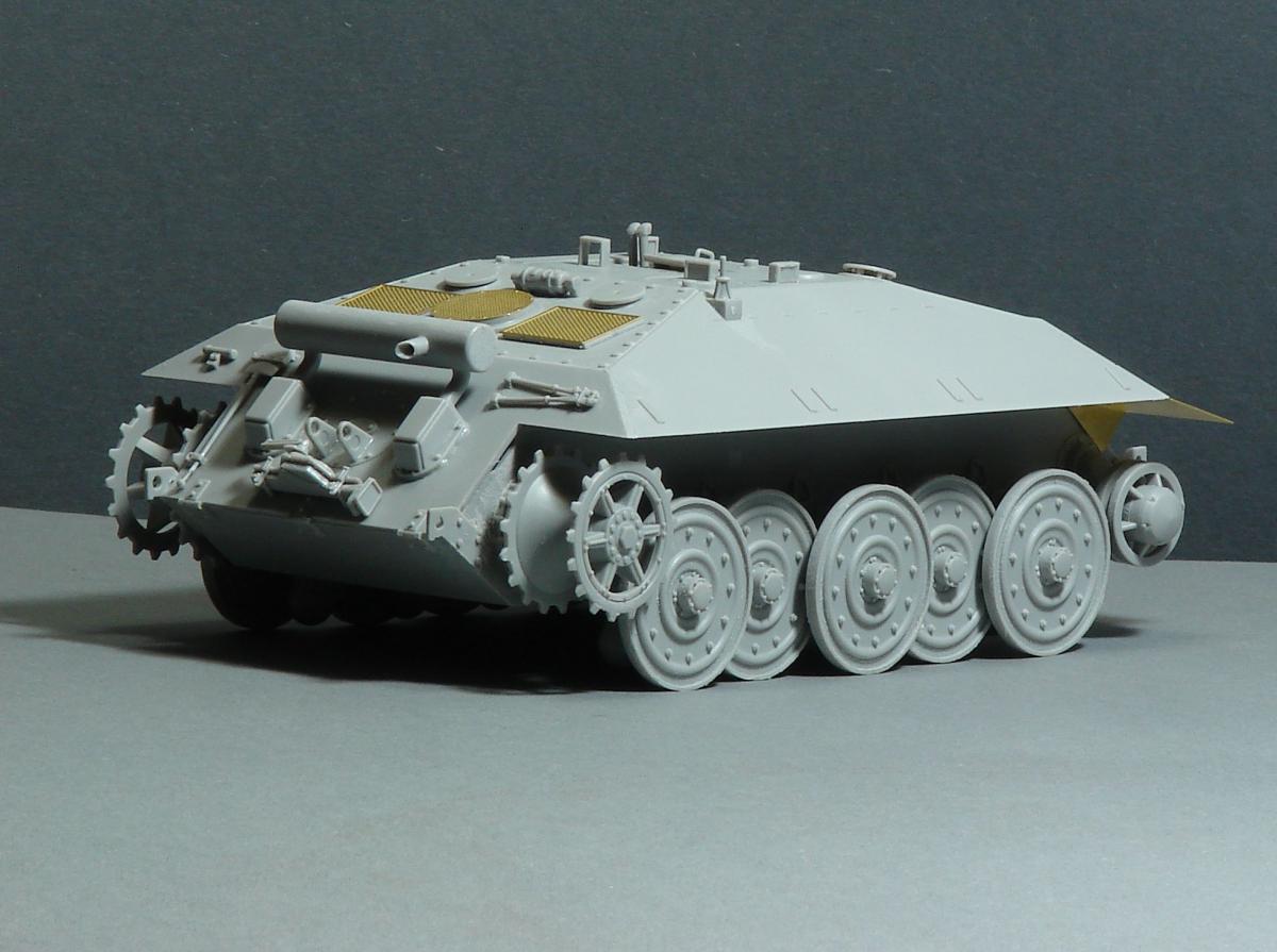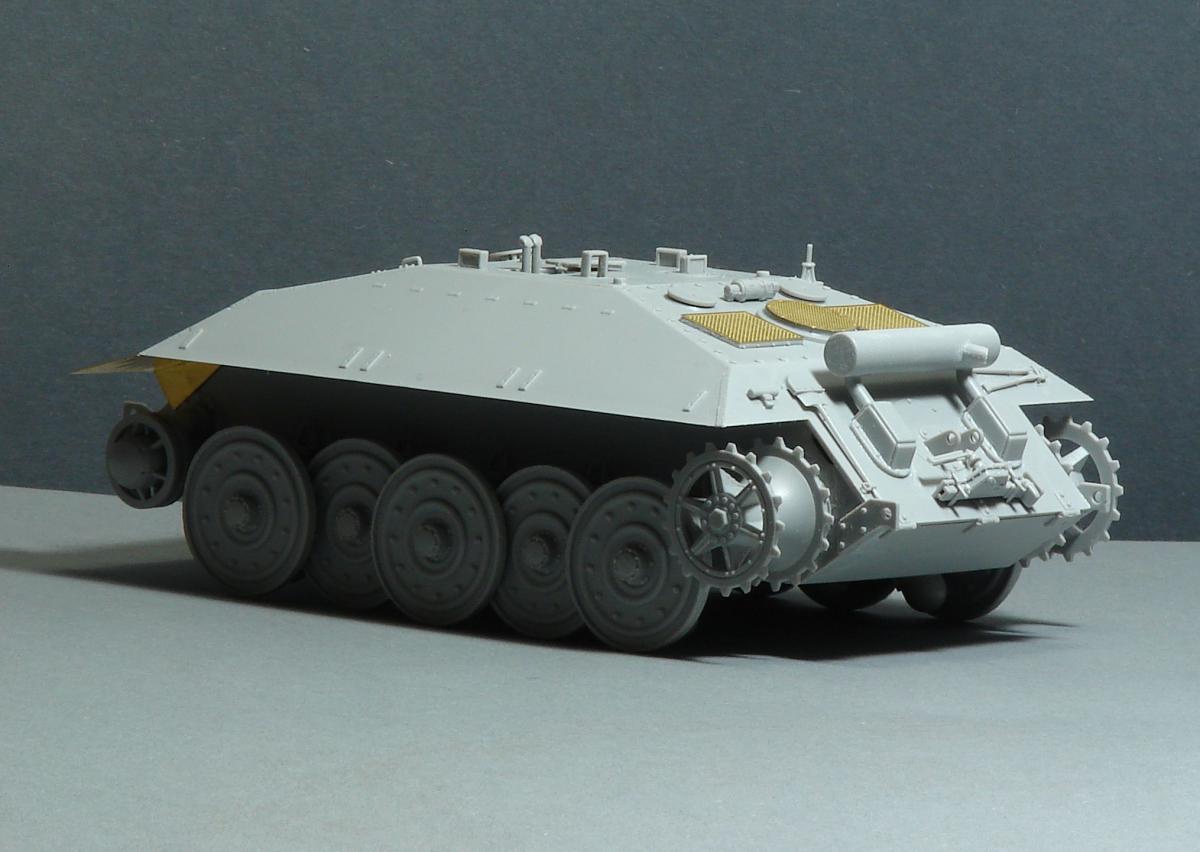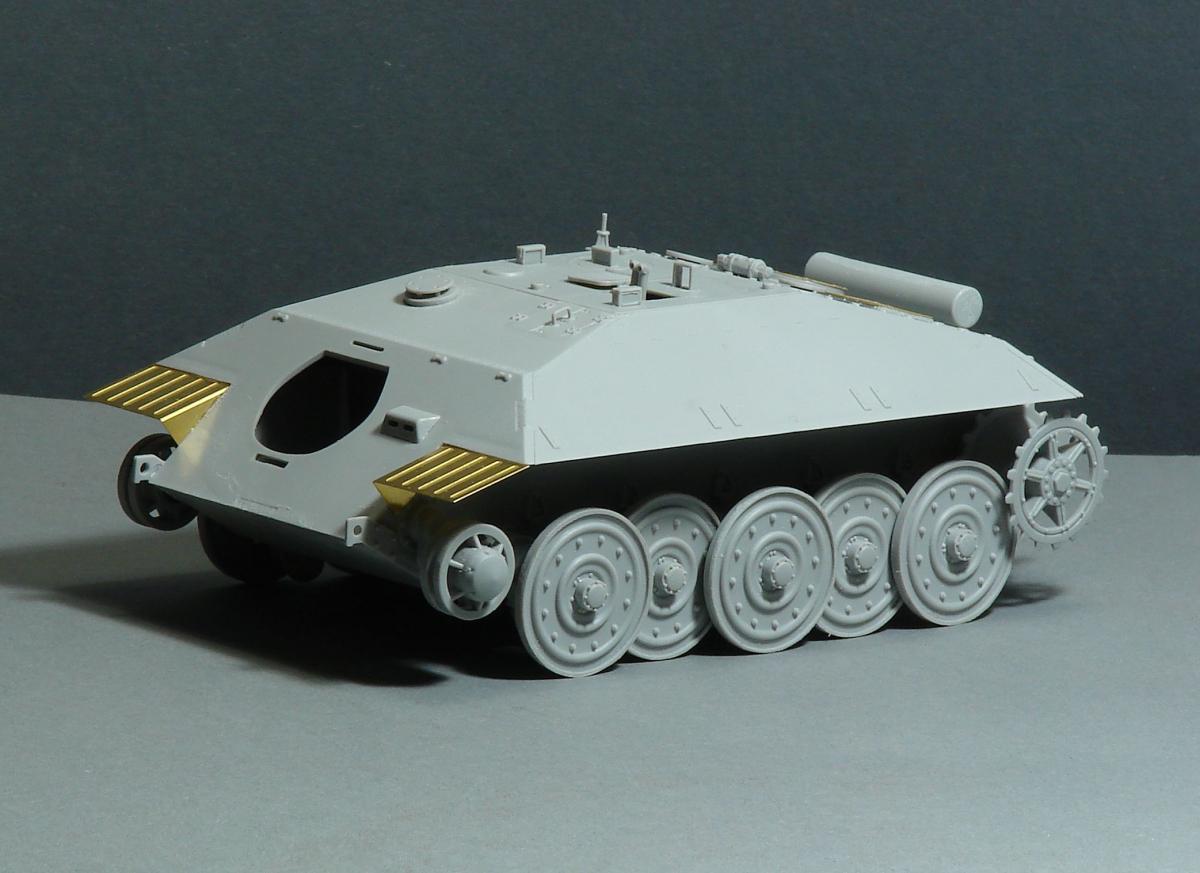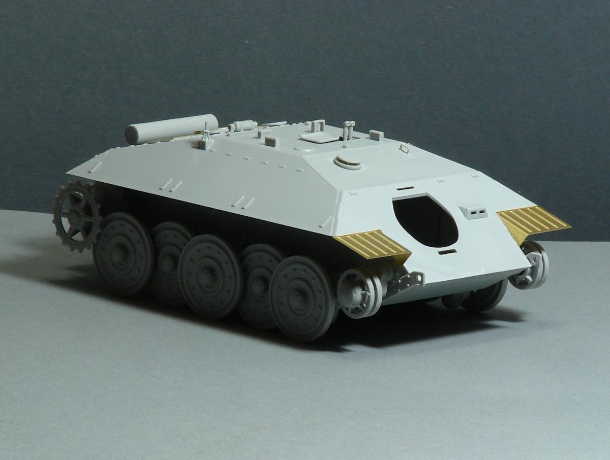 German Entwicklungsfahrzeug E-25Из коробки Trumpeter в масштабе 1/35 Работа была начата еще когда он был на полке в прем-магазине WG (и конечно же у меня в ангаре), и не намеревалась посвящаться его безвременной утрате. Но, увы, окончание работы будет, уже так сказать когда он "Снят с производства". Не первый год собираю модели из коробки, но это были всегда машины, мотоциклы, грузовики и крайне редко вертолеты. А вот танк собираю впервые: Не люблю заниматься глубокими изучениями исторических деталей, поэтому прошу любителей достоверности не критиковать сильно. При производстве применяются расходные материалы от Tamiya. Окраска основными цветами производится аэрографом... Качество литья от Trumpeter хорошее, больших проблем при сборке нет. Чуть чуть подточить, малость подрезать и все садится идеально. Сборка основной части корпуса прошла быстро и не заметно: Сначала была осуществлена идея наклепать травлёнки на корпус. И вроде бы все ничего, но как то начал теряться масштабный образ модели. Толстые борта и тонюсенькие крылышки - смотрелись как то несУрьёзно... Поэтому от металла на крыльях пришлось отказаться и вернуть обратно родимые литые пластиковые и отправляться дальше в путь... В первой задумке был двухцветный зимний несмываемый камуфляж. Но полученный результат стал не по душе и пошел под перекраску. Вот с наборной пластиковой гусеницей, пришлось повозиться изрядно. Судя по всему пресформа штампует их не только для упаковки в Е-25 и порядком изношена...тут много мусора. Так что напильник и цанга в помощь...А лежащую в комплекте резиновую гуслю желания нет вообще применять. Наконец гусеницы подготовлены. Базовый цвет на гусеницы уже нанесен, сейчас занимаюсь их оживлением... в ближайшее время выложу отчет по их окраске и монтажу на основную часть корпуса.