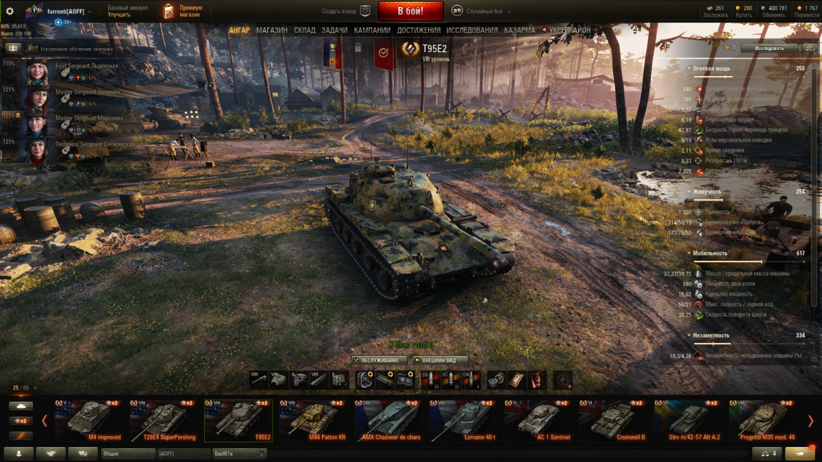 Ап T95E2 планируется в 2019-2020 году?Обращение: Уважаемые разработчики, планируете ли вы апать этот танк в 2019-2020 году, или будете ребалансить его вместе с другими танками как планировали? Предложение по апу данной машины; (ттх динамики и дпм+точность, разброс+,броня) 1) поднять ему максималку на 10-12км и поставить новый двигатель с 560 до 580 л.с. 2) апнуть орудие в плане пробития бб до 192 (как у patton kr) и кс до 258 3)время сведения поставить вместо 2.21 на 2.05, разброс с 0.35 до 0.33. 4)средний урон в минуту увеличить с 2000к до 2400 минимум, лучше до 2550. 5)зашить маску орудия и накинуть мм в ком.башенку для уверенной игры. П.с. Многие игроки даже и не ждут что вы дадите ему премиальный статус, но ттх ему стоит подкрутить в текущей гонке вооружений, попросту выезжаю на O-Ho и получаю фул фугасов в ком.башенку, это не нормально, это не лт и не ст, одно остаётся, стоять в кустах и с дистанции накидовать и при акционном статусе ещё в минус уходить на 2000-6000к без према при хорошем бою, прошу просто дать танку премиальный статус, или апнуть приблизительно как указано, это машина не стоит тех усилий старой реферальной программы...