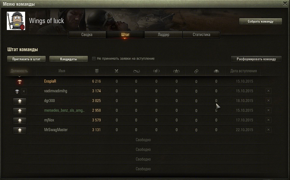 http://ru.wargaming.net/clans/media/clans/emblems/cl_493/169493/emblem_195x195.png?1430115855.03 Здравствуйте уважаемые господа и дамы, танкисты, троЛЛи, танкистотролЛи и т.д.!!! Мы приглашаем в ряды нашего клан надежных и уверенных в себе бойцов. Клан всегда активно участвует на ГК, УКРЕПе, КБ, а также принимает участие в различных турнирах и т.д. Сейчас идёт подготовка рот к 4 компании. Вы можете гарантированно занять свое место, а не метаться потом в поисках роты, которая вас примет. http://6.firepic.org/6/images/2015-11/05/k0vjug4s8f1u.png Требования: http://2.5.4.firepic.org/2/images/2015-11/03/ogwomh4z4fdz.gif http://vk.com/images/stickers/2333/64.pngСтатистика: 50%+http://vk.com/images/stickers/2342/64.pngКпд(РЭ): 1250+ http://vk.com/images/stickers/2341/64.pngПрайм: 17:00-21:00 МСКhttp://vk.com/images/stickers/2319/64.pngСвязь: TS ⇛зашел в игру зашёл в TS⇚http://vk.com/images/stickers/2309/64.png Топ техника в ангаре обязательна!!! И техника 8 ЛВЛ!!!http://vk.com/images/stickers/2307/64.pngЗаявку в клан оставлять: ⇨http://ru.wargaming.net/clans/169493/⇦или⇨ http://dacksclan.wclan.ru/recruitment/index ⇦ в военкомате на сайте клана. Сайт клана ⇨ http://dacksclan.wclan.ru/ ⇦ Наши вакансии: Командир подразделения Офицер по кадрам Боец (рекрут) Рейтинг Эффективности (min) 1400+ 1300+ 1200+ Рейтинг Win8 (min) 1800+ 1600+ 1500+ Процент побед (min) 54++ 52+ 50+ Рассмотрим все варианты, пишите ваши предложения в ЛС. Спасибо за внимание, желаю приятного всем дня. с уважением Сан Санычhttp://cdn-frm-eu.wargaming.net/4.3/style_emoticons/wot/Smile_honoring.gif http://vk.com/images/stickers/2315/64.png