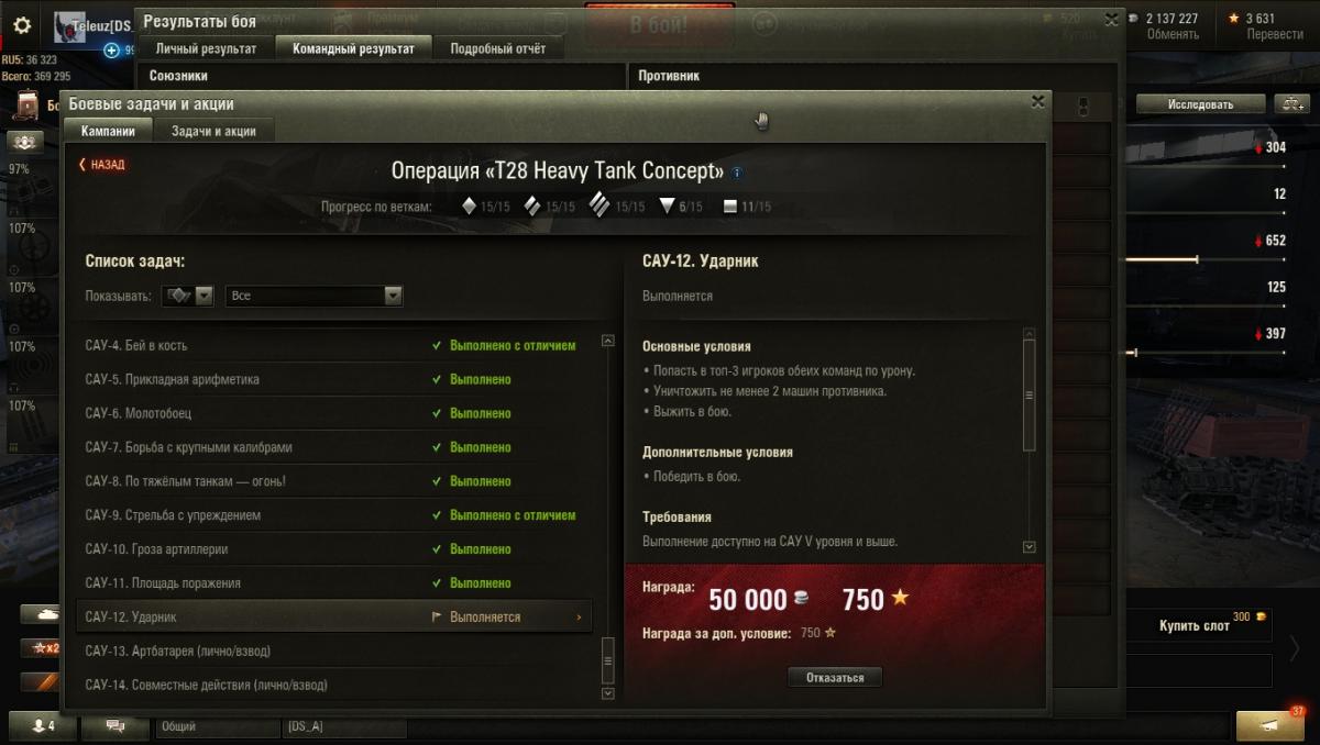 Друзья, на эту боевую задачу САУ-12 я потратил около 2 часов, ну не везло мне с картами, топом и тд. Вот значит я её в игре выполнил, обрадовался. Бой закончился, а задача не засчиталась, как так, я не знаю. С интернетом всё хорошо. До этого делал штук 6 задач, все выполнились. Даже и не пишите что (МОЖЕТ БЫТЬ ТЫ ТОЛЬКО НАЧАЛ ЕЁ ВЫПОЛНЯТЬ)-нет, я точно знаю. Вот скриншоты
