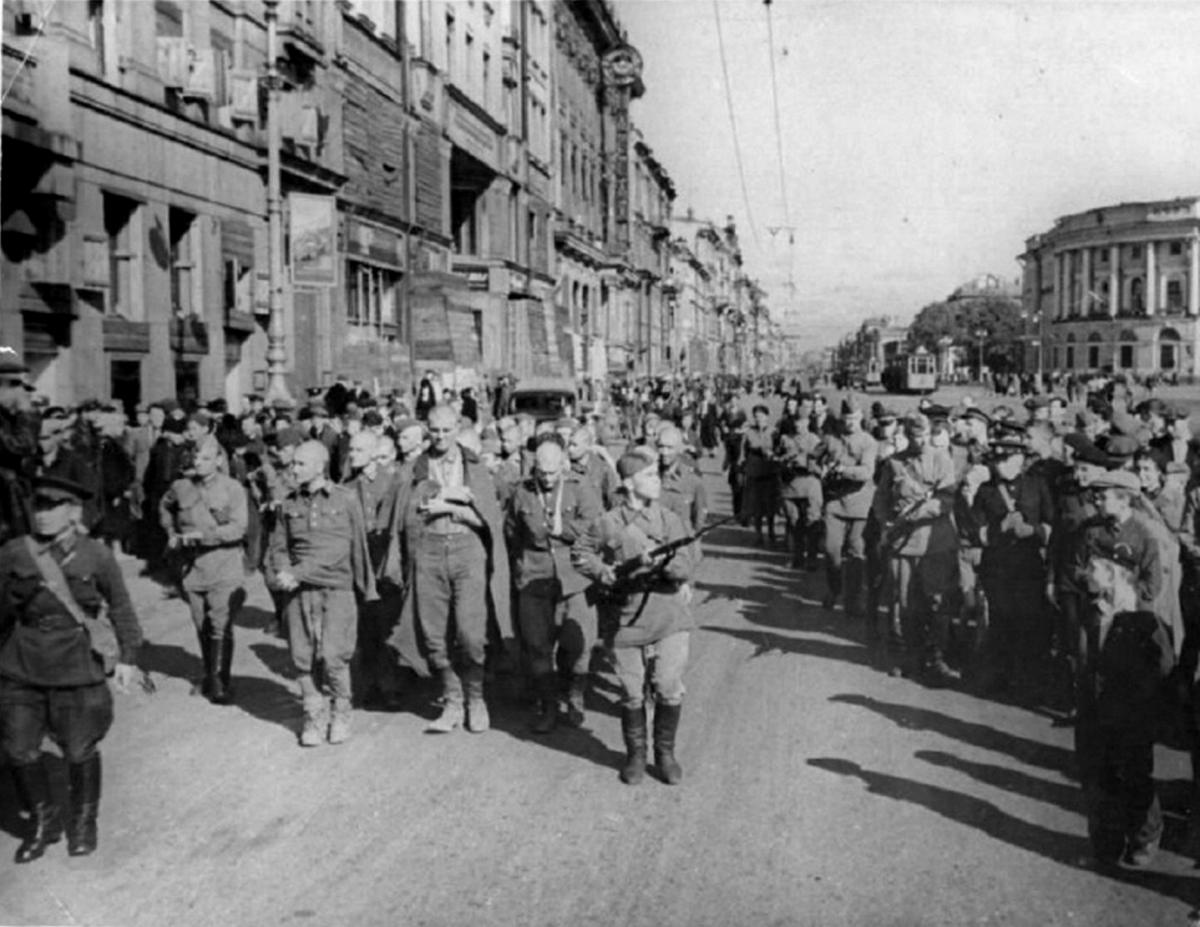 Всем известен "июльский парад" немецких пленных в Москве 1944 года. Но я о другом, августовском 1942-го в Ленинграде. http://cdn-frm-eu.wargaming.net/wot/ru/uploads/monthly_10_2016/post-57967377-0-28582300-1475774634.jpg я обратил внимание на того, кто ранен в левую руку. Хуго Босс не делал для вермахта гимнастёрок. Это немцы перед тем, как их провели по проспектам Ленинграда. http://cdn-frm-eu.wargaming.net/wot/ru/uploads/monthly_10_2016/post-57967377-0-31830800-1475774859.jpg тут их обрили и повели. Напоказ. http://cdn-frm-eu.wargaming.net/wot/ru/uploads/monthly_10_2016/post-57967377-0-70268200-1475774962_thumb.jpg http://cdn-frm-eu.wargaming.net/wot/ru/uploads/monthly_10_2016/post-57967377-0-05243200-1475774992_thumb.jpg http://cdn-frm-eu.wargaming.net/wot/ru/uploads/monthly_10_2016/post-57967377-0-76424800-1475775016_thumb.jpg http://cdn-frm-eu.wargaming.net/wot/ru/uploads/monthly_10_2016/post-57967377-0-74225800-1475775047_thumb.jpg и вот получают от гражданки: http://cdn-frm-eu.wargaming.net/wot/ru/uploads/monthly_10_2016/post-57967377-0-32330800-1475775094.jpg «Они шли мимо Витебского вокзала. Немцы шли молча. Понурясь. Конвоиры скорее охраняли их от населения – да и вряд ли кому из немцев пришло бы в голову бежать. Люди, смотревшие на фрицев, в основном молчали. Вот кто ругал и проклинал – так это инвалиды. Если б не образцовое выполнение конвоем своих функций, немцы бы точно получили бы по шее костылями. Но конвойные так оберегали пленных, что потом уже ругали больше их, чем немцев. Я в это время думал, что повезло фрицам – они убивали наших, получали за это награды, а вот теперь идут здоровенькие, живые и за свои подвиги не несут никакого наказания…». Немцы, что шли в июле 1944 года шли по Москве, жаловались на голод. Но как они жили в блокадном Ленинграде? Кончилась война с Германией в 1955 году и пленные поехали домой. В ватниках. Возможно и в гимнастёрках. http://cdn-frm-eu.wargaming.net/wot/ru/uploads/monthly_10_2016/post-57967377-0-39550600-1475775590.jpg
