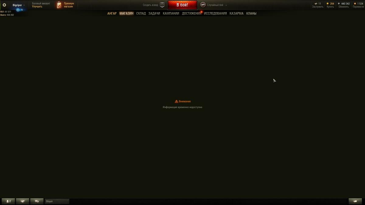 Приветствую,ситуация такая. Пару дней установил WoT на ноутбук,магазин работал. Не каких сторонних модов не устанавливал,в папке игре не ковырялся. Через 1 день зашёл в игру нажимаю внутри игровой магазин,крутит логотип Wot,пропадает и не загружает магазин. Такое же происходит и с полевой почтой. Что делать? Как вылечить данную ситуацию?