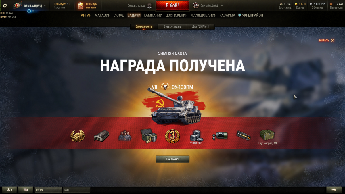 Два пути зарабатывания очков, все уже есть в клиенте и на официальном сайте. https://worldoftanks.ru/ru/news/special-offers/korolevskaya-okhota-nachinayetsya/ Ветку для скиловиков рассматривать не буду, а про путь железнозадых распишу подробнее. Итак для прохождения марафона потребуется суммарно 280 000 чистого опыта (20 000 в сутки). Т.е. не того, что начисляют с х2 и премакком, резервами и прочим, а тем, что отображается в табличке. Причем, для защиты от ботов, для того, чтобы опыт засчитали, нужно попасть в топ-10 своей команды. В случае, если брать средний показатель в 400(победы9поражения, КМК так и покажут), то для получения танка нужно провести 700 боев за две недели или провести в игре 82 часа либо около 6 часов в день. Если вы играете хуже среднего - больше, лучше среднего меньше, но в любом случае диапазон будет от 4 до 8 часов в сутки. Итог: я думаю, что не все смогут получить сей танк бесплатно и потому придется докупать пакеты. Сам танк скорее всего оценят в 3 000 рублей, как и любой другой премтяж 8-го уровня. Картофан упоролся и выставил цену в 4 000. Чем они там вообще думают? Начинаем считать: Для получения скидки в 60% потребуется 110 000 (8 000 опыта в сутки) чистого опыта или 275 боев, оно же 32 часа, т.е. играть нужно 2,3 часа в день (от 1,5 до 3 в зависимости от скилла) . Для получения скидки в 70% потребуется 145 000 (10 400 опыта в сутки) чистого опыта или 362 боя, оно же 42 часа, т.е. играть нужно 3 часа в день (от 2 до 4 в зависимости от скилла). Для получения скидки в 80% потребуется 185 000 (13 200 опыта в сутки) чистого опыта или 463 боя, оно же 54 часа, т.е. играть нужно 4 часа в день (от 3 до 5 в зависимости от скилла). Для получения скидки в 90% потребуется 230 000 (16 400 опыта в сутки) чистого опыта или 575 боя, оно же 67 часов, т.е. играть нужно 5 часов в день ( от 4 до 6 в зависимости от скилла). Первые три задачи помогут объективно оценить свои силы. Для первого , второго и третьего этапов нужно набрать 3000, 6000 и 12 000 опыта за каждый, либо 3 000, 9 000 и 21 000 - суммарно. Т.е. если вы кое-как сумели набить за день первый этап - проще задонатить или пройти мимо, прошли два этапа - при сохранении темпа можно купить танк дешево, а если осилили сразу три в день старта марафона - то у вас есть все шансы на халяву. Мое мнение о предстоящем марафоне: работа над ошибками проведена, рад, что условия выставили заранее. Что не так? Дали бы не 14 дней а 28 - было бы лучше и игрокам и ВГ, так как и онлайн бы подняли и больше людей не испугалось бы столь жестких условий, однако, это лишь мои догадки. Поживем-увидим. Мое мнение о танке: Он очень похож на старого каена, до того, как ему дали нормальную пушку. Мне он тогда особо не понравился, но если кто любит играть на тяже от ДПМ-а а-ля Т26Е5 - мастхэв. Вот такие пироги. А что вы думаете об ивенте, заданиях и прочем? Прошу оставлять свои комментарии. UPD от 14-09. Поговорим о подставе: 4 000 - это цена не только танка, но и всего, что картошка дает в нагрузку, в том числе оборудования, расходников, личных резервов и серебра. Включить в ценник подобное "имущество" - мягко говоря, подло. Раньше, с пакетами, было гораздо лучше. Я принял решение отказаться от марафона, ведь куда проще купить премтанк за 2 000 рублей, а со скидкой 15-30% (что не редкость, Сомика за 1800 выставили) - еще дешевле. ИМХО: жадность WG зарезала хорошую идею на корню, ибо 50%-я "скидка" на каена - цена хорошего одноуровниевого премтанка без кучи ненужного барахла, из-за чего вся возня в погоне за скидкам
