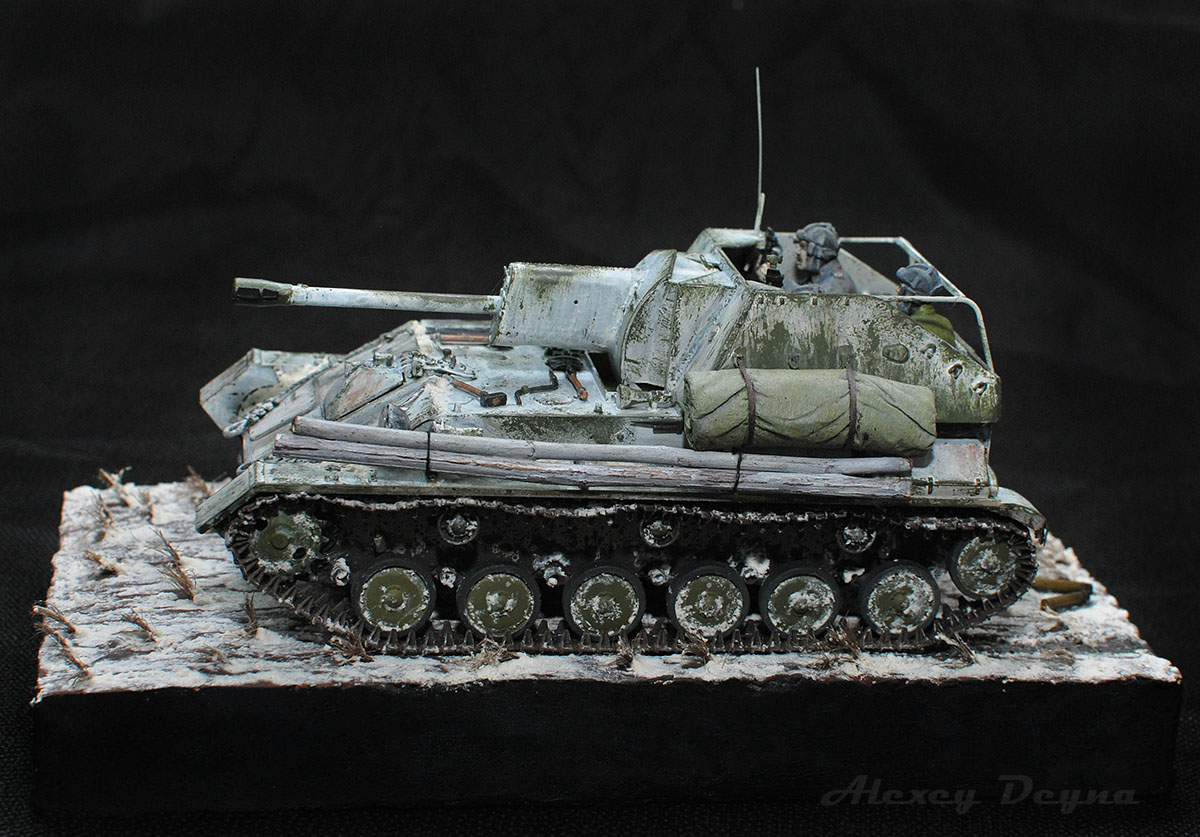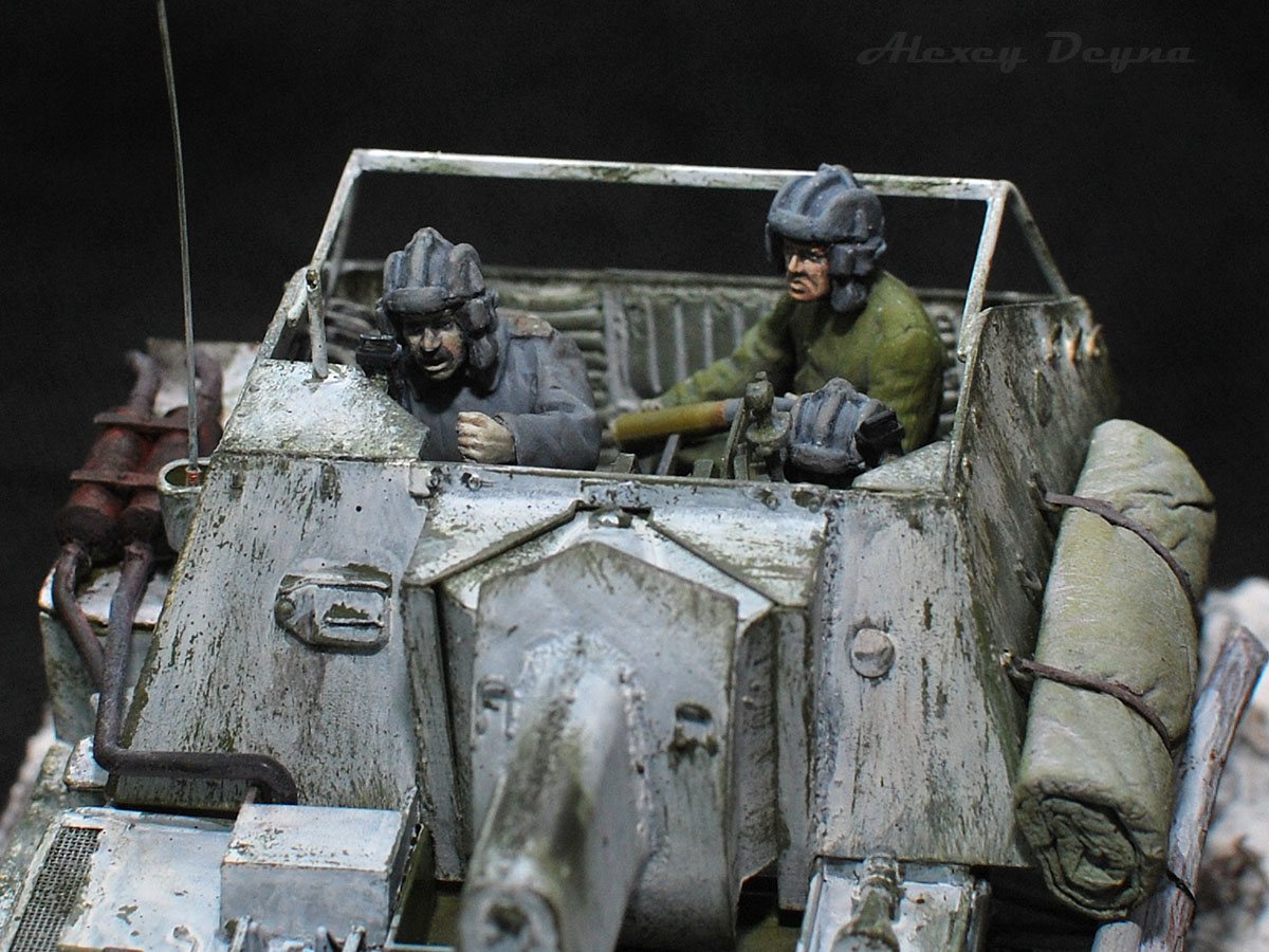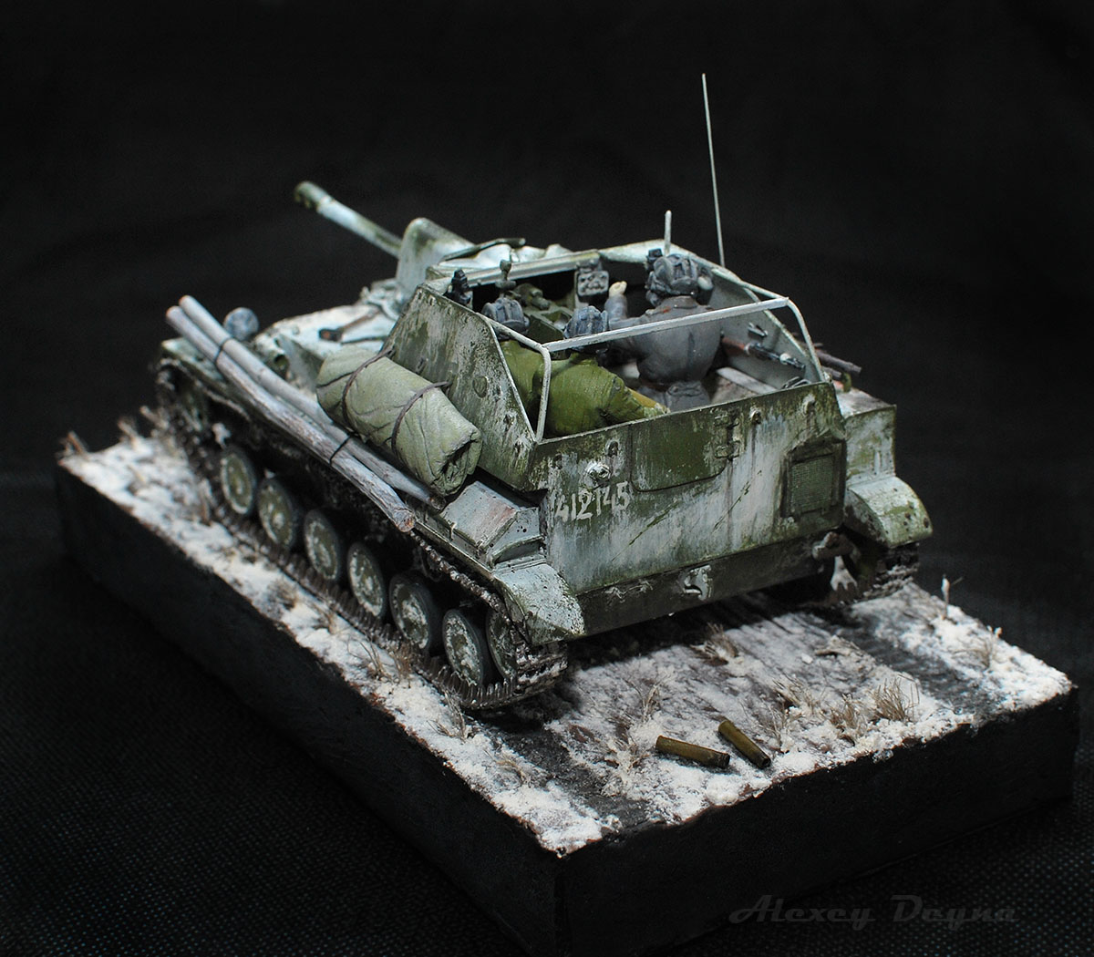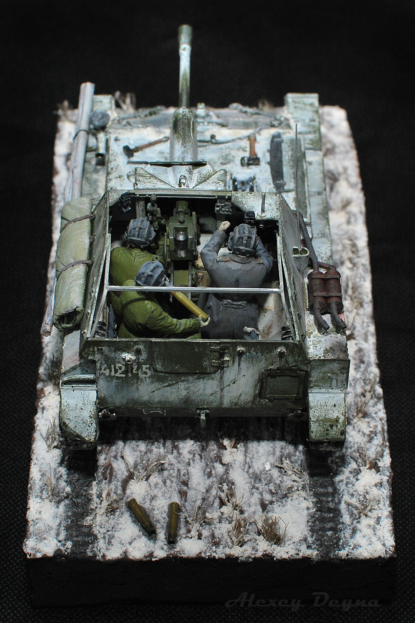 Привет, коллеги-форумчане. Давно мечтал сделать эту легендарную машинку. Приобрел набор от МиниАрта. О нем было много неоднозначных отзывов, но в целом набор мне понравился. Строил машину снова по фото. Что в кадр не попало, делал по другим фронтовым снимкам. Фигуры с набора, немного прошли конверсию. Самоделы - трос, фара, скатка, сетки, задняя стенка бронерубки вместе с ватным утеплителем. Для имитации зимнего камо юзал технику с лаком для волос. Краски от Ганзы и Валехо. Снег - сода + фиксатор для пигментов + белая краска Валехо. Трава - сантехлен. Вроде всё. Буду рад вопросам. http://cdn-frm-eu.wargaming.net/wot/ru/uploads/monthly_02_2015/post-11427538-0-73490300-1424774122_thumb.jpg Вот собссно моя муза - СУ-76М с бортовым номером 412145. http://cdn-frm-eu.wargaming.net/wot/ru/uploads/monthly_02_2015/post-11427538-0-53114900-1424722229_thumb.jpeg http://cdn-frm-eu.wargaming.net/wot/ru/uploads/monthly_02_2015/post-11427538-0-86076500-1424722234_thumb.jpg А вот и сам результат трудов: http://cdn-frm-eu.wargaming.net/wot/ru/uploads/monthly_02_2015/post-11427538-0-87060900-1424774207_thumb.jpg http://cdn-frm-eu.wargaming.net/wot/ru/uploads/monthly_02_2015/post-11427538-0-18558500-1424774201_thumb.jpg http://cdn-frm-eu.wargaming.net/wot/ru/uploads/monthly_02_2015/post-11427538-0-85004600-1424774201_thumb.jpg http://cdn-frm-eu.wargaming.net/wot/ru/uploads/monthly_02_2015/post-11427538-0-49148700-1424774202_thumb.jpg http://cdn-frm-eu.wargaming.net/wot/ru/uploads/monthly_02_2015/post-11427538-0-24171400-1424774203_thumb.jpg http://cdn-frm-eu.wargaming.net/wot/ru/uploads/monthly_02_2015/post-11427538-0-01315400-1424774204_thumb.jpg http://cdn-frm-eu.wargaming.net/wot/ru/uploads/monthly_02_2015/post-11427538-0-63858900-1424774204_thumb.jpg http://cdn-frm-eu.wargaming.net/wot/ru/uploads/monthly_02_2015/post-11427538-0-35854300-1424774205_thumb.jpg http://cdn-frm-eu.wargaming.net/wot/ru/uploads/monthly_02_2015/post-11427538-0-22107500-1424774206_thumb.jpg http://cdn-frm-eu.wargaming.net/wot/ru/uploads/monthly_02_2015/post-11427538-0-82992500-1424774206_thumb.jpg Немного по процессу стройки. Сделал имитацию сварных швов тянутым литником. Заменил сетку. Кантик из пивной жести. http://cdn-frm-eu.wargaming.net/wot/ru/uploads/monthly_02_2015/post-11427538-0-70596700-1424778305_thumb.jpg То, что предложил производитель как вытный утеплитель на задней стенке, оказалось далеко от реальности. http://cdn-frm-eu.wargaming.net/wot/ru/uploads/monthly_02_2015/post-11427538-0-61490200-1424777426_thumb.jpg Пришлось лепить из двухкомпонентки на заново сделанную заднюю стенку из листового пластика http://cdn-frm-eu.wargaming.net/wot/ru/uploads/monthly_02_2015/post-11427538-0-98618500-1424777648_thumb.jpg http://cdn-frm-eu.wargaming.net/wot/ru/uploads/monthly_02_2015/post-11427538-0-22622100-1424777653_thumb.jpg http://cdn-frm-eu.wargaming.net/wot/ru/uploads/monthly_02_2015/post-11427538-0-57033000-1424777655_thumb.jpg Скатка из салфетки, пропитанной жидким ПВА. Низ корпуса немного обгадил грязью. http://cdn-frm-eu.wargaming.net/wot/ru/uploads/monthly_02_2015/post-11427538-0-47591200-1424777911_thumb.jpg По каткам прошелся снегом http://cdn-frm-eu.wargaming.net/wot/ru/uploads/monthly_02_2015/post-11427538-0-99035400-1424778049_thumb.jpg