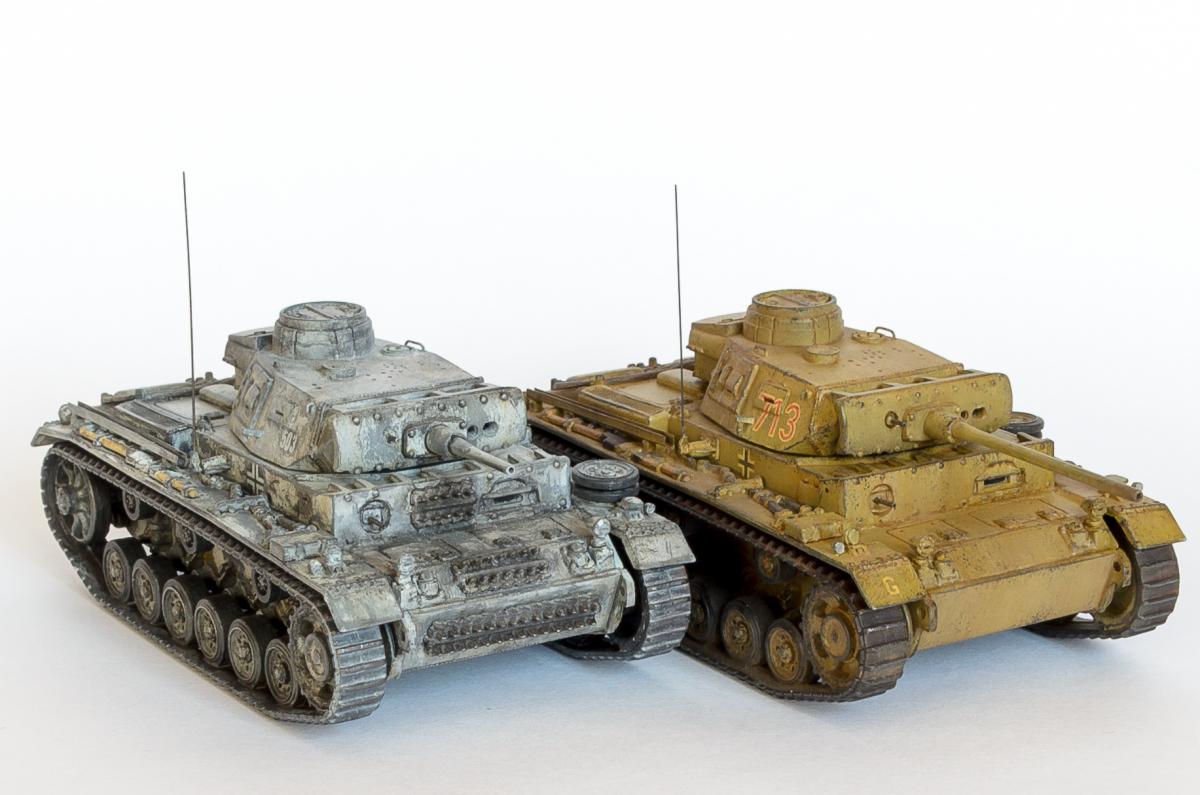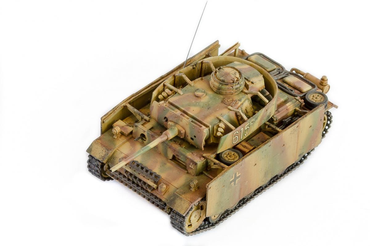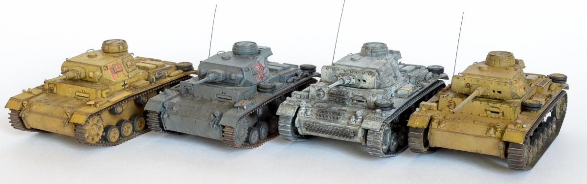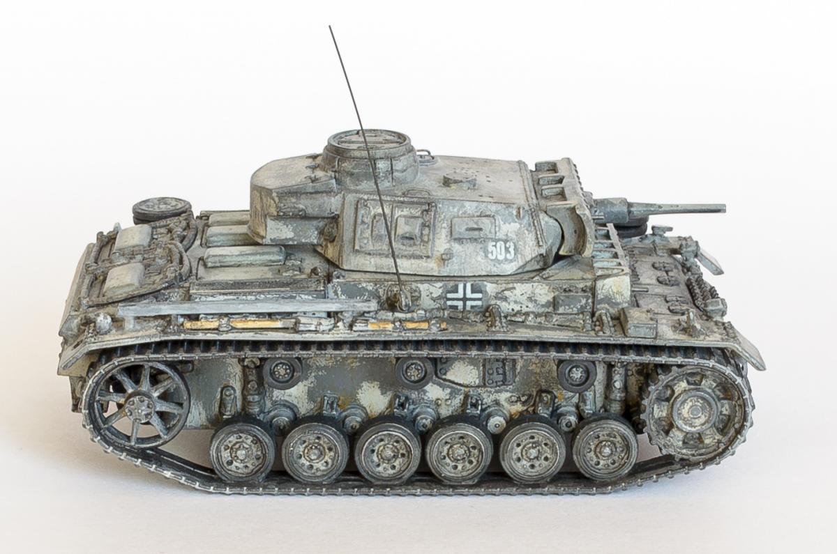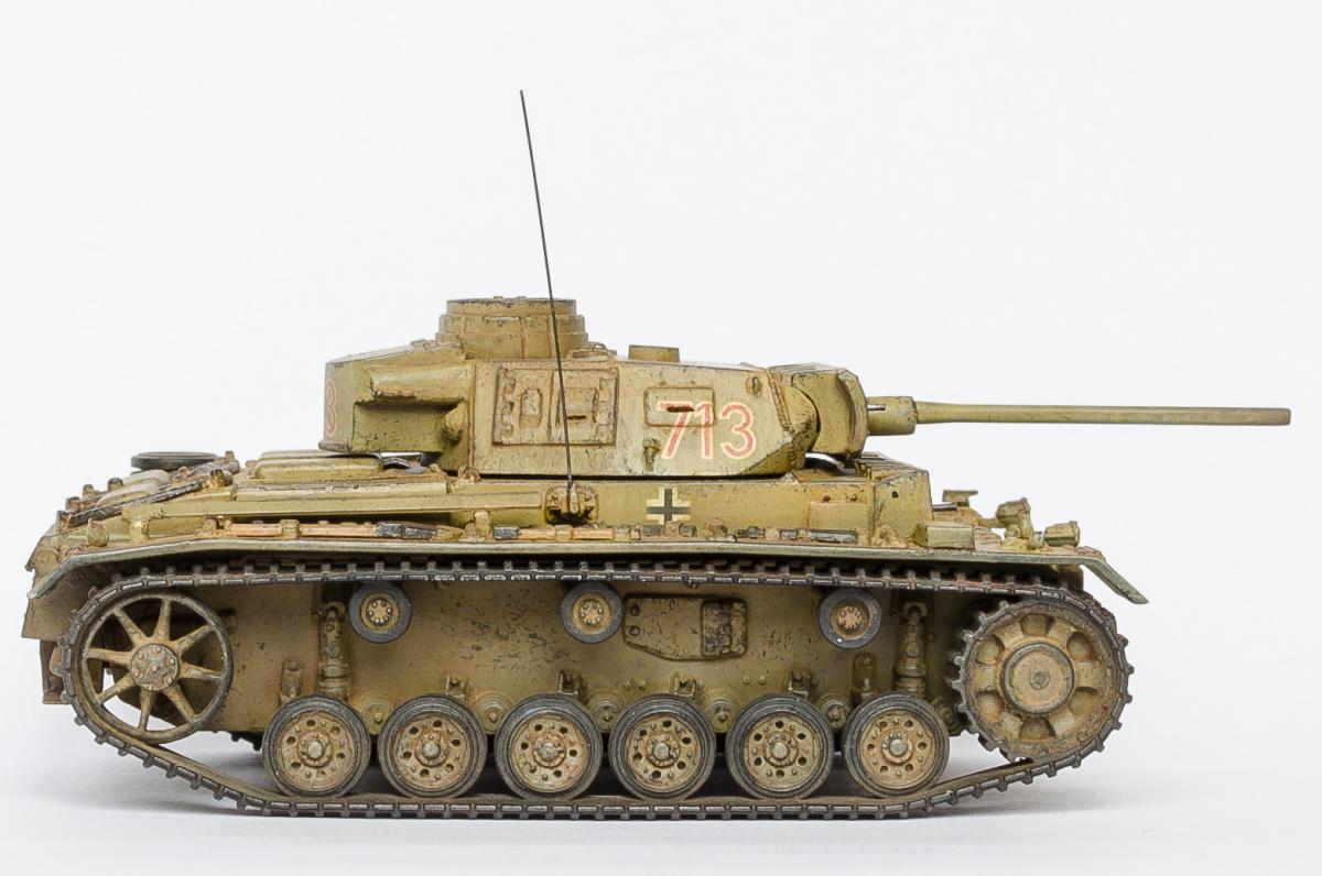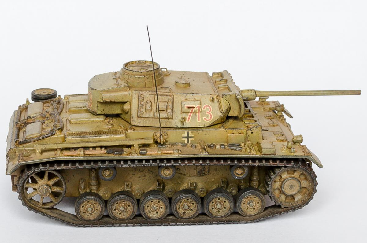 Закончив две тройки от S-Model проникся этим танком. http://cdn-frm-eu.wargaming.net/wot/ru/uploads/monthly_10_2016/post-6836145-0-78668400-1476786036_thumb.jpg Посещая в очередной раз магазин взгляд приковала коробка с двумя версиями Pz. Kpfw. III Ausf. J. Вариант с 50-мм пушкой длиной ствола 42 калибра и длинноствольной 50-мм пушкой длиной ствола 60 калибров. Глядя на уровень детализации модели понял, что легких путей я не ищу Еще раз подумал... Взять - не взять? Ну взял и взял http://cdn-frm-eu.wargaming.net/wot/ru/uploads/monthly_05_2017/post-6836145-0-08965600-1495527765_thumb.jpg Первое что пошло под нож - это пистолетные порты на корме башни. Следом отправились наплывы эмитирующие поручни и фиксаторы люков в открытом положении. Попробовал исправить замыленную геометрию боковых люков и смотровых щелей. На башне есть утяжина, поправил. Между забашенным ящиком и кормовой плитой башни огромная щель. Из доработок выполнены: Изготовление поручней; Замена пулеметов на изготовленные из инсулиновой иглы; Крюки для монтажа башни и фиксаторы люков в открытом положении; Изготовление уголка, защищающего основание башни; Доработка буксировочных петель; Рассверлено все что можно и нужно рассверлить http://cdn-frm-eu.wargaming.net/4.4/style_emoticons/wot/Smile_Default.gif Доработан смотровой прибор мехвода; Изготовлены световые приборы, клаксон, проводка, антенна с креплением и короб для нее и другие мелочи; Была мысль о гребнях на гусянке, но рассудок победил - будет как есть К сожалению производитель не вложил в комплект запасные катки, пришлось взять половинки от S-Model и нижние части выточить из пластика на шуруповерте Вот что в итоге получилось: http://cdn-frm-eu.wargaming.net/wot/ru/uploads/monthly_05_2017/post-6836145-0-03068000-1495738283_thumb.jpg http://cdn-frm-eu.wargaming.net/wot/ru/uploads/monthly_05_2017/post-6836145-0-62643800-1495738285_thumb.jpg http://cdn-frm-eu.wargaming.net/wot/ru/uploads/monthly_05_2017/post-6836145-0-13061000-1495738287_thumb.jpg http://cdn-frm-eu.wargaming.net/wot/ru/uploads/monthly_05_2017/post-6836145-0-50467100-1495738288_thumb.jpg http://cdn-frm-eu.wargaming.net/wot/ru/uploads/monthly_05_2017/post-6836145-0-76613800-1495738289_thumb.jpg http://cdn-frm-eu.wargaming.net/wot/ru/uploads/monthly_05_2017/post-6836145-0-04852000-1495738291_thumb.jpg http://cdn-frm-eu.wargaming.net/wot/ru/uploads/monthly_05_2017/post-6836145-0-36321800-1495738292_thumb.jpg http://cdn-frm-eu.wargaming.net/wot/ru/uploads/monthly_05_2017/post-6836145-0-70651900-1495738293_thumb.jpg http://cdn-frm-eu.wargaming.net/wot/ru/uploads/monthly_05_2017/post-6836145-0-02655300-1495738295_thumb.jpg http://cdn-frm-eu.wargaming.net/wot/ru/uploads/monthly_05_2017/post-6836145-0-29609600-1495738296_thumb.jpg http://cdn-frm-eu.wargaming.net/wot/ru/uploads/monthly_05_2017/post-6836145-0-90181100-1495738297_thumb.jpg http://cdn-frm-eu.wargaming.net/wot/ru/uploads/monthly_05_2017/post-6836145-0-22005200-1495738284_thumb.jpg Если есть интерес, тема по постройке - http://forum.worldoftanks.ru/index.php?/topic/1818007-pz-kpfw-iii-ausf-j-italeri-172/#topmost