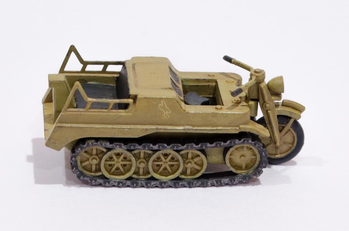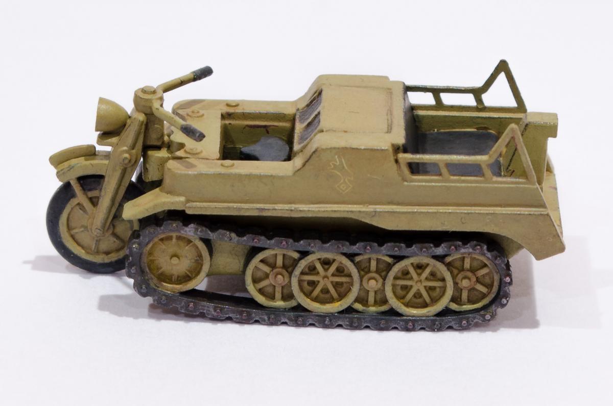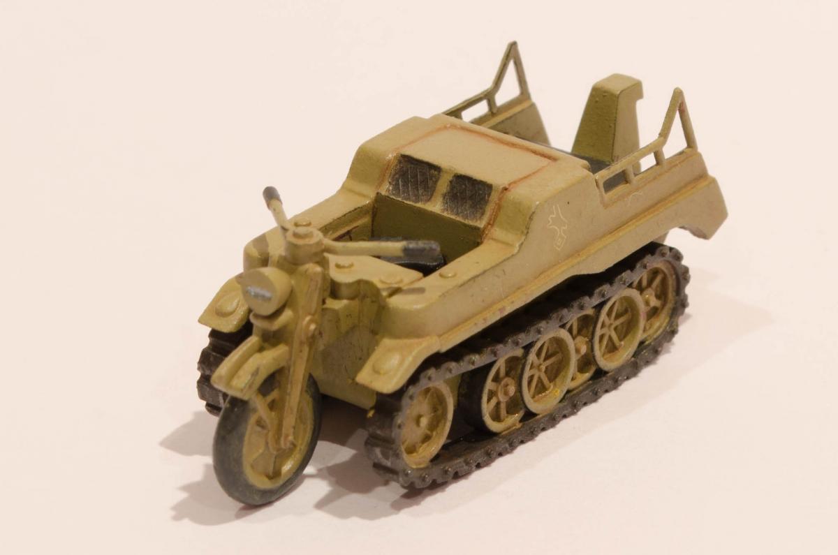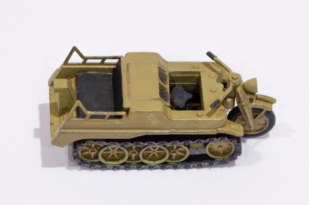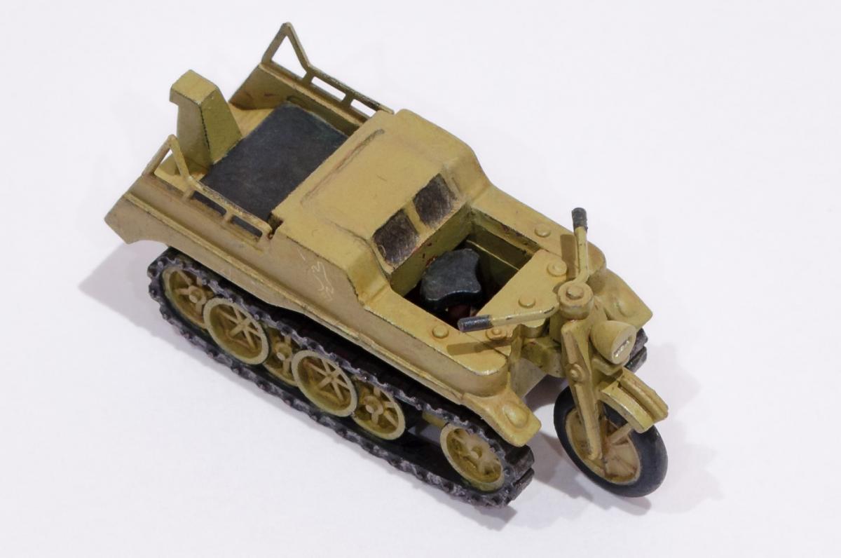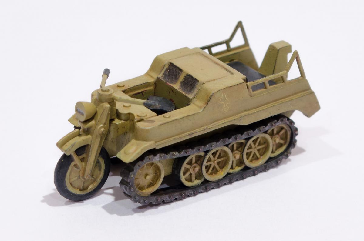 Добрый день! Представляю Вашему вниманию модель Моделиста - Кеттенкрафтрад. Набор Моделиста был приобретен ради разных мелочей входящих в комплект, как то бочки, ящики, канистры. http://cdn-frm-eu.wargaming.net/wot/ru/uploads/monthly_01_2016/post-6836145-0-29615500-1454050377_thumb.jpg Модели входящие в вышеназванный набор было решено использовать в качестве "кошек" для окраски в новую для меня цветовую схему. Так сказать руку набить. Доработок никаких изначально не планировал, да и применимо к этим моделям в принципе не целесообразно. В качестве грунта использовал эмаль Звезды под кисть. Окраска в базу акрил от Звезды, кисть. Смывка, на ее же основе. Буду рад Вашим советам и конструктивной критике! Замечания оставляйте здесь или в теме по окраске модели http://forum.worldoftanks.ru/index.php?/topic/1669520-кеттенкрафтрад-кюбельваген-172-моделист-или-тре/page__pid__41943280#entry41943280 Заранее благодарен! Занявшись сборкой не мог удержаться от изучения материалов по разработке SdKfz 2. Интересная разработка сумрачного немецкого гения. Историческая стравка: SdKfz 2, известный также, как Kettenkrad HK 101 — полугусеничный мотоцикл высокой проходимости, разработанный и массово выпускавшийся в Германии в годы Второй мировой войны. Изначально разрабатывался для использования в парашютно-десантных и горно-егерских дивизиях люфтваффе и вермахта, однако благодаря высоким динамическим характеристикам снискал большую популярность в немецкой армии и широко применялся всеми её подразделениями. Всего с 1940 по 1945 годы фирмами NSU и Stoewer было выпущено 8871 мотоциклов. Уже после окончания войны из оставшегося задела деталей в период с 1945 по 1949 годы было собрано ещё около 550 машин, применявшихся в народном хозяйстве до 1950-х годов. http://cdn-frm-eu.wargaming.net/wot/ru/uploads/monthly_01_2016/post-6836145-0-72683100-1454051283_thumb.jpg http://cdn-frm-eu.wargaming.net/wot/ru/uploads/monthly_01_2016/post-6836145-0-09499000-1454051289_thumb.jpg http://cdn-frm-eu.wargaming.net/wot/ru/uploads/monthly_01_2016/post-6836145-0-15159700-1454051292_thumb.jpg http://cdn-frm-eu.wargaming.net/wot/ru/uploads/monthly_01_2016/post-6836145-0-52443300-1454051297_thumb.jpg http://cdn-frm-eu.wargaming.net/wot/ru/uploads/monthly_01_2016/post-6836145-0-66547000-1454051306_thumb.jpg http://cdn-frm-eu.wargaming.net/wot/ru/uploads/monthly_01_2016/post-6836145-0-22838500-1454051315_thumb.jpg http://cdn-frm-eu.wargaming.net/wot/ru/uploads/monthly_01_2016/post-6836145-0-20047500-1454051323_thumb.jpg http://cdn-frm-eu.wargaming.net/wot/ru/uploads/monthly_01_2016/post-6836145-0-23726500-1454051329_thumb.jpg http://cdn-frm-eu.wargaming.net/wot/ru/uploads/monthly_01_2016/post-6836145-0-02434600-1454051294_thumb.jpg http://cdn-frm-eu.wargaming.net/wot/ru/uploads/monthly_01_2016/post-6836145-0-74928000-1454051302_thumb.jpg http://cdn-frm-eu.wargaming.net/wot/ru/uploads/monthly_01_2016/post-6836145-0-45413100-1454051311_thumb.jpg http://cdn-frm-eu.wargaming.net/wot/ru/uploads/monthly_01_2016/post-6836145-0-96682900-1454051318_thumb.jpg http://cdn-frm-eu.wargaming.net/wot/ru/uploads/monthly_01_2016/post-6836145-0-01428700-1454051326_thumb.jpg http://cdn-frm-eu.wargaming.net/wot/ru/uploads/monthly_01_2016/post-6836145-0-07537400-1454051331_thumb.jpg