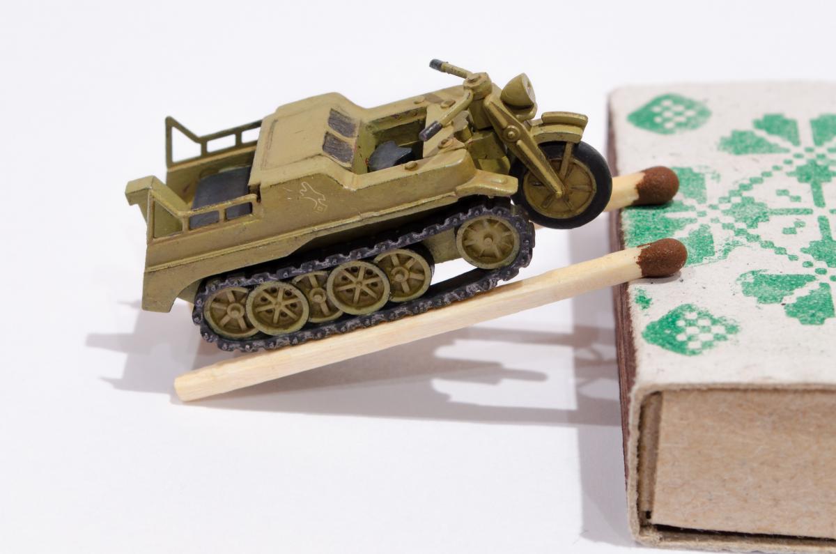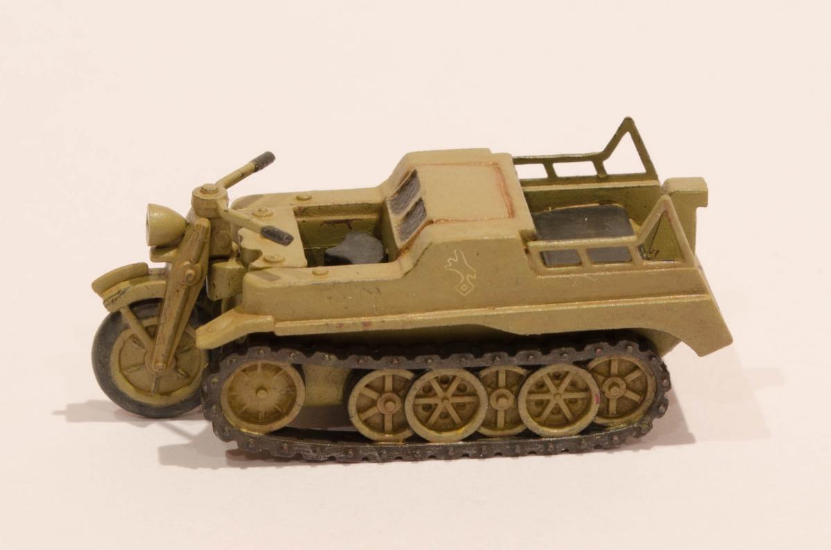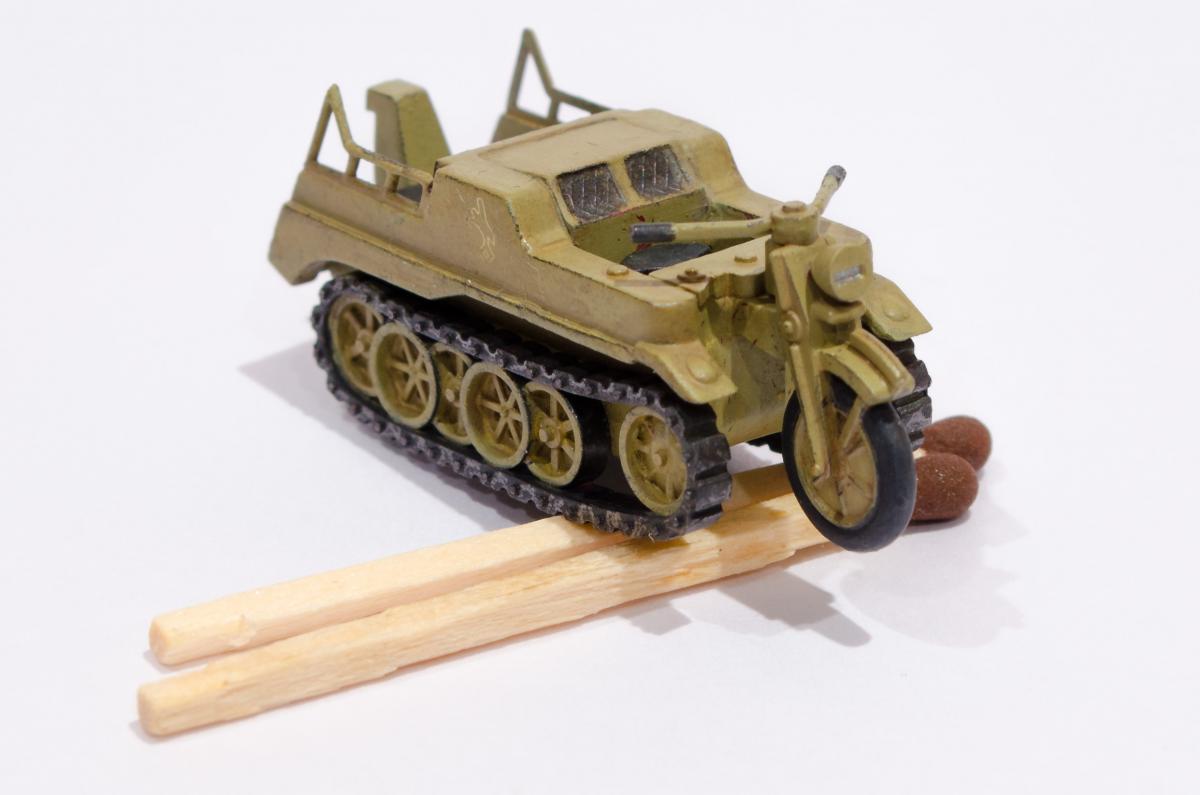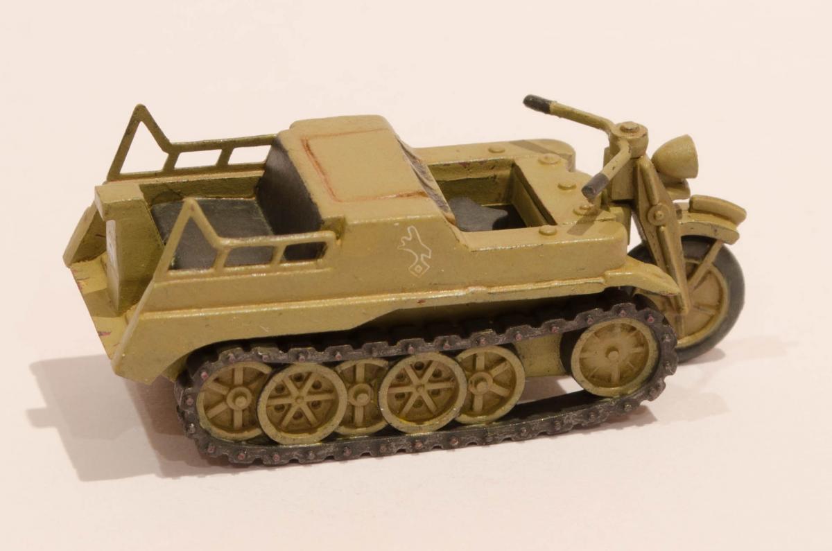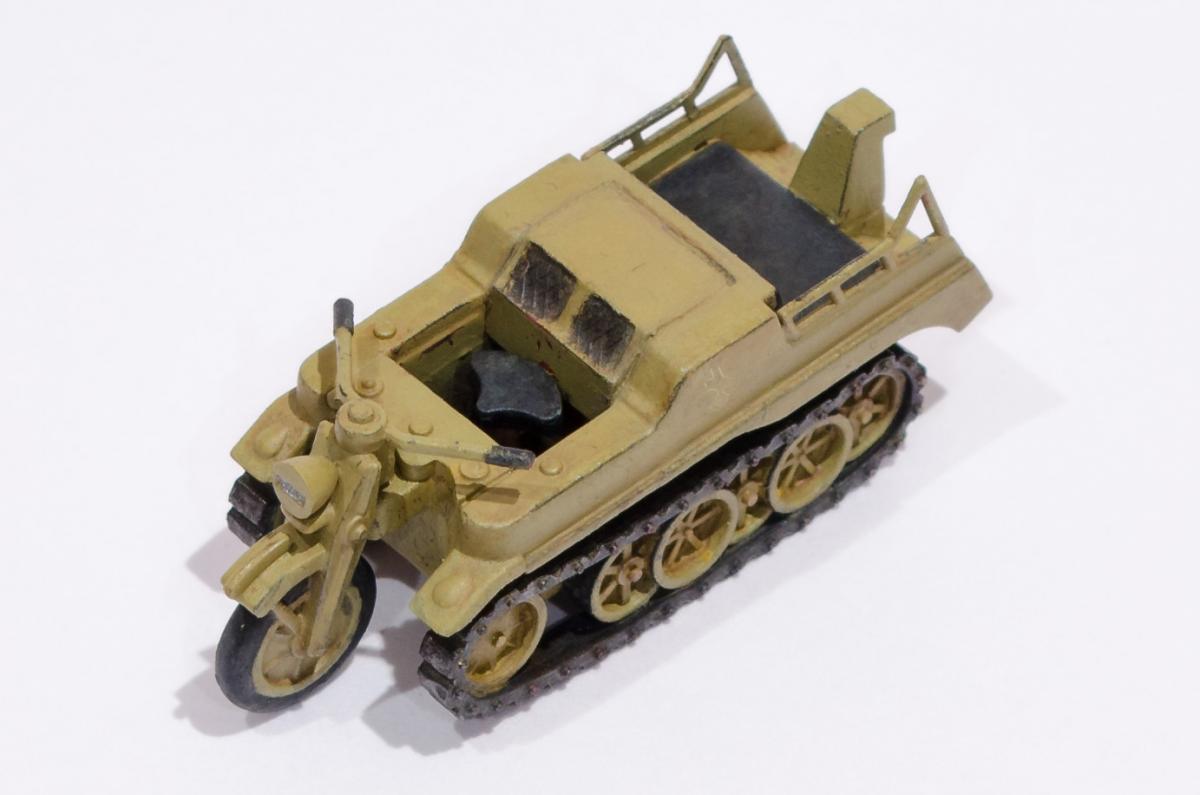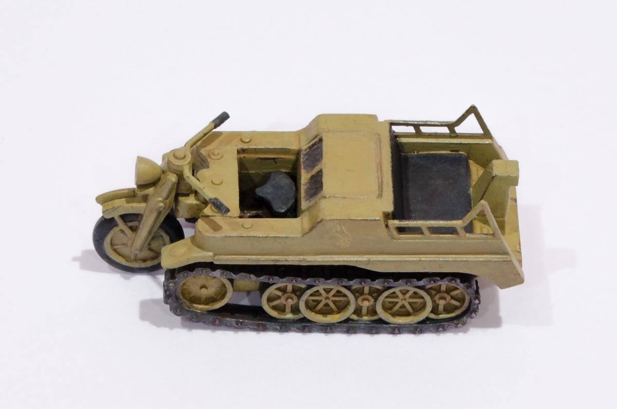 Добрый день! Представляю Вашему вниманию модель Моделиста - Кеттенкрафтрад. Набор Моделиста был приобретен ради разных мелочей входящих в комплект, как то бочки, ящики, канистры. http://cdn-frm-eu.wargaming.net/wot/ru/uploads/monthly_01_2016/post-6836145-0-29615500-1454050377_thumb.jpg Модели входящие в вышеназванный набор было решено использовать в качестве "кошек" для окраски в новую для меня цветовую схему. Так сказать руку набить. Доработок никаких изначально не планировал, да и применимо к этим моделям в принципе не целесообразно. В качестве грунта использовал эмаль Звезды под кисть. Окраска в базу акрил от Звезды, кисть. Смывка, на ее же основе. Буду рад Вашим советам и конструктивной критике! Замечания оставляйте здесь или в теме по окраске модели http://forum.worldoftanks.ru/index.php?/topic/1669520-кеттенкрафтрад-кюбельваген-172-моделист-или-тре/page__pid__41943280#entry41943280 Заранее благодарен! Занявшись сборкой не мог удержаться от изучения материалов по разработке SdKfz 2. Интересная разработка сумрачного немецкого гения. Историческая стравка: SdKfz 2, известный также, как Kettenkrad HK 101 — полугусеничный мотоцикл высокой проходимости, разработанный и массово выпускавшийся в Германии в годы Второй мировой войны. Изначально разрабатывался для использования в парашютно-десантных и горно-егерских дивизиях люфтваффе и вермахта, однако благодаря высоким динамическим характеристикам снискал большую популярность в немецкой армии и широко применялся всеми её подразделениями. Всего с 1940 по 1945 годы фирмами NSU и Stoewer было выпущено 8871 мотоциклов. Уже после окончания войны из оставшегося задела деталей в период с 1945 по 1949 годы было собрано ещё около 550 машин, применявшихся в народном хозяйстве до 1950-х годов. http://cdn-frm-eu.wargaming.net/wot/ru/uploads/monthly_01_2016/post-6836145-0-72683100-1454051283_thumb.jpg http://cdn-frm-eu.wargaming.net/wot/ru/uploads/monthly_01_2016/post-6836145-0-09499000-1454051289_thumb.jpg http://cdn-frm-eu.wargaming.net/wot/ru/uploads/monthly_01_2016/post-6836145-0-15159700-1454051292_thumb.jpg http://cdn-frm-eu.wargaming.net/wot/ru/uploads/monthly_01_2016/post-6836145-0-52443300-1454051297_thumb.jpg http://cdn-frm-eu.wargaming.net/wot/ru/uploads/monthly_01_2016/post-6836145-0-66547000-1454051306_thumb.jpg http://cdn-frm-eu.wargaming.net/wot/ru/uploads/monthly_01_2016/post-6836145-0-22838500-1454051315_thumb.jpg http://cdn-frm-eu.wargaming.net/wot/ru/uploads/monthly_01_2016/post-6836145-0-20047500-1454051323_thumb.jpg http://cdn-frm-eu.wargaming.net/wot/ru/uploads/monthly_01_2016/post-6836145-0-23726500-1454051329_thumb.jpg http://cdn-frm-eu.wargaming.net/wot/ru/uploads/monthly_01_2016/post-6836145-0-02434600-1454051294_thumb.jpg http://cdn-frm-eu.wargaming.net/wot/ru/uploads/monthly_01_2016/post-6836145-0-74928000-1454051302_thumb.jpg http://cdn-frm-eu.wargaming.net/wot/ru/uploads/monthly_01_2016/post-6836145-0-45413100-1454051311_thumb.jpg http://cdn-frm-eu.wargaming.net/wot/ru/uploads/monthly_01_2016/post-6836145-0-96682900-1454051318_thumb.jpg http://cdn-frm-eu.wargaming.net/wot/ru/uploads/monthly_01_2016/post-6836145-0-01428700-1454051326_thumb.jpg http://cdn-frm-eu.wargaming.net/wot/ru/uploads/monthly_01_2016/post-6836145-0-07537400-1454051331_thumb.jpg