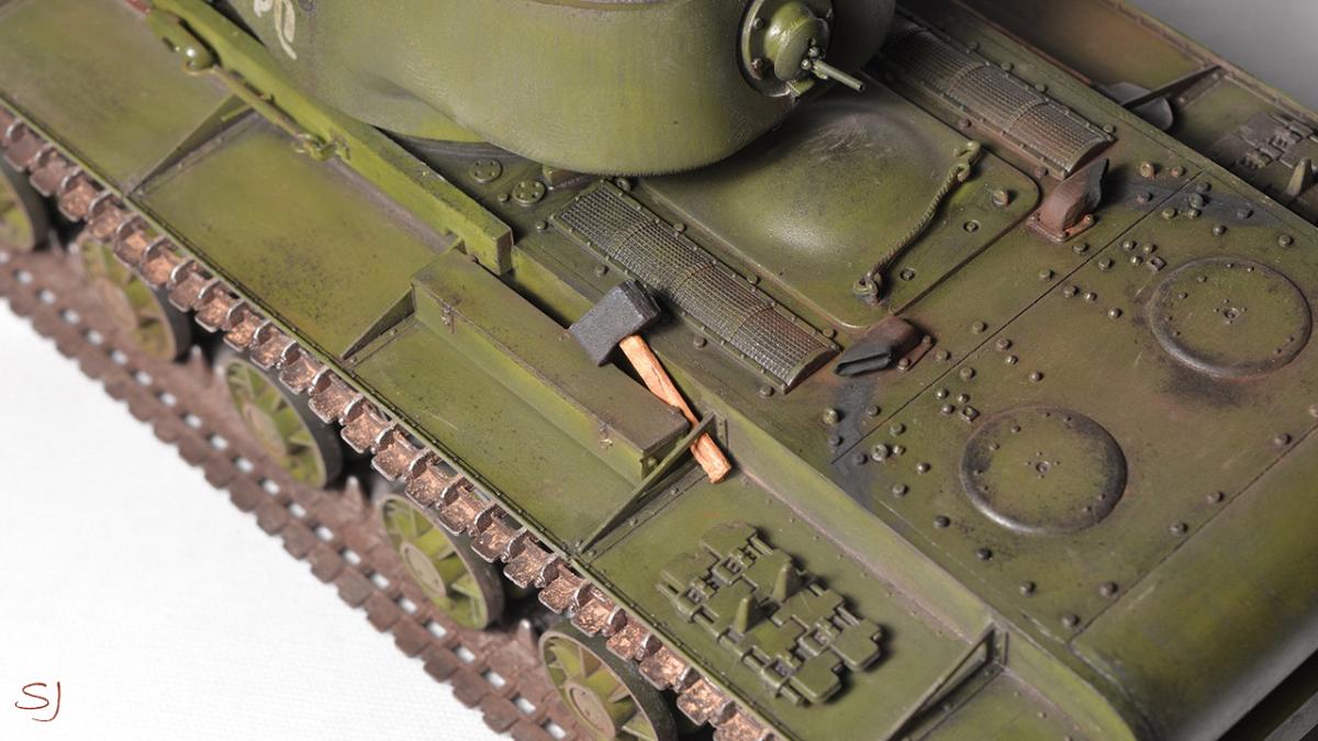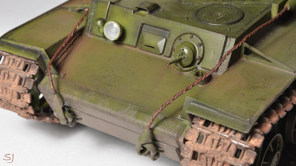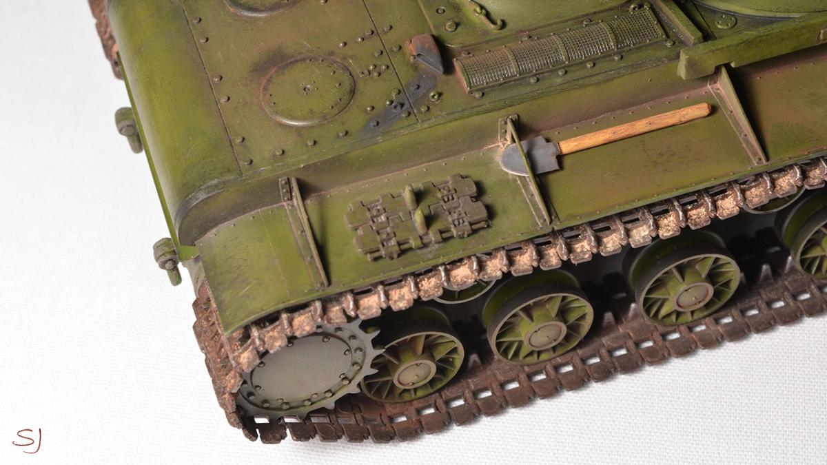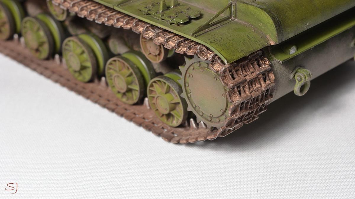 Приветствую всех любителей стендового моделизма. Решил поделится с вами еще одной своей моделью танка, второй по счету. На этот раз это легендарный советский тяж КВ-1, один из лучших танков 5 уровня в игре. Модель 35 масштаба от фирмы Моделист (репак Трампетера). Начальные этапы покраски: http://cdn-frm-eu.wargaming.net/wot/ru/uploads/monthly_06_2015/post-23366632-0-80307600-1434006586_thumb.jpghttp://cdn-frm-eu.wargaming.net/wot/ru/uploads/monthly_06_2015/post-23366632-0-13116800-1434006593_thumb.jpghttp://cdn-frm-eu.wargaming.net/wot/ru/uploads/monthly_06_2015/post-23366632-0-47854800-1434006598_thumb.jpghttp://cdn-frm-eu.wargaming.net/wot/ru/uploads/monthly_06_2015/post-23366632-0-28874100-1434006603_thumb.jpg Финальные фотографии: http://cdn-frm-eu.wargaming.net/wot/ru/uploads/monthly_06_2015/post-23366632-0-25910600-1434006609_thumb.jpghttp://cdn-frm-eu.wargaming.net/wot/ru/uploads/monthly_06_2015/post-23366632-0-73171000-1434006614_thumb.jpghttp://cdn-frm-eu.wargaming.net/wot/ru/uploads/monthly_06_2015/post-23366632-0-75657200-1434006619_thumb.jpghttp://cdn-frm-eu.wargaming.net/wot/ru/uploads/monthly_06_2015/post-23366632-0-19570900-1434006626_thumb.jpghttp://cdn-frm-eu.wargaming.net/wot/ru/uploads/monthly_06_2015/post-23366632-0-99287600-1434006630_thumb.jpghttp://cdn-frm-eu.wargaming.net/wot/ru/uploads/monthly_06_2015/post-23366632-0-08226200-1434006640_thumb.jpghttp://cdn-frm-eu.wargaming.net/wot/ru/uploads/monthly_06_2015/post-23366632-0-90744500-1434006645_thumb.jpghttp://cdn-frm-eu.wargaming.net/wot/ru/uploads/monthly_06_2015/post-23366632-0-89260100-1434006651_thumb.jpghttp://cdn-frm-eu.wargaming.net/wot/ru/uploads/monthly_06_2015/post-23366632-0-46181700-1434006657_thumb.jpghttp://cdn-frm-eu.wargaming.net/wot/ru/uploads/monthly_06_2015/post-23366632-0-14902100-1434006662_thumb.jpghttp://cdn-frm-eu.wargaming.net/wot/ru/uploads/monthly_06_2015/post-23366632-0-47350500-1434006667_thumb.jpg Все собрано из коробки. Из переделок: - замены пулеметов на медицинские иглы - изготовлен шанцевый инструмент (топор, кувалда, лопата), делал в первый раз, поэтому есть проблемы с масштабностью http://cdn-frm-eu.wargaming.net/4.3/style_emoticons/wot/Smile_Default.gif - изготовлен танковый трос В качестве прототипа был взят именной танк "Щорс". http://cdn-frm-eu.wargaming.net/wot/ru/uploads/monthly_06_2015/post-23366632-0-16928500-1434007571_thumb.jpg Модель красилась аэрографом, краски фирмы Тамия. Масло ArtCreation, пигменты - перетертые пастельные мелки. Из допущенных косяков, которые были обнаружены уже спустя некоторое время после сборки:- не масштабный черенок у лопаты и отсутствие крепежей у всего шанцевого инструмента- слабо загрязнил катки, а пространство внутри катков вообще чистое http://cdn-frm-eu.wargaming.net/4.3/style_emoticons/wot/Smile_sad.gif - немного кривовато приклеил "стекло" фары- забыл покрасить габаритный огонь (конвойник) P.S. если что-то найдете еще, пишите не стесняйтесь, конструктивная критика только приветствуется. P.S.S. Весь процесс сборки и покраски снят на видео, кому интересно можно посмотреть внизу поста. Надеюсь мой пример сподвигнет тех кто еще сомневается или еще не пробовал собирать и красить сборные модели.