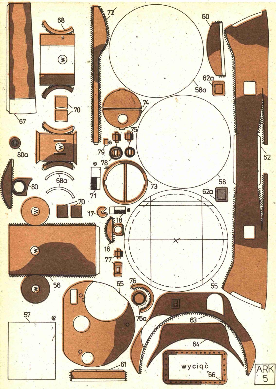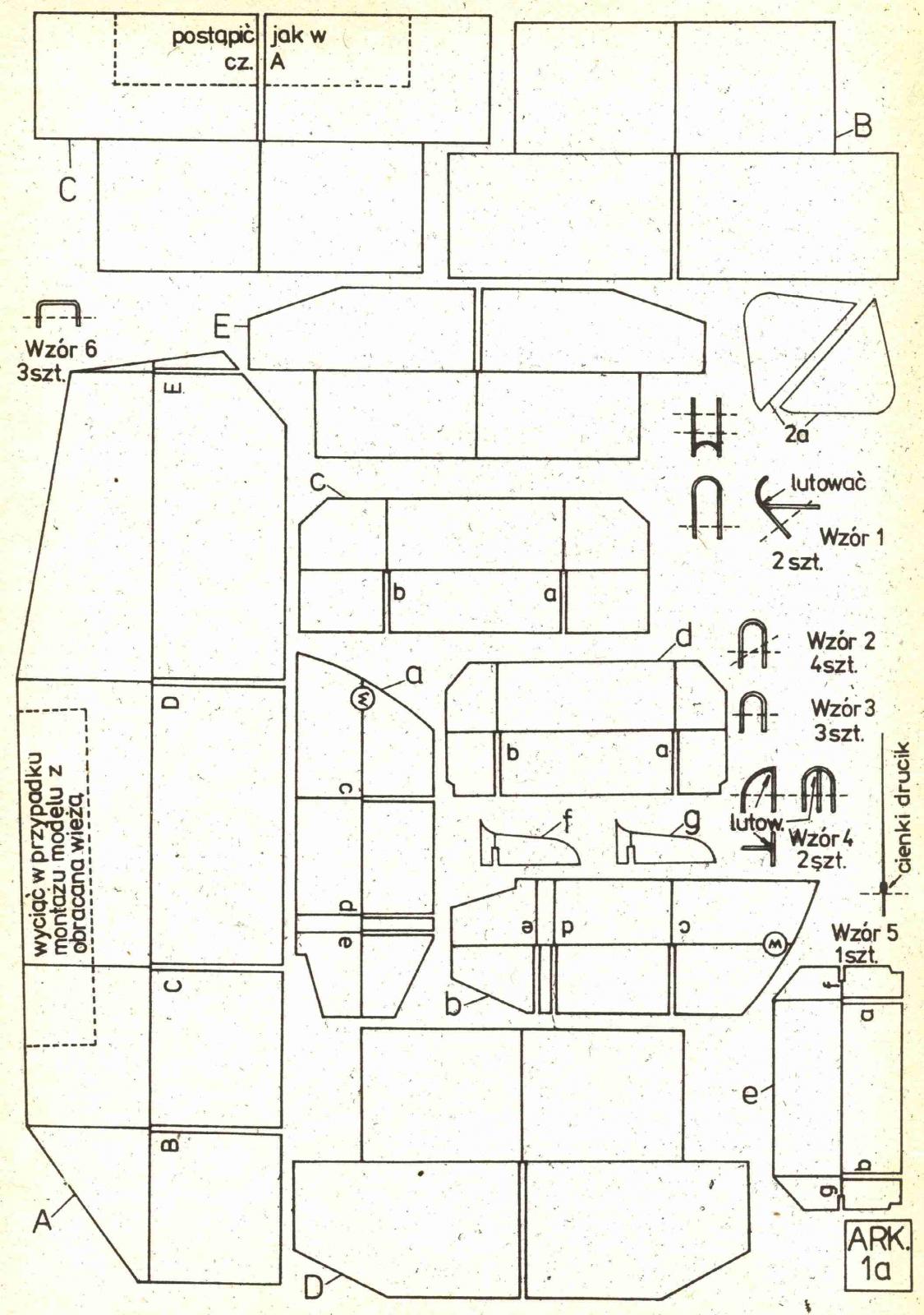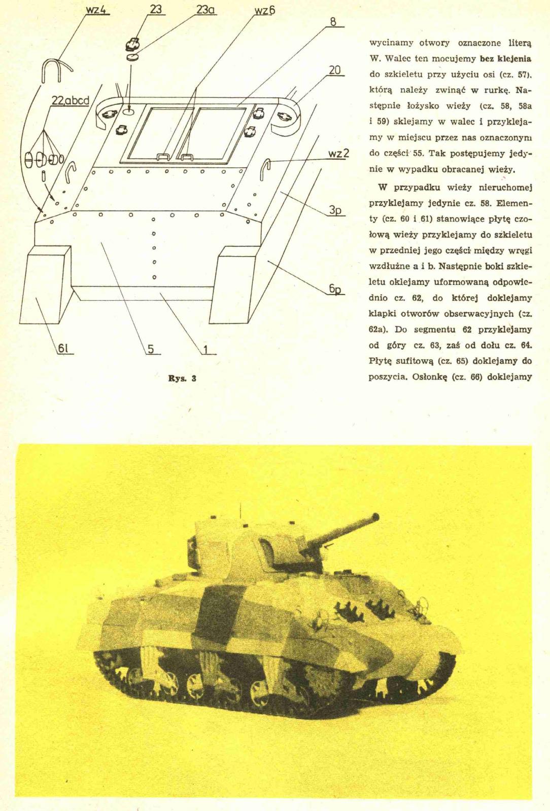Модель танка М4А3 "Sherman". Сделан из ватмана и картона. Практически точная копия в масштабе 1:25. Башня вращается на 360 градусов. УВН в пределах нормы. Покрашен в камуфляж, который использовался в боях в Африке. Если кому-то интересна история данного танка, то почитайте "Средний танк Шерман вместе и против Т-34". Из недостатков данной модели: - довльно посредственно выполненная ходовая; - отсутствие опознавательных знаков (задолбался я пытаться нарисовать звёзды американские ровными); - отсутствие антенны на башне (руки не дошли); - отсутствие имитации сварных швов и части заклёпок. http://cdn-frm-eu.wargaming.net/wot/ru/uploads/monthly_05_2014/post-13009837-0-28432000-1399109153_thumb.jpghttp://cdn-frm-eu.wargaming.net/wot/ru/uploads/monthly_05_2014/post-13009837-0-13720100-1399109173_thumb.jpghttp://cdn-frm-eu.wargaming.net/wot/ru/uploads/monthly_05_2014/post-13009837-0-06697700-1399109193_thumb.jpghttp://cdn-frm-eu.wargaming.net/wot/ru/uploads/monthly_05_2014/post-13009837-0-10042100-1399109214_thumb.jpghttp://cdn-frm-eu.wargaming.net/wot/ru/uploads/monthly_05_2014/post-13009837-0-45720300-1399109236_thumb.jpghttp://cdn-frm-eu.wargaming.net/wot/ru/uploads/monthly_05_2014/post-13009837-0-33394000-1399109256_thumb.jpghttp://cdn-frm-eu.wargaming.net/wot/ru/uploads/monthly_05_2014/post-13009837-0-62815200-1399109276_thumb.jpg Развёртки были 1977 года, качество не айс. Дорабатывал как мог. P.S. Спасибо ВГ за поощрение людей, которые занимаются стендовым моделизмом.