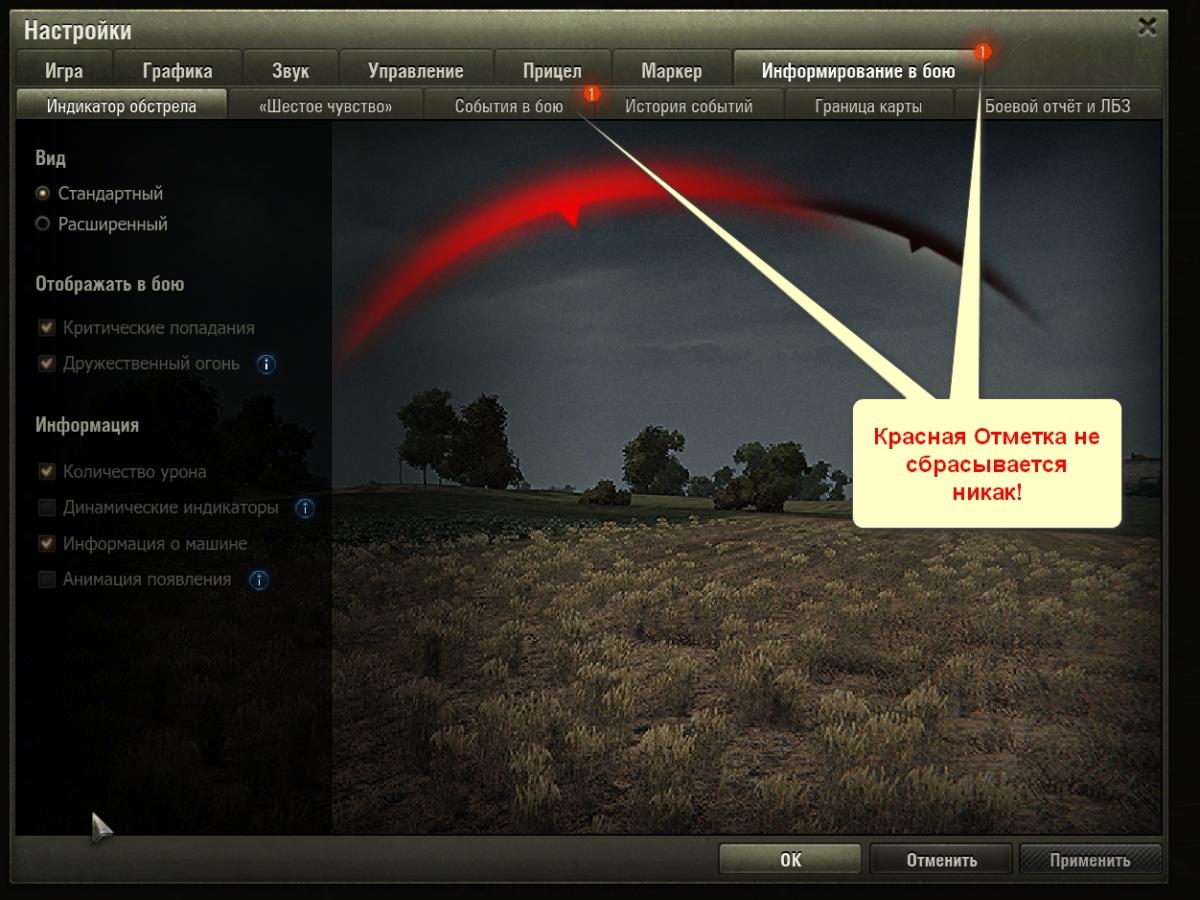 Что не так с настройками информирования в бою. Уже все включал и отключал. Раздражает эта красная единичка в настройках.