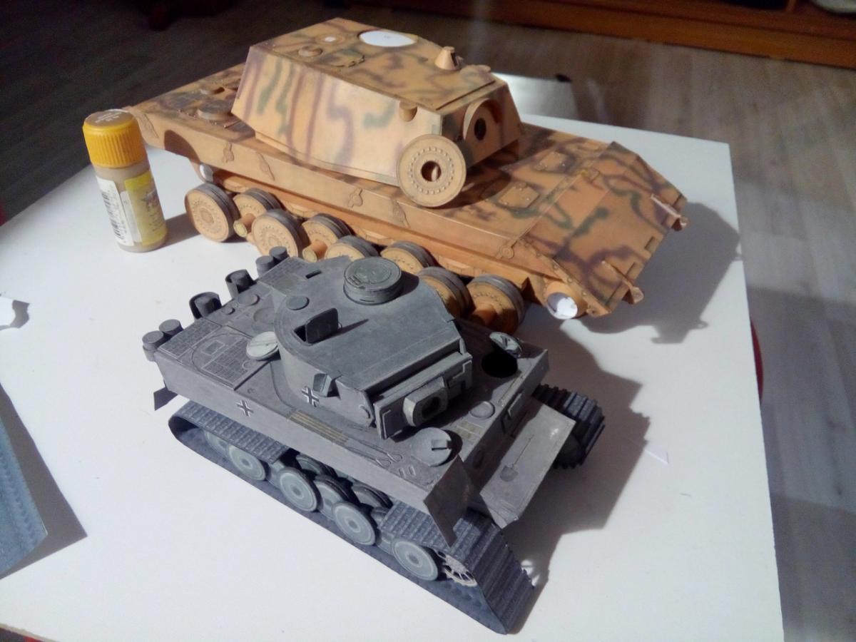 Доброго всем дня Позвольте представить вашему вниманию модель немецкого тяжелого танка времен Второй мировой войны Pz.Kpfw VI ausf H1 "Тигр" в масштабе 1/50. Стройка затянулась более чем на год из-за того, что в процессе создания ходовой мой мозг "закипел" от ее компоновки и отказался расставлять катки на гусенице. К тому же, после долгих примерок и расстановок катков выяснилось что "ванночки" ходовой представлены наоборот. Тут меня муза и покинула до нового 2018г. Собранный каркас и башня были убраны в коробочку в ожидании своей очереди... И вот, в этом году решил все же собрать начатое, к тому же застопорился на гуслях у Е-100... И все же, я его победил: http://cdn-frm-eu.wargaming.net/wot/ru/uploads/monthly_02_2018/post-34977863-0-64760700-1517688782_thumb.jpg http://cdn-frm-eu.wargaming.net/wot/ru/uploads/monthly_02_2018/post-34977863-0-71750500-1517688796_thumb.jpg http://cdn-frm-eu.wargaming.net/wot/ru/uploads/monthly_02_2018/post-34977863-0-33448400-1517688805_thumb.jpg http://cdn-frm-eu.wargaming.net/wot/ru/uploads/monthly_02_2018/post-34977863-0-77694500-1517688817_thumb.jpg Без подставки: http://cdn-frm-eu.wargaming.net/wot/ru/uploads/monthly_02_2018/post-34977863-0-32039700-1517688852_thumb.jpg http://cdn-frm-eu.wargaming.net/wot/ru/uploads/monthly_02_2018/post-34977863-0-50490300-1517688861_thumb.jpg http://cdn-frm-eu.wargaming.net/wot/ru/uploads/monthly_02_2018/post-34977863-0-33974000-1517688871_thumb.jpg http://cdn-frm-eu.wargaming.net/wot/ru/uploads/monthly_02_2018/post-34977863-0-32152500-1517688882_thumb.jpg http://cdn-frm-eu.wargaming.net/wot/ru/uploads/monthly_02_2018/post-34977863-0-74185300-1517688890_thumb.jpg http://cdn-frm-eu.wargaming.net/wot/ru/uploads/monthly_02_2018/post-34977863-0-79875200-1517688898_thumb.jpg http://cdn-frm-eu.wargaming.net/wot/ru/uploads/monthly_02_2018/post-34977863-0-33483800-1517688911_thumb.jpg http://cdn-frm-eu.wargaming.net/wot/ru/uploads/monthly_02_2018/post-34977863-0-65964200-1517688930_thumb.jpg Процесс стройки: http://cdn-frm-eu.wargaming.net/wot/ru/uploads/monthly_02_2018/post-34977863-0-06512400-1517689045_thumb.jpg первоначальный вариант, в последствии отправленный в ведро. http://cdn-frm-eu.wargaming.net/wot/ru/uploads/monthly_02_2018/post-34977863-0-94552600-1517689133_thumb.jpg это то, что осталось с прошлого года (ну, еще листов 30 с фотографиями Тигра) http://cdn-frm-eu.wargaming.net/wot/ru/uploads/monthly_02_2018/post-34977863-0-23345500-1517689218_thumb.jpg http://cdn-frm-eu.wargaming.net/wot/ru/uploads/monthly_02_2018/post-34977863-0-30850200-1517689264_thumb.jpg Создание копийной ходовой. http://cdn-frm-eu.wargaming.net/wot/ru/uploads/monthly_02_2018/post-34977863-0-83443100-1517689316_thumb.jpg Отдельная головная боль - воздуховоды! И на закуску - фото с рыжими http://cdn-frm-eu.wargaming.net/wot/ru/uploads/monthly_02_2018/post-34977863-0-02583400-1517689368_thumb.jpg http://cdn-frm-eu.wargaming.net/wot/ru/uploads/monthly_02_2018/post-34977863-0-94763900-1517689377_thumb.jpg Спасибо за внимание. Теперь можно смело возвращаться к Е-100.