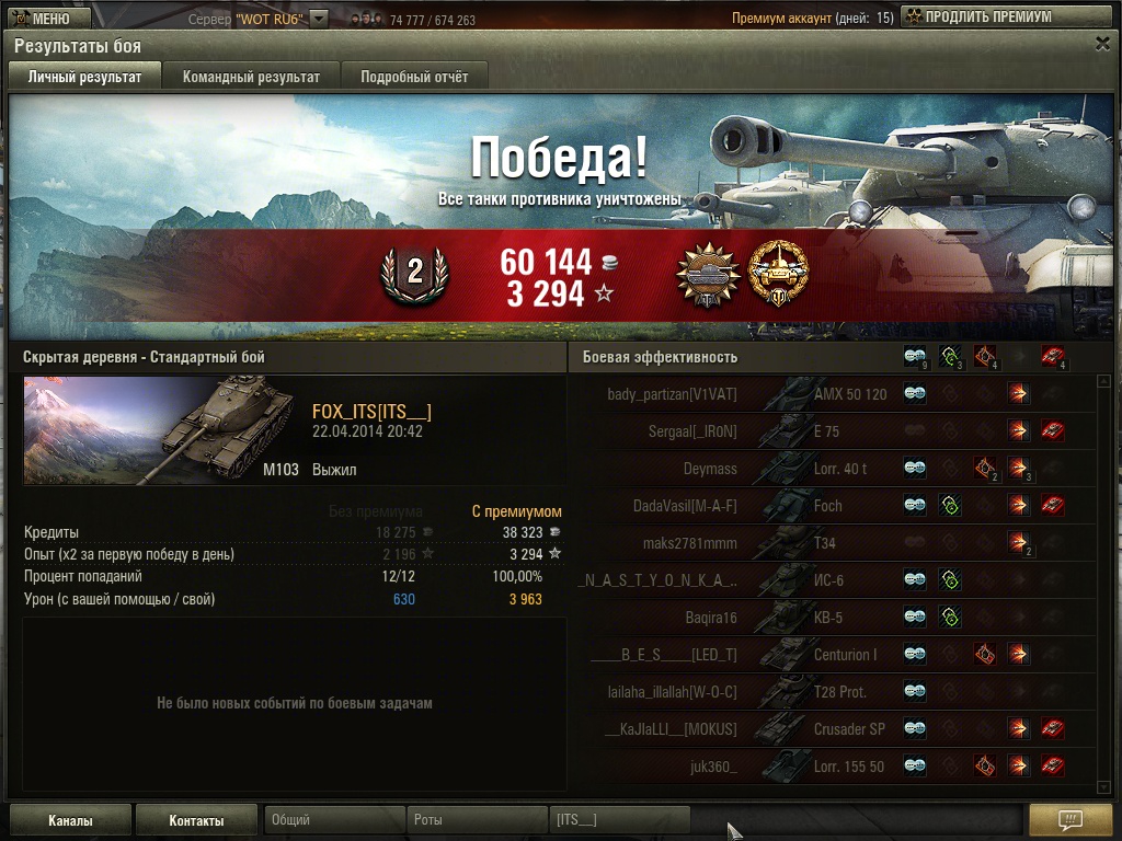 Игровой прайм тайм от 21:00 Техника, на которой будете играть во взводе - не принципиально, есть некий выбор до 6 - го уровня профиль http://worldoftanks.ru/community/accounts/41072012-IgorMarx/ стата http://kttc.ru/statistics/user/IgorMarx (можете не заглядвать, такую стату испортить уже сложно) Ищу напарников во взвод, желающих учиться и совершенствоваться. Пока есть машины до 6 уровня с экипажами без до конца прокачанных первых перков. Цели - изучение карт, обзоров, брони, обмен опытом. Если вы смотрите гайды (не те видео, где понтово нагибают, а видео, где есть полезная составляющая - анализ ошибок, полезная инфа и т.д - Вспышка и особо Маракаси вас интересуют больше, чем Джов и Амвей), то мы сыграемся. В перспективе - командная игра. ОБЯЗАТЕЛЬНО: - адекватность; - умение и желание делать элементарный анализ поражений, просматривать реплеи; - желание катать тренировки; - желание смотреть гайды, делиться интересным с сотоварищами; - голосовая связь; - стабильный онлайн (когда не типа "не лагает", а типа "я готов в такое-то время быть в сети ) - никакого "ололо раш" (я хоть и отболел с этим, но самого иногда прорывает). Возраст желательно 30+ или если очень условия подходит, то и не особо важно. Вот, собсна.. Игорь.