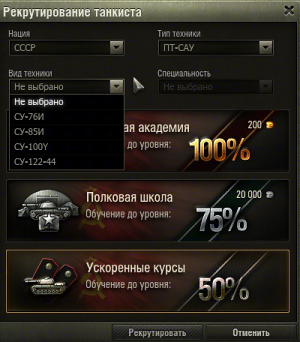 Добрый день! Подскажите, какие условия нужны, чтобы рекрутировать экипаж на технику, которой еще нет в ангаре. Хочу рекрутировать экипаж для ветки ПТ-САУ СССР, но среди доступных вариантов только прем-танки. Дело в том, что у меня еще не открыто ни одной из исследуемых ПТ-САУ этой нации? Баг или фича? http://cdn-frm-eu.wargaming.net/wot/ru/uploads/monthly_06_2014/post-13521144-0-93250300-1402560563_thumb.png