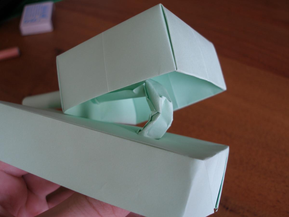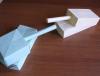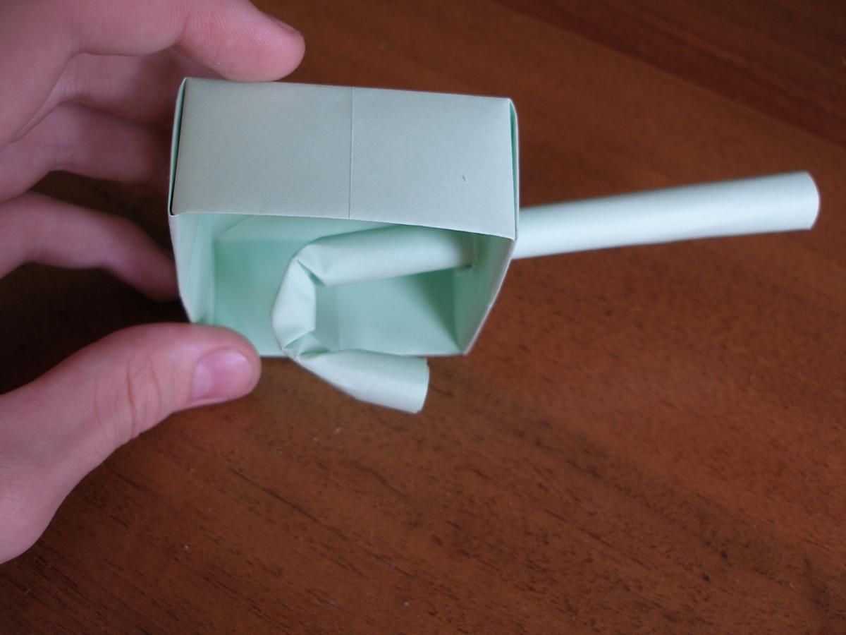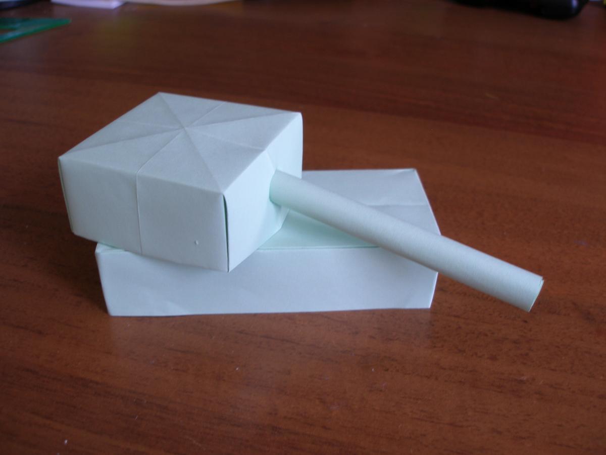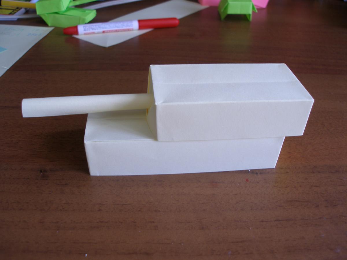 Вот придумал на днях как сделать оригами танк и пт-сау. Танк: http://cdn-frm-eu.wargaming.net/wot/ru/uploads/monthly_06_2012/post-2544984-0-60168700-1339937657_thumb.jpg Башня танка поворачивается(см в конце изготовления) Пт-сау: http://cdn-frm-eu.wargaming.net/wot/ru/uploads/monthly_06_2012/post-2544984-0-97962900-1339937702_thumb.jpg Начнем с игзотовления танка. 1. Возьмем два листка 17х17 см и 17х21 см http://cdn-frm-eu.wargaming.net/wot/ru/uploads/monthly_06_2012/post-2544984-0-27873800-1339937282_thumb.jpg 2. положите перед собой прямоугольный листок длинной стороной по вертикали и сложите пополам. http://cdn-frm-eu.wargaming.net/wot/ru/uploads/monthly_06_2012/post-2544984-0-86546100-1339937851_thumb.jpg 3.Сложите нижнюю и верхнюю часть листа к центру. http://cdn-frm-eu.wargaming.net/wot/ru/uploads/monthly_06_2012/post-2544984-0-44834800-1339937941_thumb.jpg 4.Повторите действие 3. http://cdn-frm-eu.wargaming.net/wot/ru/uploads/monthly_06_2012/post-2544984-0-45457300-1339937930_thumb.jpg 5.Теперь все разверните. http://cdn-frm-eu.wargaming.net/wot/ru/uploads/monthly_06_2012/post-2544984-0-21259500-1339938012_thumb.jpg 6.Сложите по складкам вот так: http://cdn-frm-eu.wargaming.net/wot/ru/uploads/monthly_06_2012/post-2544984-0-82546400-1339938099_thumb.jpg 7. загните уголки с одной стороны к центру. http://cdn-frm-eu.wargaming.net/wot/ru/uploads/monthly_06_2012/post-2544984-0-84399300-1339938142_thumb.jpg 8.Теперь с левой стороны http://cdn-frm-eu.wargaming.net/wot/ru/uploads/monthly_06_2012/post-2544984-0-21067900-1339938212_thumb.jpg http://cdn-frm-eu.wargaming.net/wot/ru/uploads/monthly_06_2012/post-2544984-0-48304800-1339938288_thumb.jpg 9.Повторите с другого торца и вот что получится: http://cdn-frm-eu.wargaming.net/wot/ru/uploads/monthly_06_2012/post-2544984-0-70643900-1339938328_thumb.jpg 10. Разворачиваем нашу модельку. http://cdn-frm-eu.wargaming.net/wot/ru/uploads/monthly_06_2012/post-2544984-0-10398500-1339938380_thumb.jpg http://cdn-frm-eu.wargaming.net/wot/ru/uploads/monthly_06_2012/post-2544984-0-69092200-1339938388_thumb.jpg 11.Берем квадратный листок и делаем такие складки. http://cdn-frm-eu.wargaming.net/wot/ru/uploads/monthly_06_2012/post-2544984-0-03746000-1339938430_thumb.jpg 12.Загибаем уголки к центру. http://cdn-frm-eu.wargaming.net/wot/ru/uploads/monthly_06_2012/post-2544984-0-91064900-1339938488_thumb.jpg 13.Делаем такие складки. http://cdn-frm-eu.wargaming.net/wot/ru/uploads/monthly_06_2012/post-2544984-0-49633700-1339938538_thumb.jpg 14.Отворачиваем 2 уголка. http://cdn-frm-eu.wargaming.net/wot/ru/uploads/monthly_06_2012/post-2544984-0-29227900-1339938549_thumb.jpg 15. http://cdn-frm-eu.wargaming.net/wot/ru/uploads/monthly_06_2012/post-2544984-0-68562400-1339938631_thumb.jpg http://cdn-frm-eu.wargaming.net/wot/ru/uploads/monthly_06_2012/post-2544984-0-41418600-1339938639_thumb.jpg http://cdn-frm-eu.wargaming.net/wot/ru/uploads/monthly_06_2012/post-2544984-0-19980800-1339938647_thumb.jpg http://cdn-frm-eu.wargaming.net/wot/ru/uploads/monthly_06_2012/post-2544984-0-98997600-1339938712_thumb.jpg 16.доделываем коробочку с другой стороны операцией 15. http://cdn-frm-eu.wargaming.net/wot/ru/uploads/monthly_06_2012/post-2544984-0-82690000-1339938721_thumb.jpg 17. теперь делаем трубочку и сгибаем ее вот так: http://cdn-frm-eu.wargaming.net/wot/ru/uploads/monthly_06_2012/post-2544984-0-45177900-1339938791_thumb.jpg 18.сплючиваем трубочку в месте сгиба,чтобы он сохранился. http://cdn-frm-eu.wargaming.net/wot/ru/uploads/monthly_06_2012/post-2544984-0-94067300-1339938871_thumb.jpg http://cdn-frm-eu.wargaming.net/wot/ru/uploads/monthly_06_2012/post-2544984-0-93163100-1339938884_thumb.jpg 19. делаем дырку в квадратной коробочке тут http://cdn-frm-eu.wargaming.net/wot/ru/uploads/monthly_06_2012/post-2544984-0-64862400-1339938924_thumb.jpg и в прямоугольной тут http://cdn-frm-eu.wargaming.net/wot/ru/uploads/monthly_06_2012/post-2544984-0-08519000-1339938932_thumb.jpg 20.Суем наш ствол в дырку в квадратной коробочке вот так: http://cdn-frm-eu.wargaming.net/wot/ru/uploads/monthly_06_2012/post-2544984-0-63126900-1339938978_thumb.jpg далее в прямоугольную так http://cdn-frm-eu.wargaming.net/wot/ru/uploads/monthly_06_2012/post-2544984-0-35770600-1339939027_thumb.jpg http://cdn-frm-eu.wargaming.net/wot/ru/uploads/monthly_06_2012/post-2544984-0-25143100-1339939061_thumb.jpg 21.Танк готов!!! Башня и пушка поворачиваются! http://cdn-frm-eu.wargaming.net/wot/ru/uploads/monthly_06_2012/post-2544984-0-32396100-1339939104_thumb.jpg http://cdn-frm-eu.wargaming.net/wot/ru/uploads/monthly_06_2012/post-2544984-0-56764400-1339939120_thumb.jpg http://cdn-frm-eu.wargaming.net/wot/ru/uploads/monthly_06_2012/post-2544984-0-33319700-1339939112_thumb.jpg Теперь Пт-сау 1. Берем 2 листка бумаги 21х18см и 21х15 см http://cdn-frm-eu.wargaming.net/wot/ru/uploads/monthly_06_2012/post-2544984-0-50141800-1339939370_thumb.jpg ВАЖНО:кладем их длинной стороной по вертикали!!! Делаем самую первую коробочку из обоих листков(выше): http://cdn-frm-eu.wargaming.net/wot/ru/uploads/monthly_06_2012/post-25449