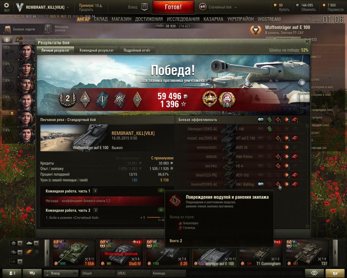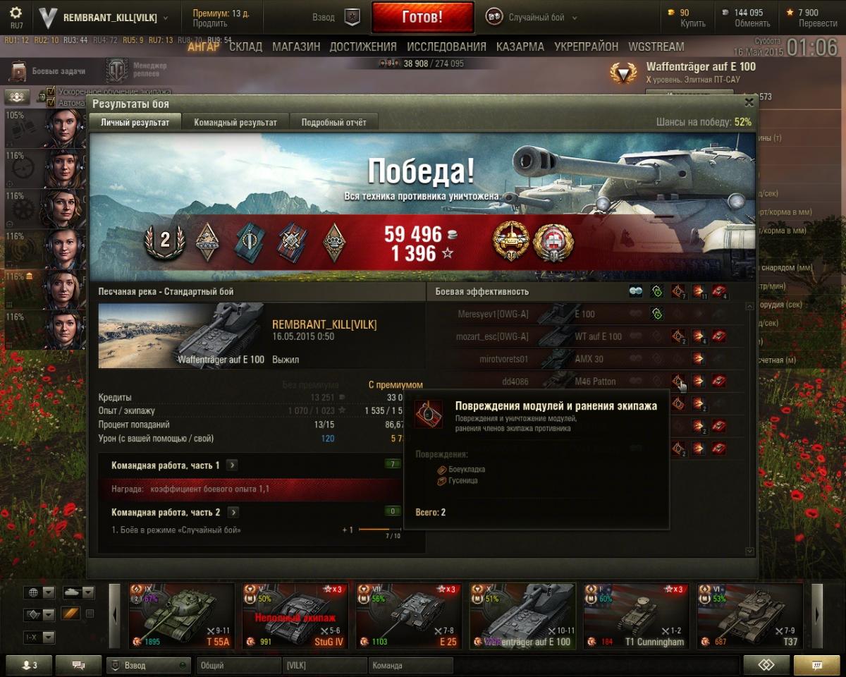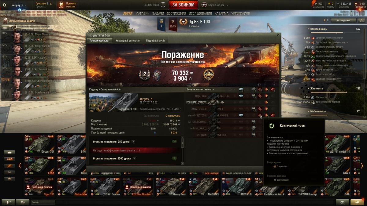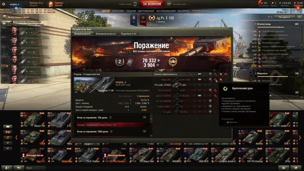 Уважаемые эксперты, устал проходить лбз на об 260 ПТ-2, необходимо нанести 5000урона и вывести из строя 3 внутренних модуля или члена экипажа. До этого набивал на ПТ более 5к урона много раз, но внутрение модули не критовались, в основном гусли - вынос мозга! вчера , вроде как выполнил все условия, но лбз не засчиталось, проверьте пожалуйста? надеюсь это баг в игре после патча и мне перезачтется эта задача, а неправильное описание задачи (критануть 3 модуля или контузить 3 члена экипажа - как должно тогда быть в описании). 20170729_0052_germany-G72_JagdPz_E100_34_redshire.wotreplay