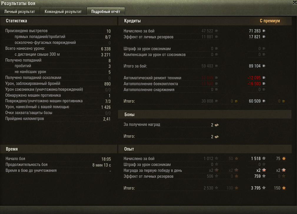 Здравствуйте, разработчики. У меня несколько раз уже не засчитывается ЛБЗ ПТ-2 (Т-55А). Хотя вроде бы условия выполнены. Вот последний реплей: http://wotreplays.ru/site/6978224?secret=d2ab479625472ea0581a2b2db3a7efb8 Описание ЛБЗ: нанести 2000 урона и вывести из строя не менее 2-х внутренних модулей или ранить членов экипажа противкника Играл на Хелкете. нанес 2219 урона. Среди критов есть боеуклад O-Ni и радист КВ-2 Почему ЛБЗ не засчиталось?