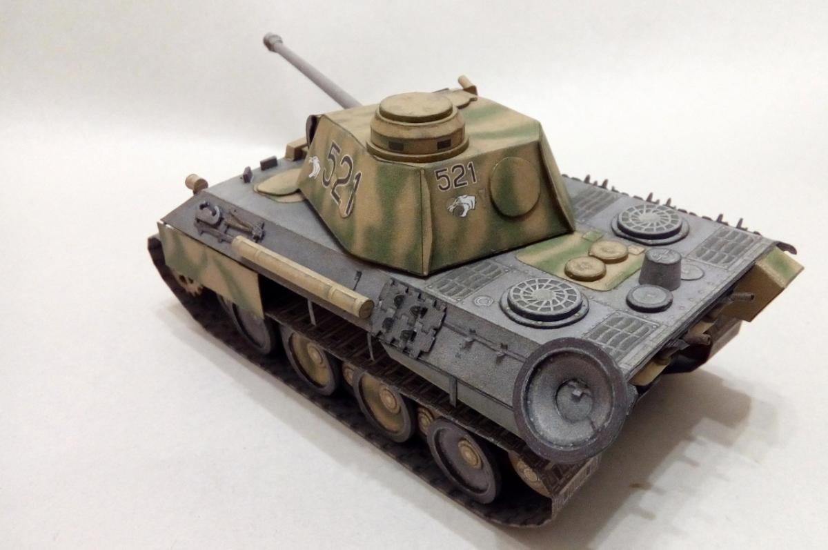 Всем здравствуйте. Предлагаю на Ваш суд модель "Пантеры " от пана Халинского, масштаб 1:25. Буду краток. Сборка из оригинального журнала, покраска только торцы, пулеметы, шанцевый инструмент ну и конечно широченные полки под запасные траки, под которые детали с камуфляжем, пан Халинський не озаботился нарисовать. "Оживил" прожекторы и прицелы.