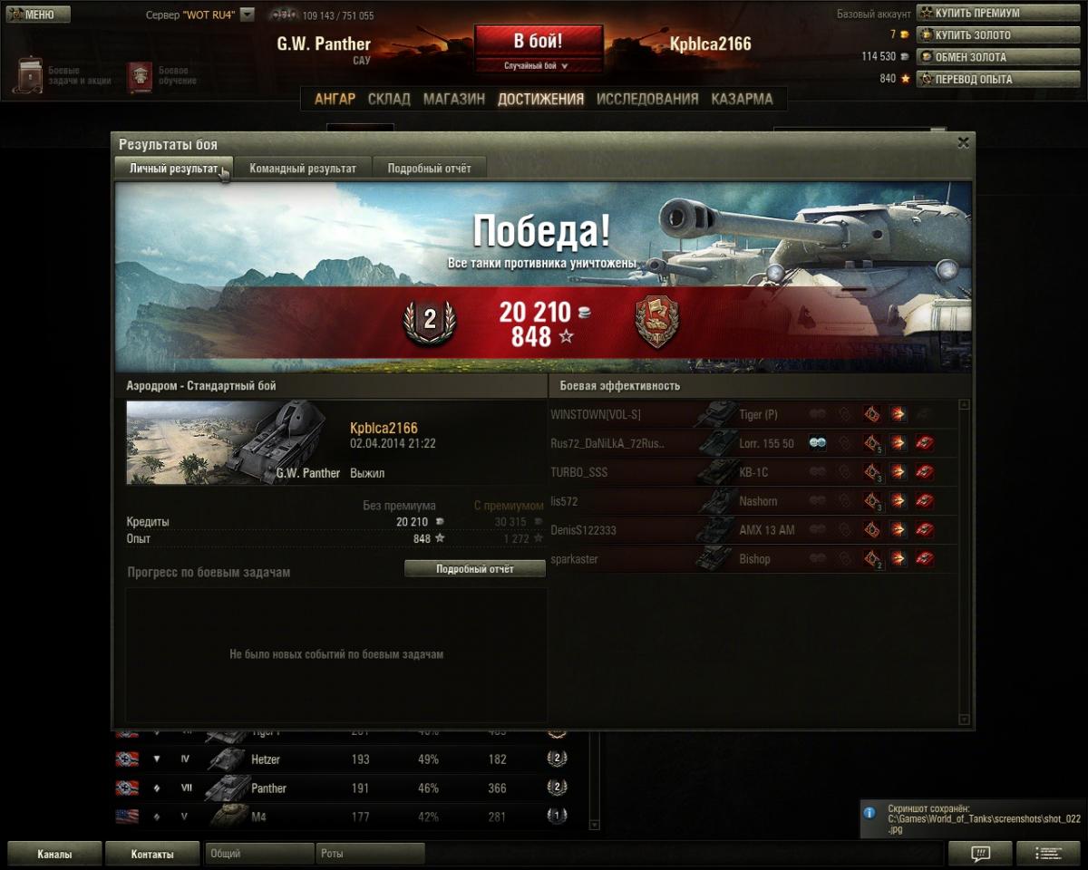 Очень полюбил этот танчик. Рекомендую людям с головой, которые умеют смотреть мини карту и выезжать в нужном месте в нужное время для раздачи дамага и выпаса северных копытных, пытающихся щипать ягель на полях World of Tanks. Решил сделать подборку удачных боёв на нём и выложить на ютуб. Неудачные тоже есть, но их выкладывать не буду :) Удачных боёв намного больше чем неудачных, и это очень радует. Тактика на нём своеобразная - прячем по возможности тушку за домиками или рельефом, выскакиваем неожиданно и пробиваем альфа- дамаг. На размен ХП иногда идти нужно, но всё же надо стараться этого избегать - хп очень мало. Не пренебрегаем голдой за серебро. И конечно, особый фан доставляет только фугасница. Не ленимся сводиться. Терпеливо выцеливаем. Вливаем жуткий дамаг. Отъезжаем. Читаем проклятия в чате, перезаряжаемся. Выезжаем и добиваем. Ещё интересно играть башенкой на уклонах - маску часто не пробивают. Су 26 голдой пробовал - маску не пробил.. PS - Завидующие ставят минусы, поэтому парни, которые любят играть и нагибать - ставьте плюсы плиз, чтобы завистники заткнулись :) Победа! Бой: Эль-Халлуф 21 марта 2013 г. 11:31:52 Танк: M4 Sherman Получено опыта: 4 280 (x2 за первую победу в день) Получено кредитов: 46 704 Достижения в бою: Медаль Рэдли-Уолтерса, Медаль Колобанова, «Воин»