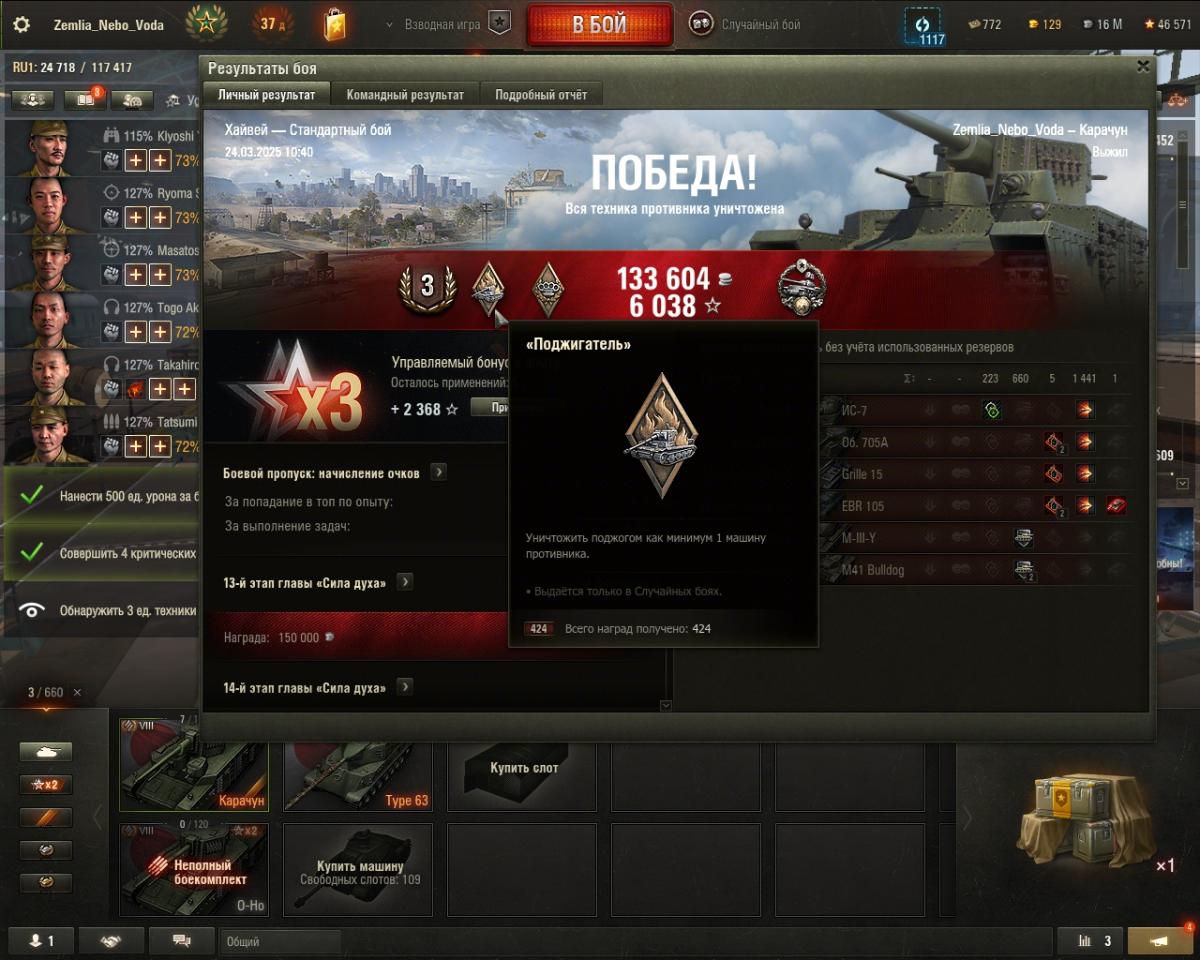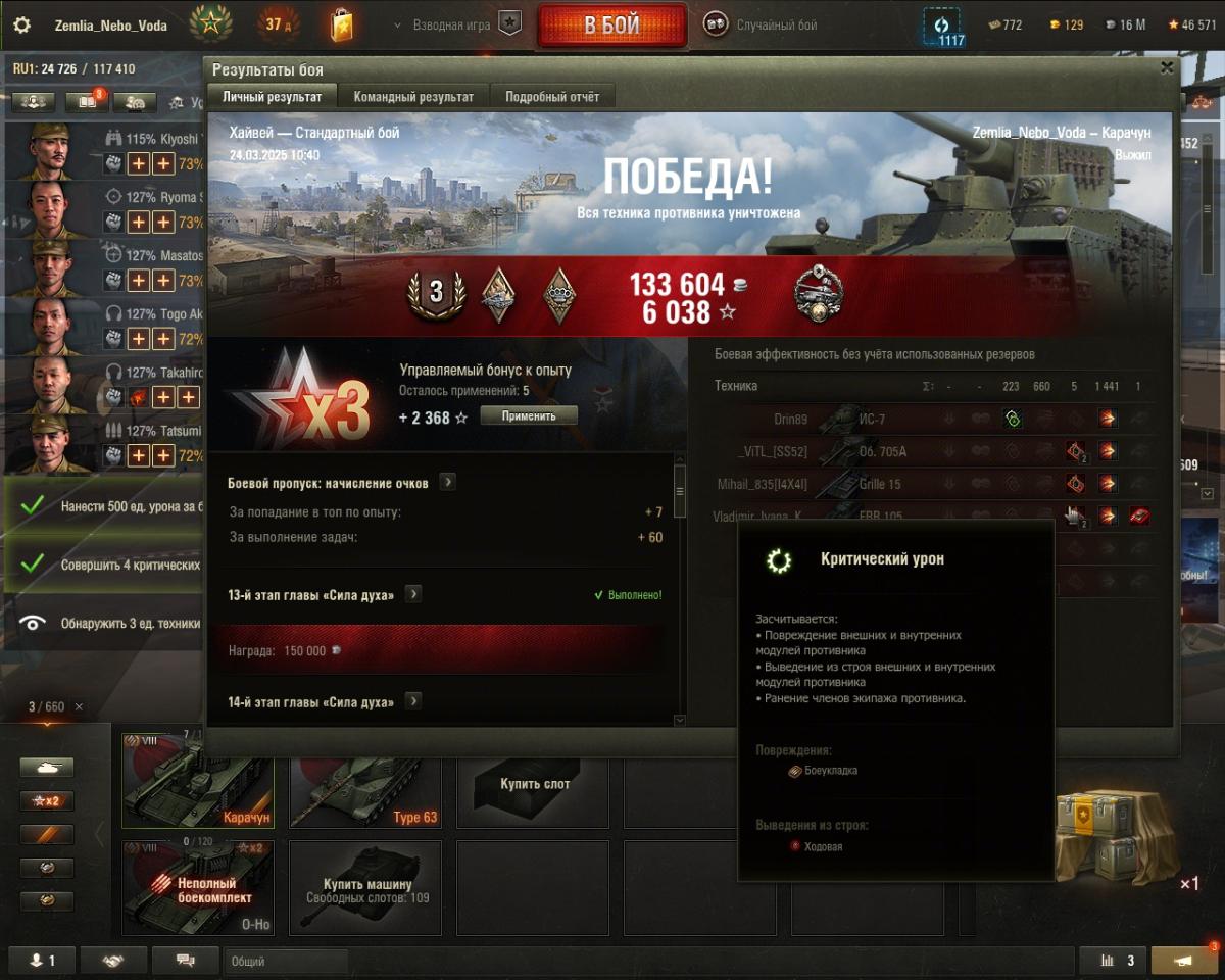 Добрый день танкисты, модераторы, разработчики. При прохождении Кампании на Об.279 во всех ветках операции присутствуют ЛБЗ на нанесении критических повреждений внутренним модулям танков противников (либо 3-5 критов в каждом из 3-х последовательных боев, либо 25-30 критов за 10 боев). Собственно, помимо большой доли везения при выполнении этих задач, связанных с шансом попадания по модулю/ шансом повреждения модуля, я столкнулся с багом, который мешает выполнению ЛБЗ. Бой 1. 20240506_2327_ussr-R127_T44_100_I_28_desert.wotreplay 1,54МБ При попадании по французскому ЛТ 7 лвл EBR Hotch. (12:54 на таймере обратного отсчета до окончания боя) происходит его поджог, однако, в результатах боя нет критов двигателя или топливных баков, а о других причинах возникновения пожара кроме критов этих 2-х модулей я не слышал, хотя играю-таки давно. Бой 2. 20240516_2305_ussr-R127_T44_100_I_45_north_america.wotreplay 1,45МБ В эндшпиле боя (08:23) наконец удается поджечь немецкий СТ 9 лвл Kunze Panzer, но опять критов ни двигателя, ни топливных баков в окошке результатов боя нет. И если может в случае с EBR можно посмеяться мол это колесо загорелось, то в случае с Kunze Panzer так порофлить уже не получается. Спасибо всем за внимание, надеюсь на то, что лица близкие к гейм-дизайну обратят внимание на данный баг (на мой взгляд) в механике поджога танков и внесут советующие коррективы или укажут на официальный источник информации о механике поджога танков без критов двигателя или баков.