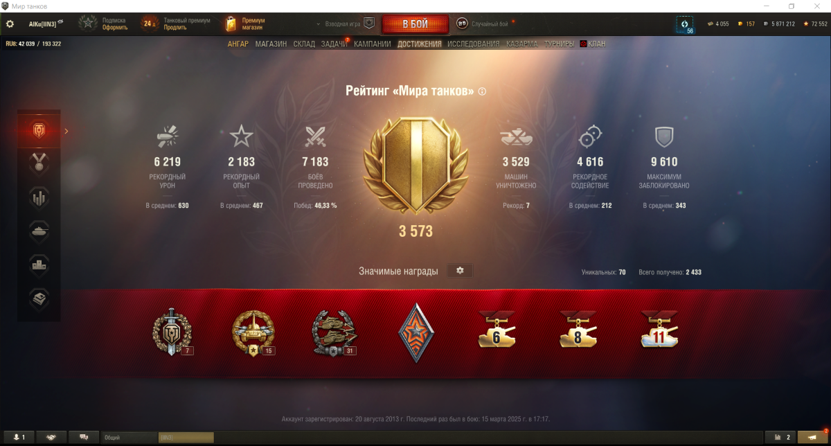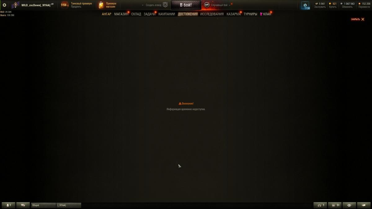 Добрый день! Уважаемые админы, прошу, поясните пожалуйста, почему не отображается таблица достижений в игре? При открытии появляется ошибка: нет доступа. На сайте нет возможности просмотреть достижения, возникает ошибка: нет доступа, аккаунт заблокирован. Личный рейтинг в игре неизменен и замер на значении со времени переноса с сервера WOT, показатели в игре и на сайте так же отличаются значительно, в пояснения из раздела техподдержки не укладывается, прецедентов на форуме так же не встретил. Скрины прилагаю, спасибо!