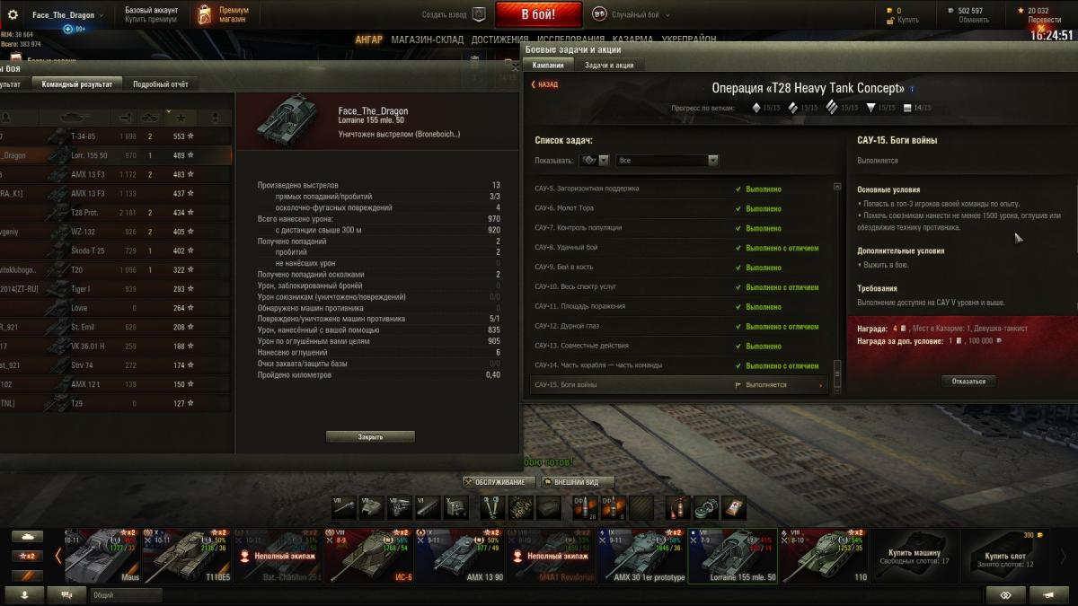 Почему не засчиталась ЛБЗ САУ-15 на T28 Concept? Попасть в топ-3 игроков обеих команд по опыту и урону. Нанести не менее 2000 урона.Ответы вроде "Возможно, задача не была активирована" и т.п. не принимаются. Всё было активировано как положено, более того, пробовал удалять все моды, перезаходить в клиента, деактивировать/активировать задачу и т.д. и т.п. - никакого результата. Единственное - не выполнены доп.условия задачи - выжить, однако основные условия выполнены, но награда не была начислена. Почему? Снова опечатка в условиях? Или я чего не вижу? Комрады, а также уважаемые разработчики, помогите разобраться! Спасибо. http://cdn-frm-eu.wargaming.net/wot/ru/uploads/monthly_06_2015/post-1442025-0-42145700-1433878859_thumb.jpg http://cdn-frm-eu.wargaming.net/wot/ru/uploads/monthly_06_2015/post-1442025-0-51085000-1433878878_thumb.jpg http://cdn-frm-eu.wargaming.net/wot/ru/uploads/monthly_06_2015/post-1442025-0-03782400-1433880950_thumb.jpg