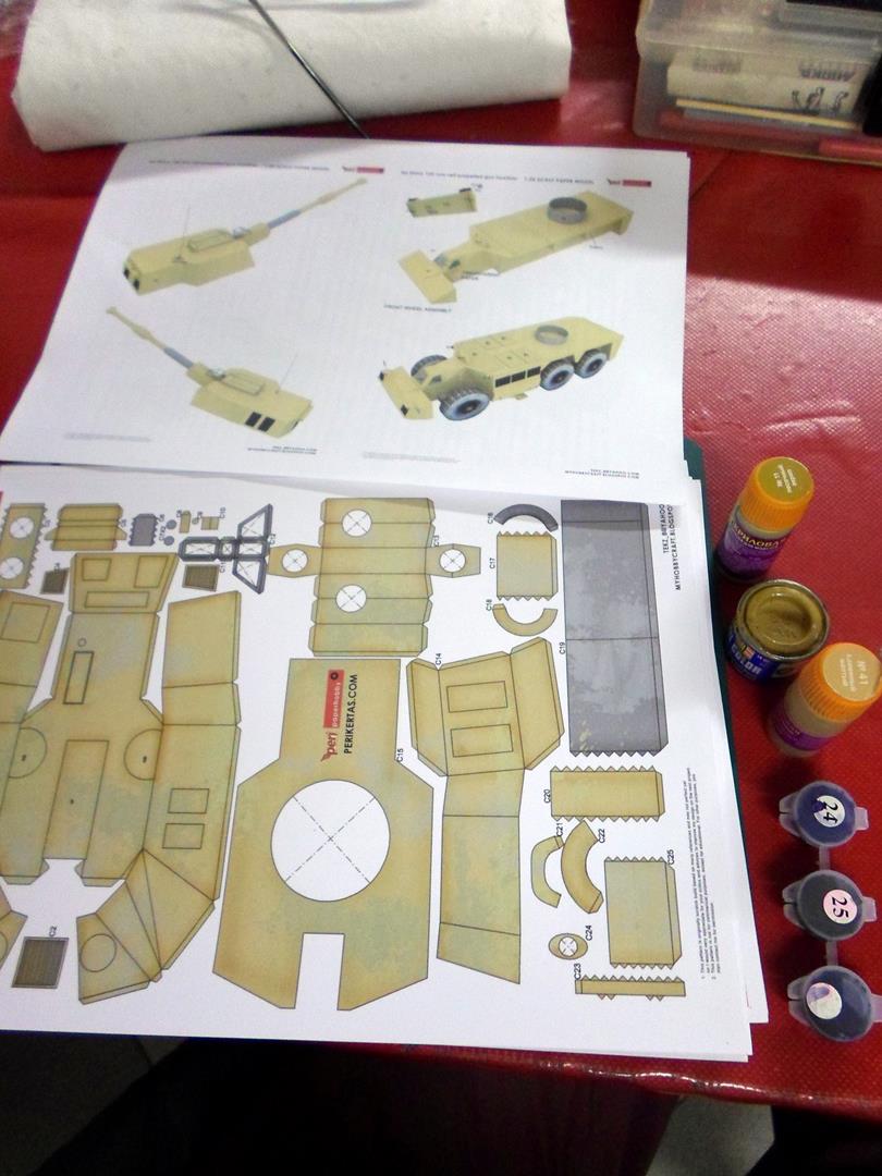 Доброе время суток.На просторах инета нашёл бумажную модель интересной Сау G6 «Rhino» ,это брошюра в электронной версии и насколько я понял изначально в свободном доступе.Разработчик указывает 35 масштаб,брошюра содержит 6 листов с деталями и подробную инструкцию(без ТТХописания сборки).Дабы не ходит на посторонние сайты привожу краткую историческую справкуhttp://cdn-frm-eu.wargaming.net/wot/ru/uploads/monthly_04_2018/post-29761540-0-77439000-1522580314_thumb.jpg Распечатал дома,задул матовым лаком,подобрал краску для торцовhttp://cdn-frm-eu.wargaming.net/wot/ru/uploads/monthly_04_2018/post-29761540-0-78241600-1522580372_thumb.jpg Начнём клеить с колёс-их 6шт.,но они не сложные и клеятся из 5 деталейhttp://cdn-frm-eu.wargaming.net/wot/ru/uploads/monthly_04_2018/post-29761540-0-87338800-1522580431_thumb.jpg зубчики я не стал обрезать,они очень помогут приклеить боковины.