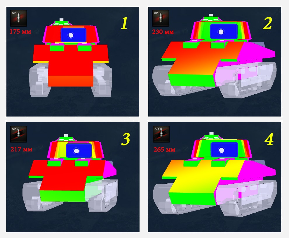 Доброго времени суток, уважаемые форумчане ! Представляю Вам ===T110E4=== https://forum-mt-prod.lesta.ru/monthly_12_2024/msg-173425-0-63819500-1733682798.jpg Историческая справка, ТТХ, роль, бронирование, модули, плюсы и минусы, оборудование, расходники, перки, ПМ. Советы и рекомендации по тактике применения.Подборки реплеев, видео, рецензий Юбилейный 75-ый гайд посвящаю венцу башенных самоходок из дерева развития США, которая представляет из себя замысловатую комбинацию геймплея тяжелых танков и ПТ-САУ. Если компоновка и мобильность досталась скорее от ТТ, то мощное крупнокалиберное орудие однозначно от истребителей танков. Что позволяет нашей боевой единице уверенно себя чувствовать в условиях коридорного боя, а увесистая 155-мм плюха точно оставит у подставившегося противника яркие воспоминания от встречи с нашей машиной ! Следовательно, в таких условиях дело осталось за малым... Заставить саму самоходку стабильно попадать по противникам... ИСТОРИЧЕСКАЯ СПРАВКА ТАКТИКО-ТЕХНИЧЕСКИЕ ХАРАКТЕРИСТИКИ МАШИНЫ В ИГРЕ Прочность 2000 Масса (т) 64,03 Мощность двигателя (л.с.) 875 Номинальная максимальная скорость переднего/заднего хода (км/ч) 35/10 Бронирование корпуса (лоб/борт/корма в мм) 260/76/38 Бронирование башни (лоб/борт/корма в мм) 203/152/152 Урон БП/БП/ОФ снарядом 750/750/1100 Бронепробитие БП/БП/ОФ снарядом (мм) 295/375/90 Скорострельность (выстрелов в минуту) 3,08 Скорость поворота шасси/башни (град/с) 26/18 Обзор(м) 390 Дальность связи(м) 745 Роль и Модули ПТ-САУ Т110E4 является машиной 10-го уровня и открывается с T30 за 211000 опыта и стоимость самоходки составляет 6100000 кредитов(серебра). В игре данная машина как правило называется просто "е четыре". Уже сразу при покупке боевая единица наделена всеми топовыми модулями, следовательно не требует их прокачки и имеет "Элитный" статус. Как и все другие венцы веток, данная машина не подходит для заработка кредитов и в основном идет в минус по серебру, особенно при отсутствии премиум аккаунта. А основная роль на поле боя сводится к поддержке ТТ союзников за счет альфы и весьма высокого пробития во время непосредственного столкновения с тяжами и прочими хорошо бронированными машинами противника. https://forum-mt-prod.lesta.ru/monthly_12_2024/msg-173425-0-00429600-1733605284.jpg Прочность и бронирование. Запас прочности у героя гайда выше среднего по сравнению со всеми ПТ-САУ 10-го уровня, однако относительно штурмовых ТТ, которым мы зачастую будем противостоять, этот показатель выглядит довольно скромно. Лобовое бронирование машины серьезно уступает своему собрату Т110E3, особенно в зоне башни(рубки). Рельеф и толщина брони корпуса довольно схожи с ТТ собратом Т110E5 и в этой зоне к явно слабому участку можно отнести НЛД, в то время как для уверенного пробития ВЛД потребуется пробитие как минимум в районе 300 мм. И при пробитии корпуса есть проблема того, что внутри его расположено сразу несколько обильных зон с боеукладкой(картинка под вторым спойлером ниже). Касаемо брони башни, ситуация здесь выглядит несколько сложнее и попробовать положиться на ее броню можно только в топе против техники низших уровней(при условии что вы не показываете башенку), в первую очередь восьмерок, а для других десяток защита в 240-250 мм не выглядит непреступной, тем более что зон с таким уровнем приведенной брони сразу несколько: щеки правее и левее маски, сама маска правее и левее от орудия, башенка командира, порог башни. В то время к