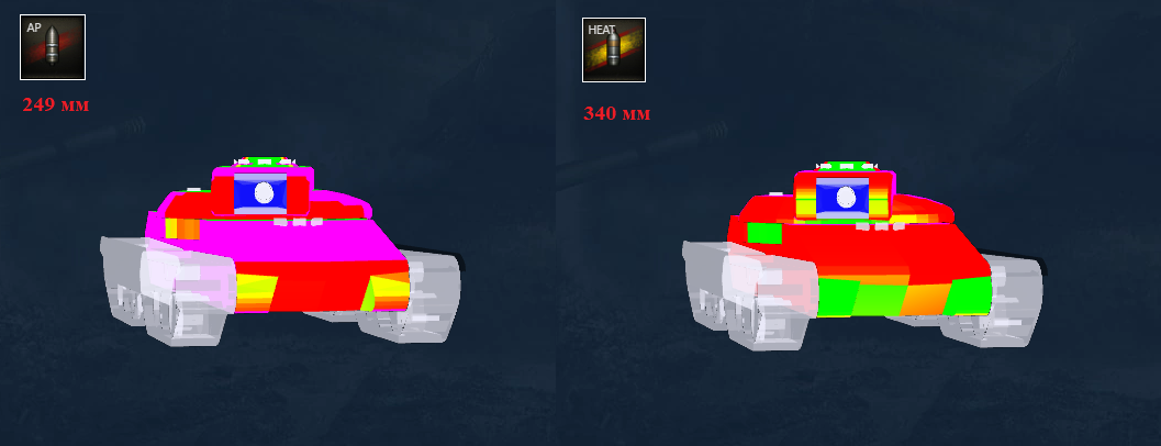 ОГНЕМЁТНЫЙ ТЯЖЕЛЫЙ ТАНК IX УРОВНЯ TF-2 Здравствуй, читатель! TF-2 Clark – это практически квинтэссенция огнеметов, их альфа и омега, настоящее воплощение концепции текущего огнеметного танка, совмещающего ошеломляющую броню (в хорошем смысле) и пушку (в плохом смысле), эдакий танк без орудия: уничтожить его сложно, но степень опасности низкая, проще игнорировать эту бесполезность. В общем, вот она, достойная награда за второй этап ЛБЗ 3.0 или часы гринда ради выполнения 45 задач (а ведь еще до этого нужно было завершить первый этап), приятного аппетита. Историческая справка В игре представлено следующее описание: В начале 50-х годов в американском танкостроении наметилось направление на разработку танка с низким силуэтом, которую попробовали реализовать в огнемётном танке TF-2 CLARK. Концепция подразумевала использование низких оппозитных двигателей воздушного охлаждения и размещение водителя полулёжа. Ещё одной особенностью танка стала 4-гусеничная схема с гидростатической трансмиссией. CLARK являлся альтернативой огнемётному танку T67. Однако, он так и остался проектом, поскольку 4-гусеничную схему признали слишком сложной, а огнемётный танк T67 было проще изготовить. Характеристики машины могут быть изменены без компенсации. Значимые изменения 1.32 - ввод огнеметной ветки США и кампании личных боевых задач «Новые горизонты» 1.34 - ослабление урона огнесмеси (броню данному танку не трогали) 1.38 - изменения балансировщика (приоритет на уровень боев ±1) 1.39 - незначительное изменение полевой модернизации ТТХ танка, его экипаж и прокачка модулей Данная техника является наградной и ее не нужно прокачивать, на нее не нужно переобучать экипаж, к тому же она приносит больше опыта за бой. В результате танк имеет самую слабую огнесмесь среди всех американских огнеметов (10/15 ед. урона), УВН орудия не 10°, а почему-то 8°, что всё же неплохо, но уже не «вау». Броня замечательна, несмотря на некоторые изъяны, речь о которых пойдет чуть позже в разделе Брони. Обзор тоже очень хорош, составляя солидные 400 м. Подвижность при этом отвратительная: максимальная скорость 20 км/ч, а удельная мощность 13,1 л.с./т, но хоть крутится на месте не так плохо. Как и у всех огнеметов, сложности представляет прокачка экипажа, поскольку данный танк обходится всего 3-мя членами экипажа, 2-ое из которых выполняют несколько ролей одновременно (см. раздел Навыков экипажа), так что, друг, готовь учебные пособия, если ты этого уже не сделал. Если же сделал, то честь тебе и хвала, просто пересади веселую троицу с другого огнемета. Броня В самом деле прекрасная броня, лучше, чем у TF-4. Впрочем, это единственная сильная сторона данного танка, если забыть про дальность обзора, но даже тут есть нюанс. Корпус Нижний бронелист танка обладает феноменальной крепостью (Рис. 1 и 2), при довороте корпуса для его уверенного пробития требуются кумулятивы пробитием более 390 (или же ББ от Ho-Ri 3), а таких в игре совсем немного (Рис. 3). Огорчают только здоровенные выступы по краям, впрочем, даже у них наберется 240-260 мм брони против ББ, что может спасти в нужный момент. Верхний бронелист, напротив, немного огорчает, ведь он по какой-то причине уступает тому же TF-4. На нем нет выступов, он не закруглен, но толщины все же не хватает в определенных ситуациях. На расстоянии и при довороте он вполне способен держать даже большинства голдов