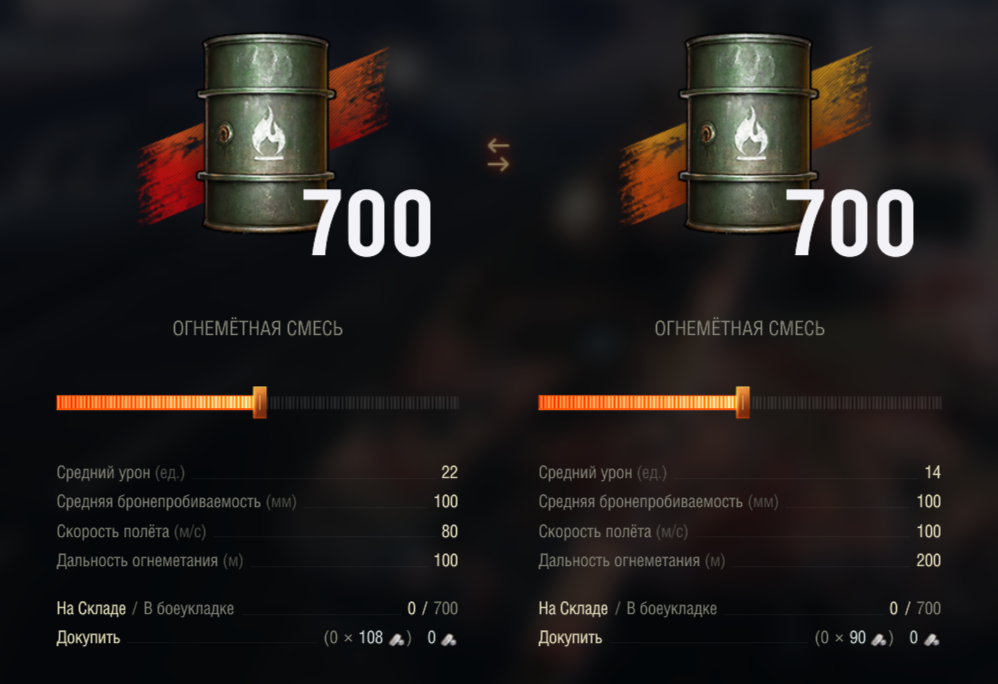 ОГНЕМЁТНЫЙ ТЯЖЕЛЫЙ ТАНК IX УРОВНЯ TF-4 Здравствуй, читатель! Заинтересовался 9 уровнем? Значит, ты уже не случайный посетитель вида «а что там на 10 уровне ветки?» или «а что там в начале на 7 лвл?», ты решил «погрузиться» в огнемётную тему (даже если ты этого не хочешь признавать). Ты уже познал манящую красоту золотой струи, ее элегантный, степенный полет к цели, ее давящую на психику танкистов мощь и величие. Неважно, с какой стороны струи ты был и куда она тебе попала, чтобы осознать это, теперь ты в ее власти. Итак, TF-4, 9 уровень, пожалуй, самый удобный среди всей огнемётной братии: быстрый, маневренный, обладающий хорошей броней с небольшими уязвимыми зонами, резкий, дерзкий, но все такой же неспособный стабильно наносить много урона. Ах да, опыта для его получения и прокачки потребуется очень много). Историческая справка В игре представлено следующее описание: В начале 50-х годов в странах НАТО весьма популярной идеей стала четырёхгусеничная схема, именно её попытались реализовать на новом огнемётном танке TF-4. Танк должен был получить очень мощную броневую защиту, чтобы успешно действовать в качестве огнемётной машины, и гидростатическую трансмиссию для обеспечения высокой подвижности. Слабо проработанный концепт разработки привел к тому, что TF-4 даже не попал в общий список вопросов конференций Question Mark. По итогу проект затерялся среди прочих и не получил дальнейшего развития. Значимые обновления 1.32 - ввод огнеметной ветки США 1.34 - ослабление лобовой брони и урона огнесмеси 1.38 - изменения балансировщика (приоритет на уровень боев ±1) 1.39 - незначительное изменение полевой модернизации ТТХ танка, его экипаж и прокачка модулей Модули для танка совершенно уникальны (какая радость!) и их придется прокачивать все, поскольку они дают серьезную прибавку к характеристикам, разве что гусеницы и рацию можно и пропустить, если не терпится потрогать десятку, до которой аж 251 000 опыта, хотя танк вроде бы и не арта. Всего для вывода в топ потребуются скромные 107 600 опыта (цена TF-3, между прочим). Порядок прокачки оригинальностью не отличается: Башня -> Двигатель -> Гусеницы -> Рация В стоке танк может похвастаться следующими характеристиками: Пушка не меняется, броня стоковой башни в сравнении c топовой не сильно хуже, поэтому главным отличием стока от топа будет скачок удельной мощности: Таким образом, в топе танк со 100% экипажем обладает хорошим обзором 400 м и аж 10 градусами УВН, средними показателями прочности 1900 ед. при сильном бронировании с маленькими уязвимыми зонами. При этом сохраняется хорошая подвижность танка, она даже растет по сравнению с 8 уровнем. Удельная мощность достигает 16,17 л.с./т, а максимальная скорость 40 км/ч, что не может не радовать. Как и у всех огнемётов, сложности представляет прокачка экипажа, поскольку данный огнемёт обходится всего 3-мя членами экипажа, 2-ое из которых выполняют несколько ролей одновременно (см. картинку выше), так что, друг, готовь учебные пособия, если ты этого уже не сделал. Броня Наконец-то можно сказать, что броня танка действительно хороша. Корпус Броня позволяет свободно вставать ромбом, а также обладает стандартными огнемётными уязвимостями, к которым добавляется место обитания мехвода. Верхний бронелист имеет рикошетный угол и весьма достойно держит удар, опасность его пробития представляют разве что кум
