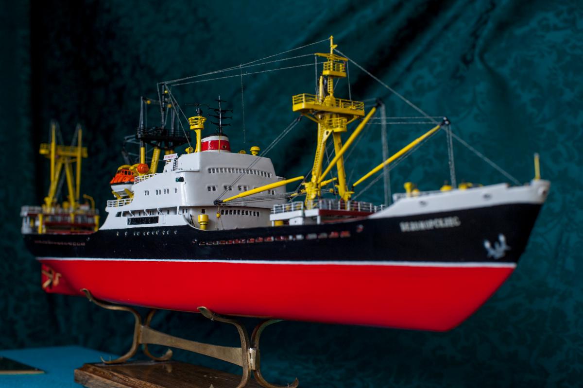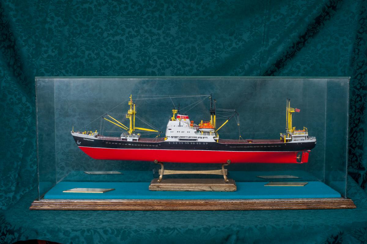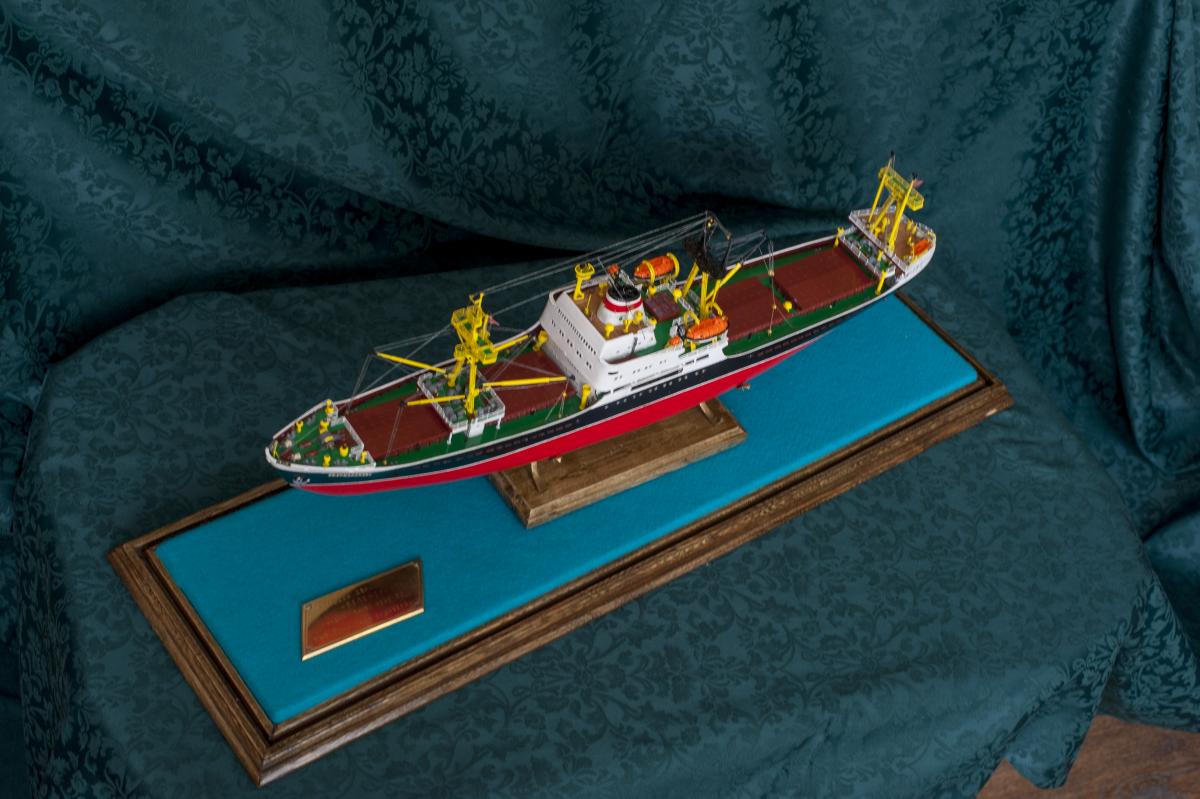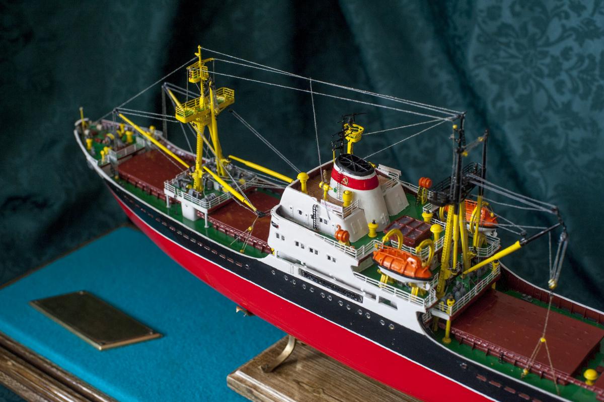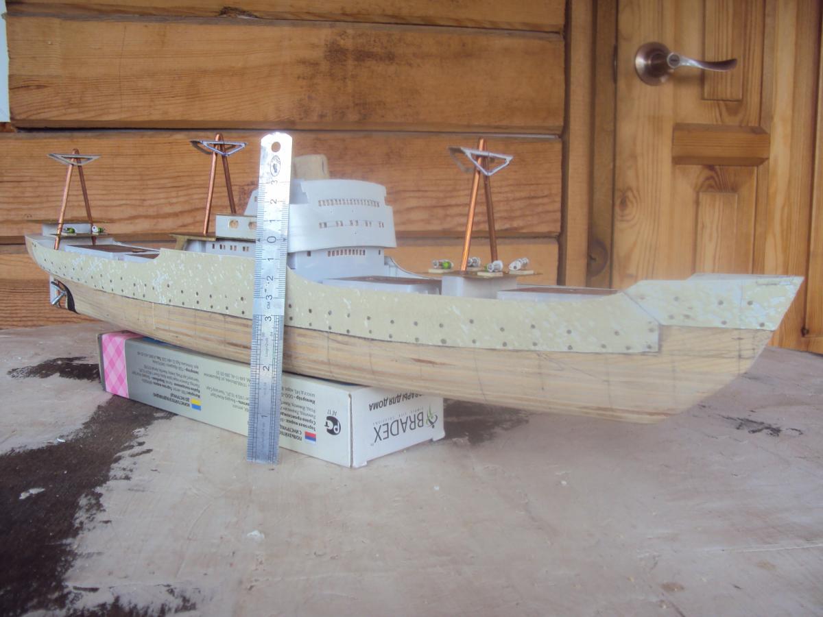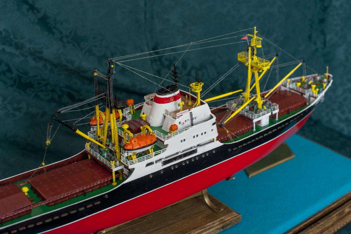 SpoilerПриветствую уважаемые Моделисты , и просто Зрители. Статья будет длинная. Все же два года упорной работы это для меня , можно сказать , определенный этап. Прототип с небанальной историей ,да и модель "шла " очень непросто и туго .Признаться, многое из запланированного откровенно - не получилось . Так что наболело знаете ли. Блог не стал вести , т.к. здешний народ больше по броне , и не уверен , что мои потуги были бы кому - то интересны, да и фотика достойного - не имею . В общем, кому не особо интересно - листните сразу вниз, к фоткам. Поехали .... Началось все с первой фотки : Любопытно знаете ли... определенно , достаточно современный кораблик , с ледокольными обводами, и явно гибнет в результате ледового зажима. Оказалось, это шестидесятые годы, Карское море , лесовоз "Витимлес" . Дальше больше... Лесовоз действительно ледового класса , польской постройки , серия кораблей "Беломорсклес" . Проект Б45 разработан ЦКБ Польской Народной Республики.Серия строилась с 1960 года на Гданьской судоверфи (г. Гданьск, Польша). По заказу СССР было построено около 70 судов данной серии.Тип судна: теплоход, лесовоз, ледового класса.Конструктивный тип: однопалубное, трёхостровное, со средним расположениемМО и жилой надстройки, ледокольным носом и крейсерской кормой.Назначение: перевозка лесоматериалов и зерна.Класс Регистра: УЛ*Р4/1С лесовоз.Район плавания: неограниченный.Дальность плавания: 6000 мильЭкипаж: 40 чел.Валовая вместимость: 4673 тДедвейт: 6036 т (лес), 5726 т (зерно)Длина: 123,88 мШирина: 16,70 мВысота борта: 8,40 мОсадка: 3,43/7,51 мМарка ГД: дизель "562VT2BE-140" Мощность ГД: 1 х 5450 л.с.Скорость: 16,0/17,2 уз.4 грузовых трюма общей вместимостью 7558 куб.м (киповая), 8444 куб.м (насыпью).8 легких грузовых стрел грузоподъемностью по 10,0 т2 тяжеловесные грузовые стрелы грузоподъемностью 15,0 т и 50,0 т. Т.е. достаточно серьезный кораблик. Потом оказалось, что суда этой серии частенько ходили в нашу Игарку, а я - сибиряк знаете -ли . И лесник к тому же. Короче - заусило . История этой серии довольно богата на события , и даже со своими трагическими страничками . Погиб еще как минимум один из этой серии : лесовоз " Брянсклес" . "Воркуту" удалось спасти, хотя и помяло её крепко. Карское море шуток не любит знаете -ли... Кроме того , кто то из "Беломорсклесов" засветился на Кубе во время Карибского кризиса ( на пиндосовской хронике определенно мелькали характерные надстройки ) . Гонять ледокол на Карибы, это по нашему, чтоб америкосовские эсминцы таранить ... Ну и как - то вот плавненько , сначала нашел какие - то пиратские чертежики кусочками, потом - посидел, собрал кусочки в кучу ну и пошло - поехало. Пока дело касалось только дерева- железа , все было ок, но вот как дошло до грунтовки - покраски... просто - амба. Специально под этот проект взял аэрограф, всякие красочки в маленьких баночках. Только толку - то. Если руки растут из... ну вы поняли. Короче баночки кончились, а результату - ноль целых, ноль десятых. А так как такую специфическую продукцию у нас найти не просто, да и дорого , красил - эмалями из баллончиков. Откровенно говоря результатом удовлетворен - не очень . А когда 5 раз умудрился уронить главную ( в различной степени готовности) надстройку , понял, что над этой серией явно какой то злой рок, и тонули они неспроста , а моя рукож-ть распространяется не только на боевую статистику. Тем не менее , я его победил ! Помогали все кто