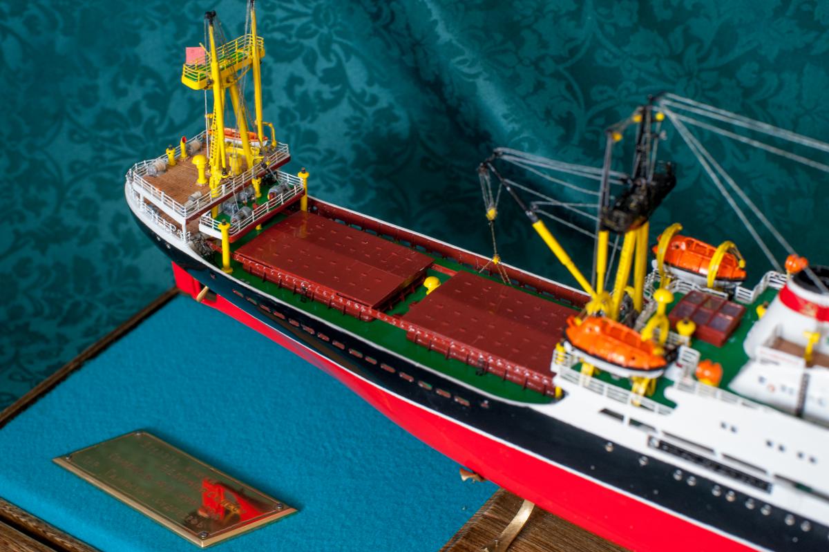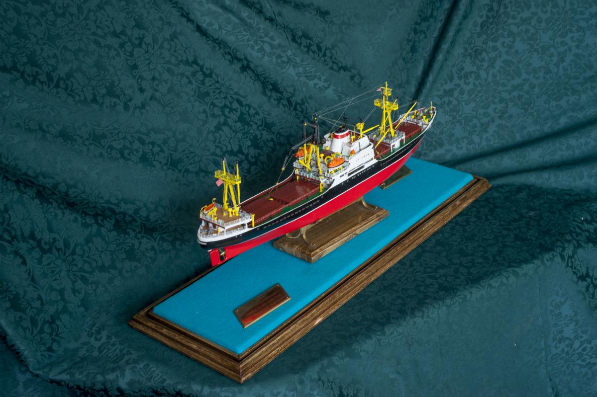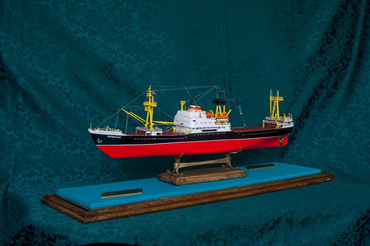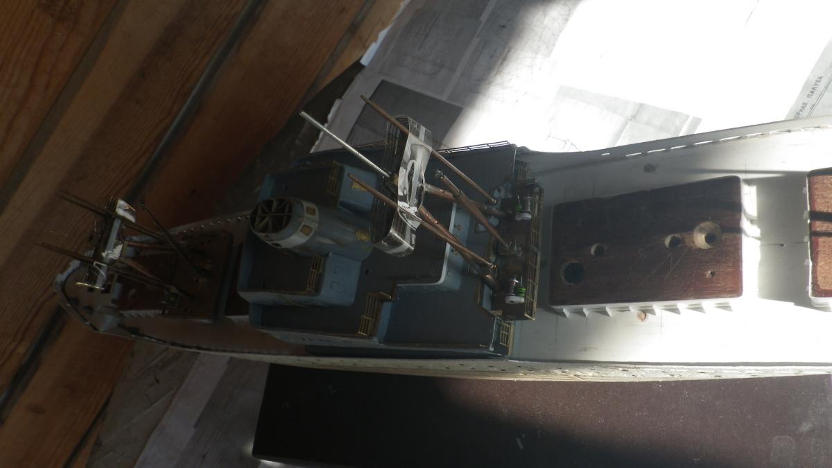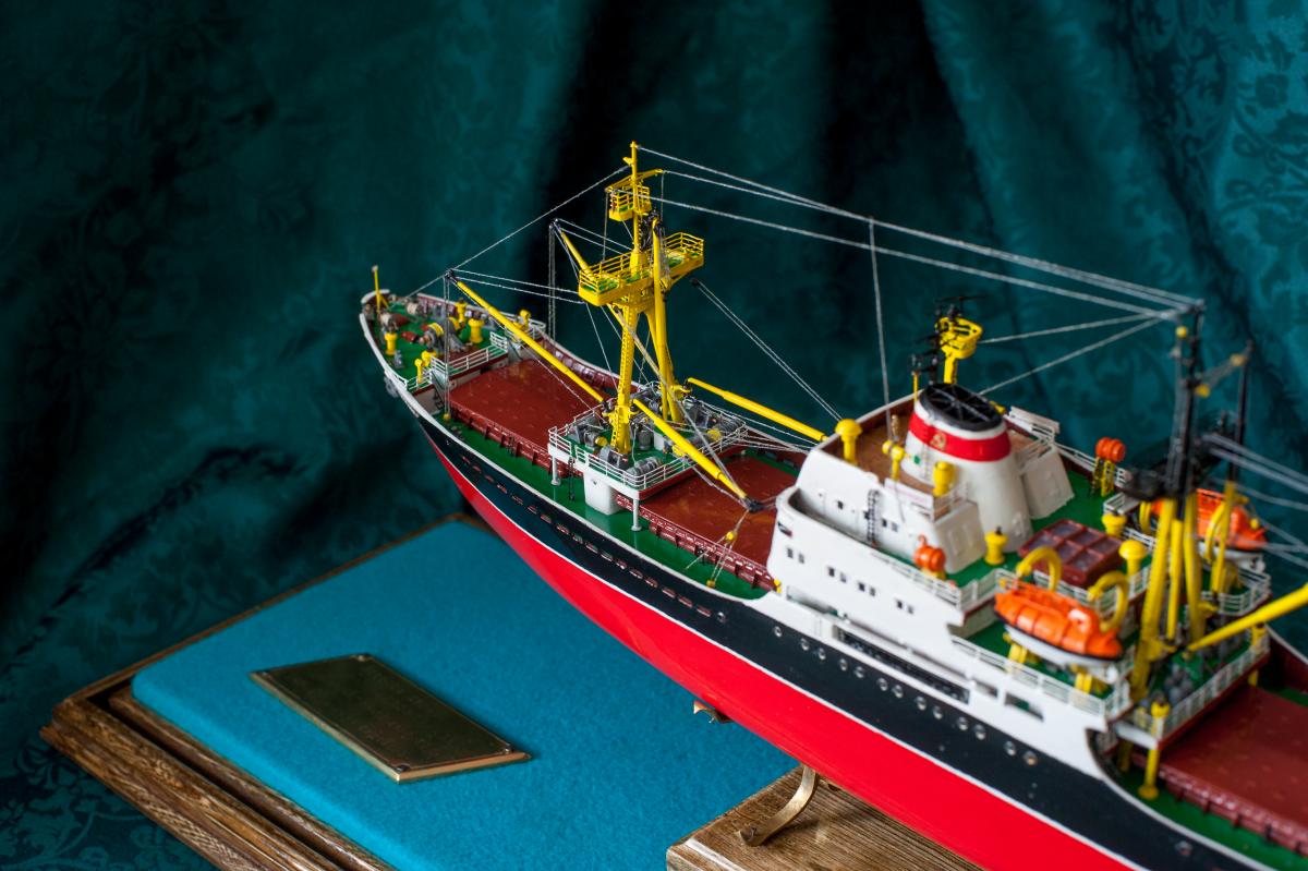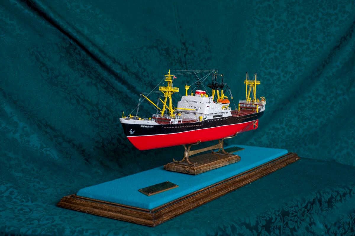 SpoilerПриветствую уважаемые Моделисты , и просто Зрители. Статья будет длинная. Все же два года упорной работы это для меня , можно сказать , определенный этап. Прототип с небанальной историей ,да и модель "шла " очень непросто и туго .Признаться, многое из запланированного откровенно - не получилось . Так что наболело знаете ли. Блог не стал вести , т.к. здешний народ больше по броне , и не уверен , что мои потуги были бы кому - то интересны, да и фотика достойного - не имею . В общем, кому не особо интересно - листните сразу вниз, к фоткам. Поехали .... Началось все с первой фотки : Любопытно знаете ли... определенно , достаточно современный кораблик , с ледокольными обводами, и явно гибнет в результате ледового зажима. Оказалось, это шестидесятые годы, Карское море , лесовоз "Витимлес" . Дальше больше... Лесовоз действительно ледового класса , польской постройки , серия кораблей "Беломорсклес" . Проект Б45 разработан ЦКБ Польской Народной Республики.Серия строилась с 1960 года на Гданьской судоверфи (г. Гданьск, Польша). По заказу СССР было построено около 70 судов данной серии.Тип судна: теплоход, лесовоз, ледового класса.Конструктивный тип: однопалубное, трёхостровное, со средним расположениемМО и жилой надстройки, ледокольным носом и крейсерской кормой.Назначение: перевозка лесоматериалов и зерна.Класс Регистра: УЛ*Р4/1С лесовоз.Район плавания: неограниченный.Дальность плавания: 6000 мильЭкипаж: 40 чел.Валовая вместимость: 4673 тДедвейт: 6036 т (лес), 5726 т (зерно)Длина: 123,88 мШирина: 16,70 мВысота борта: 8,40 мОсадка: 3,43/7,51 мМарка ГД: дизель "562VT2BE-140" Мощность ГД: 1 х 5450 л.с.Скорость: 16,0/17,2 уз.4 грузовых трюма общей вместимостью 7558 куб.м (киповая), 8444 куб.м (насыпью).8 легких грузовых стрел грузоподъемностью по 10,0 т2 тяжеловесные грузовые стрелы грузоподъемностью 15,0 т и 50,0 т. Т.е. достаточно серьезный кораблик. Потом оказалось, что суда этой серии частенько ходили в нашу Игарку, а я - сибиряк знаете -ли . И лесник к тому же. Короче - заусило . История этой серии довольно богата на события , и даже со своими трагическими страничками . Погиб еще как минимум один из этой серии : лесовоз " Брянсклес" . "Воркуту" удалось спасти, хотя и помяло её крепко. Карское море шуток не любит знаете -ли... Кроме того , кто то из "Беломорсклесов" засветился на Кубе во время Карибского кризиса ( на пиндосовской хронике определенно мелькали характерные надстройки ) . Гонять ледокол на Карибы, это по нашему, чтоб америкосовские эсминцы таранить ... Ну и как - то вот плавненько , сначала нашел какие - то пиратские чертежики кусочками, потом - посидел, собрал кусочки в кучу ну и пошло - поехало. Пока дело касалось только дерева- железа , все было ок, но вот как дошло до грунтовки - покраски... просто - амба. Специально под этот проект взял аэрограф, всякие красочки в маленьких баночках. Только толку - то. Если руки растут из... ну вы поняли. Короче баночки кончились, а результату - ноль целых, ноль десятых. А так как такую специфическую продукцию у нас найти не просто, да и дорого , красил - эмалями из баллончиков. Откровенно говоря результатом удовлетворен - не очень . А когда 5 раз умудрился уронить главную ( в различной степени готовности) надстройку , понял, что над этой серией явно какой то злой рок, и тонули они неспроста , а моя рукож-ть распространяется не только на боевую статистику. Тем не менее , я его победил ! Помогали все кто
