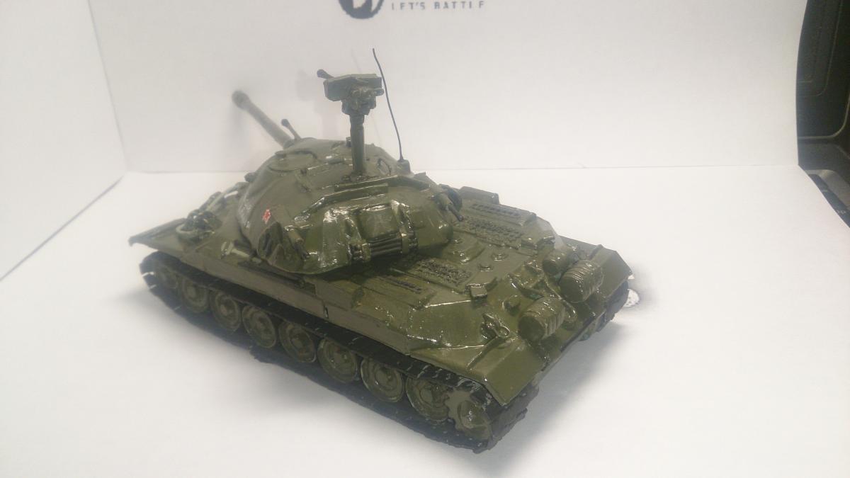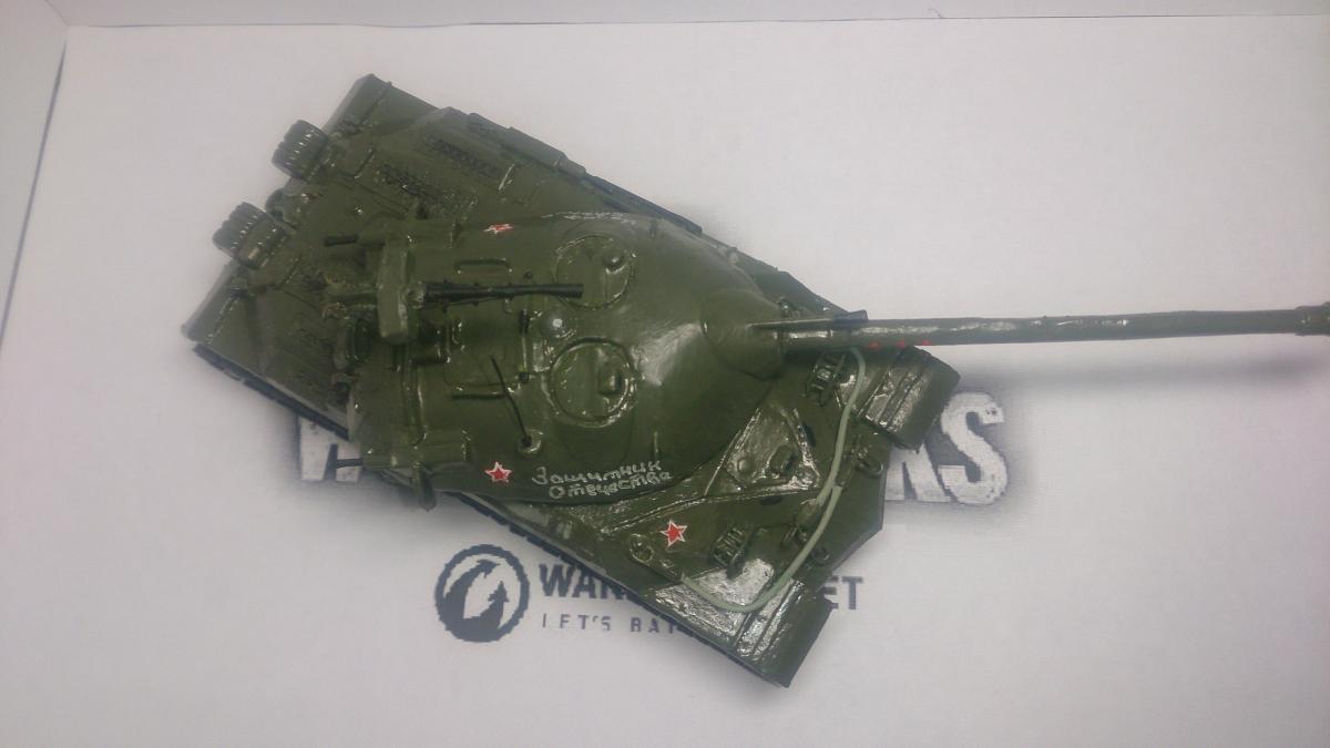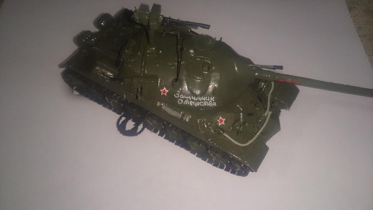 Модель Ис-7 из бумаги/картона, некоторые элементы выполнялись из металической проволоки и пластика в ручную, грунт тамея, краска акрил тамея. Модель выполнялась в тематике выставочной после реставрации