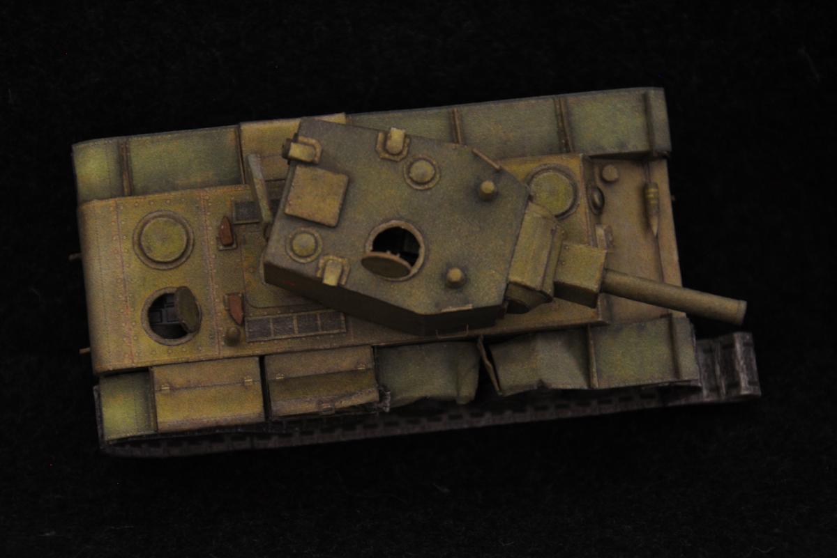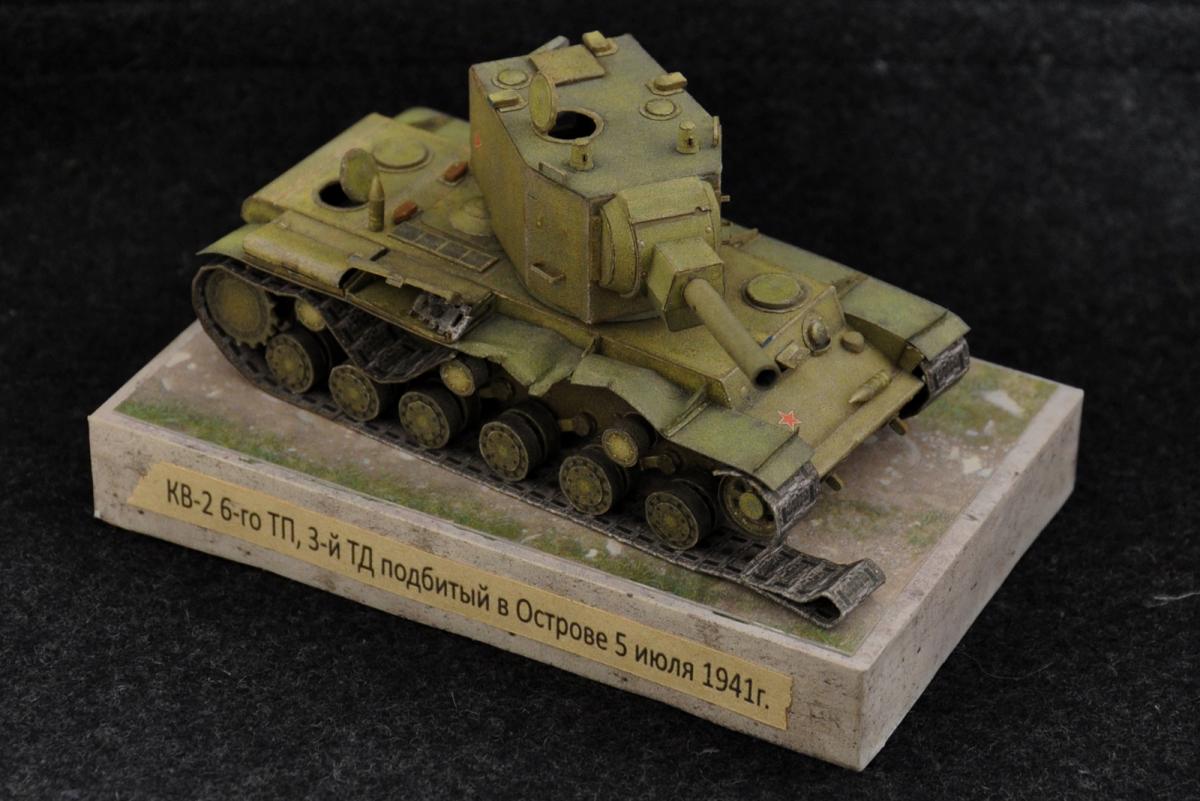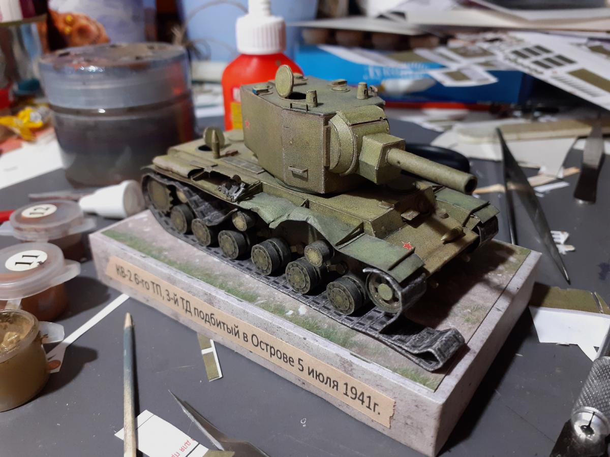 Доброго всем дня! Однажды, совершенно случайно наткнулся на статью про бои за Остров и загорелся идеей собрать историческую модель танка КВ-2. Единственное, что меня останавливало - это качество и деталировка брошюры КВ-2. Но пришло ее время и я решил, что смогу это сделать. Два месяца не давала она мне покоя и вот, представляю Вашему вниманию модель танка КВ-2 6-ого танкового полка 3-ей танковой дивизии подбитого во время боев за Остров 5 июля 1941г.: http://cdn-frm-eu.wargaming.net/wot/ru/uploads/monthly_01_2020/post-34977863-0-15902800-1579201493_thumb.jpg http://cdn-frm-eu.wargaming.net/wot/ru/uploads/monthly_01_2020/post-34977863-0-56540400-1579201507_thumb.jpg http://cdn-frm-eu.wargaming.net/wot/ru/uploads/monthly_01_2020/post-34977863-0-62608700-1579201525_thumb.jpg http://cdn-frm-eu.wargaming.net/wot/ru/uploads/monthly_01_2020/post-34977863-0-70081600-1579201538_thumb.jpg http://cdn-frm-eu.wargaming.net/wot/ru/uploads/monthly_01_2020/post-34977863-0-09721000-1579201552_thumb.jpg http://cdn-frm-eu.wargaming.net/wot/ru/uploads/monthly_01_2020/post-34977863-0-45729100-1579201573_thumb.jpg http://cdn-frm-eu.wargaming.net/wot/ru/uploads/monthly_01_2020/post-34977863-0-49376100-1579201586_thumb.jpg http://cdn-frm-eu.wargaming.net/wot/ru/uploads/monthly_01_2020/post-34977863-0-78403000-1579201600_thumb.jpg http://cdn-frm-eu.wargaming.net/wot/ru/uploads/monthly_01_2020/post-34977863-0-15466600-1579201617_thumb.jpg http://cdn-frm-eu.wargaming.net/wot/ru/uploads/monthly_01_2020/post-34977863-0-48355500-1579201641_thumb.jpg http://cdn-frm-eu.wargaming.net/wot/ru/uploads/monthly_01_2020/post-34977863-0-67317100-1579201657_thumb.jpg Крупные планы: http://cdn-frm-eu.wargaming.net/wot/ru/uploads/monthly_01_2020/post-34977863-0-66306900-1579201686_thumb.jpg http://cdn-frm-eu.wargaming.net/wot/ru/uploads/monthly_01_2020/post-34977863-0-49273700-1579201704_thumb.jpg http://cdn-frm-eu.wargaming.net/wot/ru/uploads/monthly_01_2020/post-34977863-0-22265900-1579201717_thumb.jpg http://cdn-frm-eu.wargaming.net/wot/ru/uploads/monthly_01_2020/post-34977863-0-21010200-1579201729_thumb.jpg Для оценки масштаба: http://cdn-frm-eu.wargaming.net/wot/ru/uploads/monthly_01_2020/post-34977863-0-80739800-1579201748_thumb.jpg http://cdn-frm-eu.wargaming.net/wot/ru/uploads/monthly_01_2020/post-34977863-0-58200600-1579201798_thumb.jpg Немного процесса: http://cdn-frm-eu.wargaming.net/wot/ru/uploads/monthly_01_2020/post-34977863-0-75730500-1579201822_thumb.jpg http://cdn-frm-eu.wargaming.net/wot/ru/uploads/monthly_01_2020/post-34977863-0-28711400-1579201837_thumb.jpg В процессе сборки пришлось попотеть с ходовой, разделяя каждое колесико. Так как люки должны быть открыты дополнительно собрал редуктор и ответную часть орудия в башне. Снаряды взял из брошюры с американской артой. Поручни металлические не вписывались в общую картину, поэтому пришлось изготовлять их из бумаги. Отверстия от пробитий снарядов сделал циркулем. Орудие установил историческое (в брошюре поменяны местами были) Спасибо за внимание. Продолжение следует) PS. В процессе сборки и фотосъемок ни один котик и танчик не пострадал)