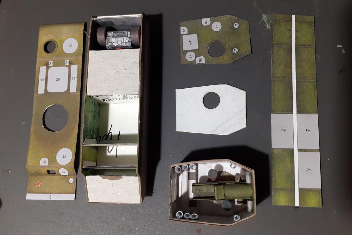 Доброго всем дня. Позвольте представить тестовую версию модели советского легкого танка Т-60, из журнала "Сделай сам" N2 издательства Веселка, отреставрированного KubinkaMan и доступного для общего доступа. SpoilerСсылка: http://kubinkaman.blogspot.com/2018/09/veselkatanks02.html?m=1 Модель собрана без всяких дополнений - 100% бронекоробочка http://cdn-frm-eu.wargaming.net/wot/ru/uploads/monthly_09_2018/post-34977863-0-89714500-1536665891_thumb.jpg http://cdn-frm-eu.wargaming.net/wot/ru/uploads/monthly_09_2018/post-34977863-0-34338700-1536667349_thumb.jpg http://cdn-frm-eu.wargaming.net/wot/ru/uploads/monthly_09_2018/post-34977863-0-29989900-1536667728_thumb.jpg http://cdn-frm-eu.wargaming.net/wot/ru/uploads/monthly_09_2018/post-34977863-0-01818400-1536667786_thumb.jpg http://cdn-frm-eu.wargaming.net/wot/ru/uploads/monthly_09_2018/post-34977863-0-36365500-1536667820_thumb.jpg http://cdn-frm-eu.wargaming.net/wot/ru/uploads/monthly_09_2018/post-34977863-0-91773900-1536667859_thumb.jpg http://cdn-frm-eu.wargaming.net/wot/ru/uploads/monthly_09_2018/post-34977863-0-98216600-1536667937_thumb.jpg http://cdn-frm-eu.wargaming.net/wot/ru/uploads/monthly_09_2018/post-34977863-0-32149700-1536667967_thumb.jpg http://cdn-frm-eu.wargaming.net/wot/ru/uploads/monthly_09_2018/post-34977863-0-71368300-1536668001_thumb.jpg Изначально брошюра распечатывалась по 2 листа на одном листе А4. Для сравнения масштабов: http://cdn-frm-eu.wargaming.net/wot/ru/uploads/monthly_09_2018/post-34977863-0-67017900-1536668111_thumb.jpg Хронология сборки: 1. Основные детали вырезаны, клапаны и торцы подкрашены http://cdn-frm-eu.wargaming.net/wot/ru/uploads/monthly_09_2018/post-34977863-0-79237500-1536668224_thumb.jpg 2. Подготовлен корпус. В брошуре ребер жесткости не предусматривалось. В процессе сборки для удобства были перемещены клапаны. http://cdn-frm-eu.wargaming.net/wot/ru/uploads/monthly_09_2018/post-34977863-0-73775700-1536668272_thumb.jpg 3. Аккуратно, тихо мматерясь, собрал ванночки ходовой. Особую трудность вызвал переход от надгусеничной полки к гусеницам. Тут для удобства тоже клапан был перемещен http://cdn-frm-eu.wargaming.net/wot/ru/uploads/monthly_09_2018/post-34977863-0-35396800-1536668316_thumb.jpg 4. Собираем "ромашку" башни. И башенку водителя. Лепестки у башни пришлось отрезать, иначе не вставала. Выяснилось, что при сборке главное соблюдать ориентацию сторон, а то может не вмтать на место. Башенка водителя получилась не правильной формы - видно наиосновных фото. http://cdn-frm-eu.wargaming.net/wot/ru/uploads/monthly_09_2018/post-34977863-0-63749700-1536668352_thumb.jpg 5. Собираем ящики. Они оказались немного длиннее посадочных мест http://cdn-frm-eu.wargaming.net/wot/ru/uploads/monthly_09_2018/post-34977863-0-15817100-1536668398_thumb.jpg 6. Собираем орудие и воздухозаборник. Ствол основного орудия и пулемета лучше крутить из офисной бумаги. При тестовой сборке использовал 1/5 длины предлагаемой детали. Дополнительно пришлось сделать отверстие для ствола ( не предлагалось в первоисточнике). У маски орудия срезал лепестки - мешали аккуратной стыковке. Отверстия в маске растачивал натфелем. http://cdn-frm-eu.wargaming.net/wot/ru/uploads/monthly_09_2018/post-34977863-0-67874000-1536668682_thumb.jpg 7. В днище для удоства монтажа башни предлагается технологический люк. После установки ее люк "заваривается" ПВА. http://cdn-frm-eu.wargaming.net/wot/ru/uploads/monthly_09_2018/post-34977863-0-99909700-1536668739_thumb.jpg Спасибо за внимание. Надеюсь было интересно и кто-то заинтересуется этими моделями