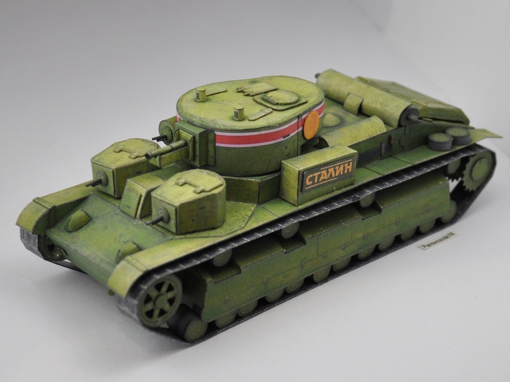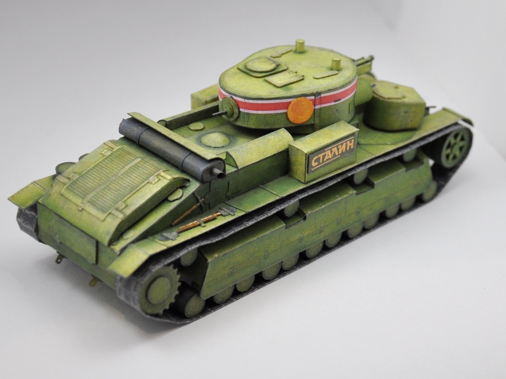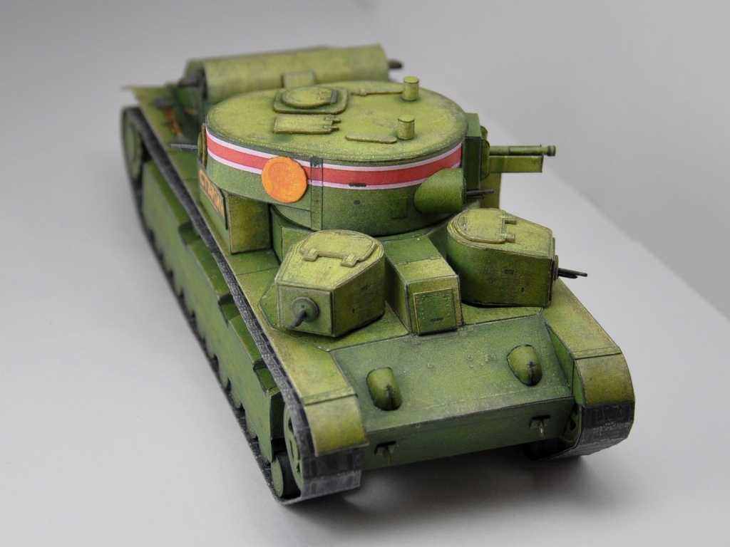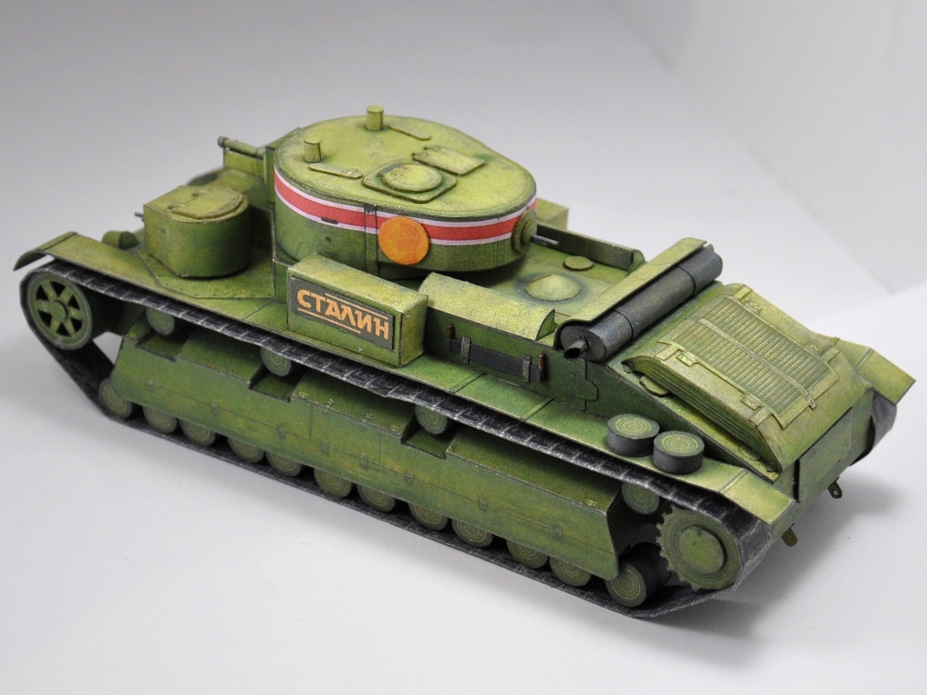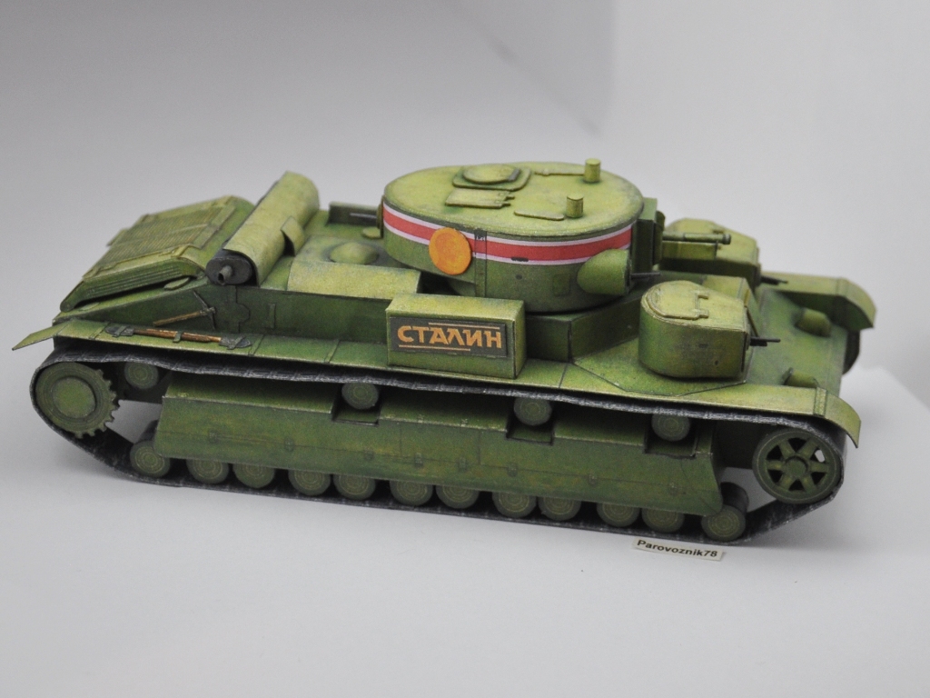 Добрый всем день. Представляю вашему вниманию модель среднего танка Т-28 "Сталин", образца 1936г., подготовленного для парада на Красной площади 7 ноября. Разработка модели АК-71. Добавлены объемные элементы корпуса,крышки вентиляторного отсека и прорезаны передние катки. Все пулеметы, лопаты и кирка выполнены из бумаги. На модель ушло 3 комплекта выкроек. Башенный пулемет не смог победить, собрав и примерив его на место, снял и выкинул. Антенну и трос не сделал, так как муза еще не пришла (в развертках их не было). http://cdn-frm-eu.wargaming.net/wot/ru/uploads/monthly_10_2016/post-34977863-0-35700300-1477650849_thumb.jpghttp://cdn-frm-eu.wargaming.net/wot/ru/uploads/monthly_10_2016/post-34977863-0-21043300-1477650862_thumb.jpghttp://cdn-frm-eu.wargaming.net/wot/ru/uploads/monthly_10_2016/post-34977863-0-90133500-1477650897_thumb.jpghttp://cdn-frm-eu.wargaming.net/wot/ru/uploads/monthly_10_2016/post-34977863-0-84042000-1477650883_thumb.jpghttp://cdn-frm-eu.wargaming.net/wot/ru/uploads/monthly_10_2016/post-34977863-0-65397900-1477650923_thumb.jpghttp://cdn-frm-eu.wargaming.net/wot/ru/uploads/monthly_10_2016/post-34977863-0-95080200-1477651007_thumb.jpg Немного крупным планом: http://cdn-frm-eu.wargaming.net/wot/ru/uploads/monthly_10_2016/post-34977863-0-58268700-1477651070_thumb.jpghttp://cdn-frm-eu.wargaming.net/wot/ru/uploads/monthly_10_2016/post-34977863-0-97506100-1477651115_thumb.jpg И еще со сборочного стола: http://cdn-frm-eu.wargaming.net/wot/ru/uploads/monthly_10_2016/post-34977863-0-97472700-1477651147_thumb.jpghttp://cdn-frm-eu.wargaming.net/wot/ru/uploads/monthly_10_2016/post-34977863-0-49519100-1477651163_thumb.jpg Спасибо за внимание. Продолжение следует... А вот еще забыл, перед парадом: http://cdn-frm-eu.wargaming.net/wot/ru/uploads/monthly_10_2016/post-34977863-0-64526800-1477651592_thumb.jpg