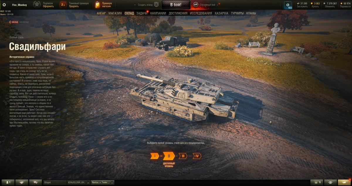 Добрый день, уважаемые разработчики! Я довольно давно играю в эту игру, но в событии сборочный цех участвовал впервые. Вдохновившись этим событием я предлагаю сделать что-нибудь подобное, но только со стилем для танка. Вы делаете очень красивые 3D стили для различных танков, но хотелось бы немного самому это дело разнообразить. Представляю Вашему вниманию набросок плана ивента: Этап 1 - база стиля ( цвет, площадь покрытия, стиль ) Часть 1. Выбор цвета или камуфляжа Часть 2. Выбор площади нанесения Часть 3. Стиль нанесения ( полное покрытие, рваный, со ржавчиной ) Этап 2 - нанесение крупных элементов на борт ( пулеметы, пушки, осветительные фонари, противокумулятивные сетки и тд) Часть 1. Выбор кастомизации передней части танка Часть 2. Выбор кастомизации для корпуса Часть 3. Выбор кастомизации для башни ( если есть ) Этап 3. Финальные штрихи ( нанесение надписей, установка мелких элементов на танк, динамичные элементы) Часть 1. Установка мелких элементов на корпусе танка ( вещь мешки, оружие, каски, бревно запасные элементы траков ) Часть 2. Нанесение надписей или логотипов на выбор. Часть 3. Установка динамичных элементов ( антенны, флаги, маленькое ведерко на задней части танка )) Возможность выбрать нужные элементы, возможность отказаться от нанесения чего либо. Стиль для одного выбранного танка.