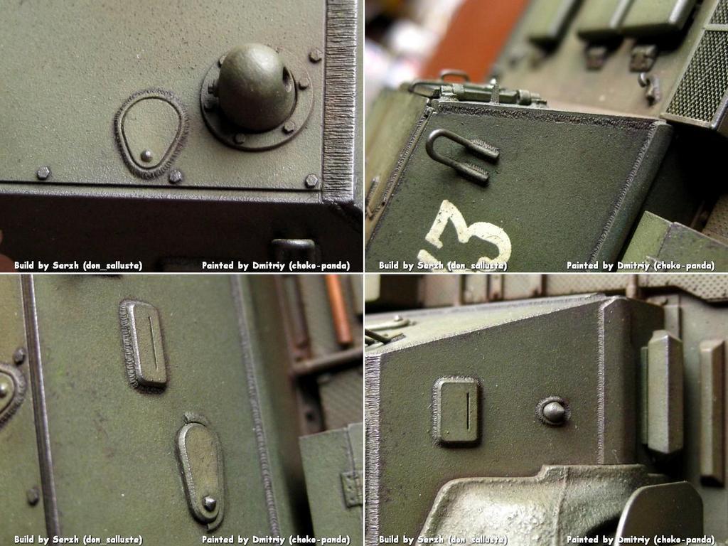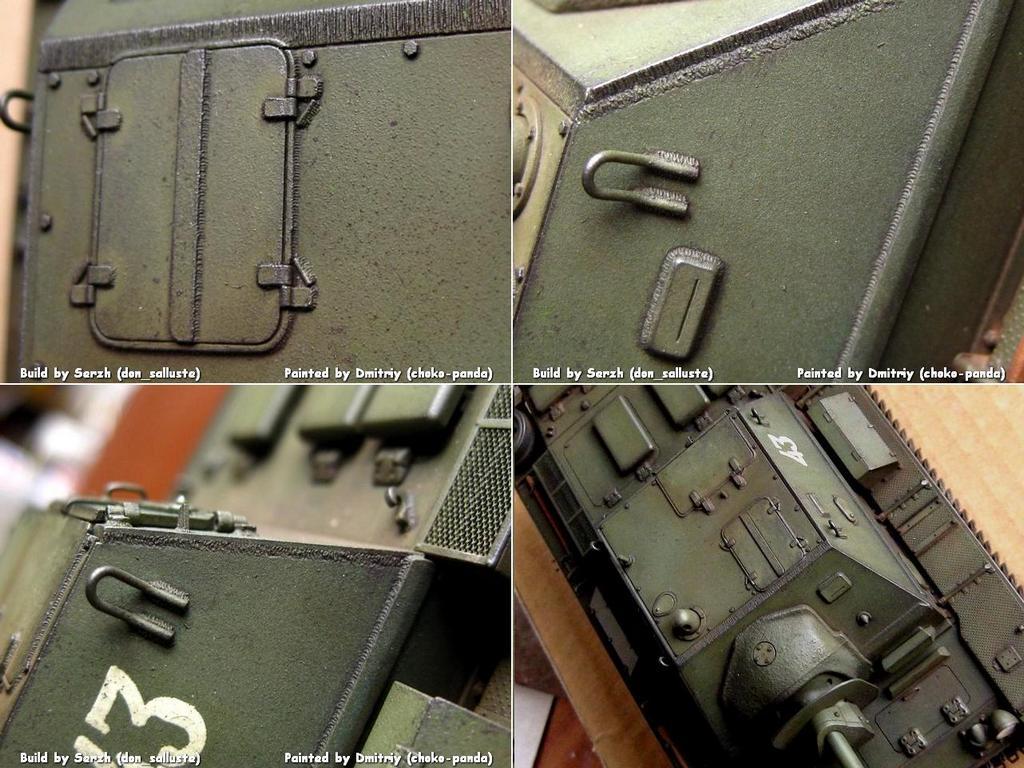 Всем привет! Сопсна вот.... Всё что "выше пояса" - самодел, после клонированный в смоле. Модельный пластик от старых моделей, пластик от СД дисков, пластик Тамии... Много разного пластика... Маску слепил на пластиковом же каркасе из двухкомпонентки Тамии. Фактура литья - шпатлёвка с содой. Сварные швы - двухкомпонентка, снова Тамия. Болты, гайки - Мастерклуб. Корпус - Драгон 9018, имперская серия, тот что вместе с полками отлит. Пришлось попилить. Ствол РБ, надмоторные сетки Мир Моделей, фара ЕЛФ. В посл. момент, поставил пластиковые гусеницы из набора вместо металла. Вроде как и всё... Модель красил не я, а Дмитрий Зых (ака choko-panda), за что ему ПРЕВЕЛИКОЕ СПАСИБО!!! http://cdn-frm-eu.wargaming.net/wot/ru/uploads/monthly_08_2015/post-57248181-0-91149900-1439304607_thumb.jpg_http://cdn-frm-eu.wargaming.net/wot/ru/uploads/monthly_08_2015/post-57248181-0-01295300-1439379111_thumb.jpg_http://cdn-frm-eu.wargaming.net/wot/ru/uploads/monthly_08_2015/post-57248181-0-87191400-1439379113_thumb.jpg_http://cdn-frm-eu.wargaming.net/wot/ru/uploads/monthly_08_2015/post-57248181-0-37754900-1439304598_thumb.jpg_http://cdn-frm-eu.wargaming.net/wot/ru/uploads/monthly_08_2015/post-57248181-0-27087900-1439304600_thumb.jpg_http://cdn-frm-eu.wargaming.net/wot/ru/uploads/monthly_08_2015/post-57248181-0-75236700-1439379117_thumb.jpg http://cdn-frm-eu.wargaming.net/wot/ru/uploads/monthly_08_2015/post-57248181-0-17094200-1439304596_thumb.jpg_http://cdn-frm-eu.wargaming.net/wot/ru/uploads/monthly_08_2015/post-57248181-0-30632100-1439379115_thumb.jpg_http://cdn-frm-eu.wargaming.net/wot/ru/uploads/monthly_08_2015/post-57248181-0-65926500-1439304601_thumb.jpg_http://cdn-frm-eu.wargaming.net/wot/ru/uploads/monthly_08_2015/post-57248181-0-94630100-1439304602_thumb.jpg_http://cdn-frm-eu.wargaming.net/wot/ru/uploads/monthly_08_2015/post-57248181-0-41477000-1439304604_thumb.jpg_http://cdn-frm-eu.wargaming.net/wot/ru/uploads/monthly_08_2015/post-57248181-0-10348500-1439304606_thumb.jpg