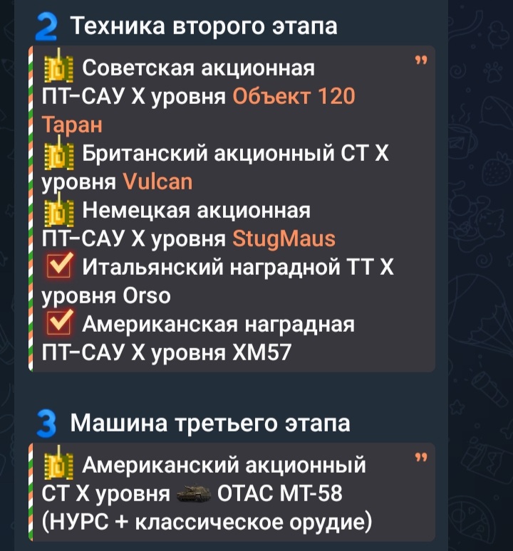 3 сосны и я запутался. Есть акционные танки. Есть наградные.С этими вроде как бы проще.260,279,экскалибур,футур и прочее...вроде так.Из плюшек только пересадка экипажа без штрафа. А чем ценны акционные? Такие же танки,ничем от наградных не отличаются. https://forum-mt-prod.lesta.ru/monthly_12_2025/post-18276192-0-21033300-1764854211_thumb.jpg Орсо и пт были в КБ.Они наградные? Остальные акционные...типа акция только на нг?Не слишком ли много сложностей в игре,где 90% игроков не читают новости?
