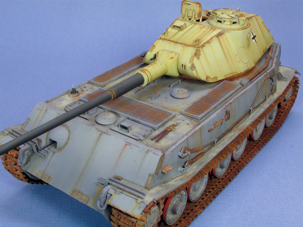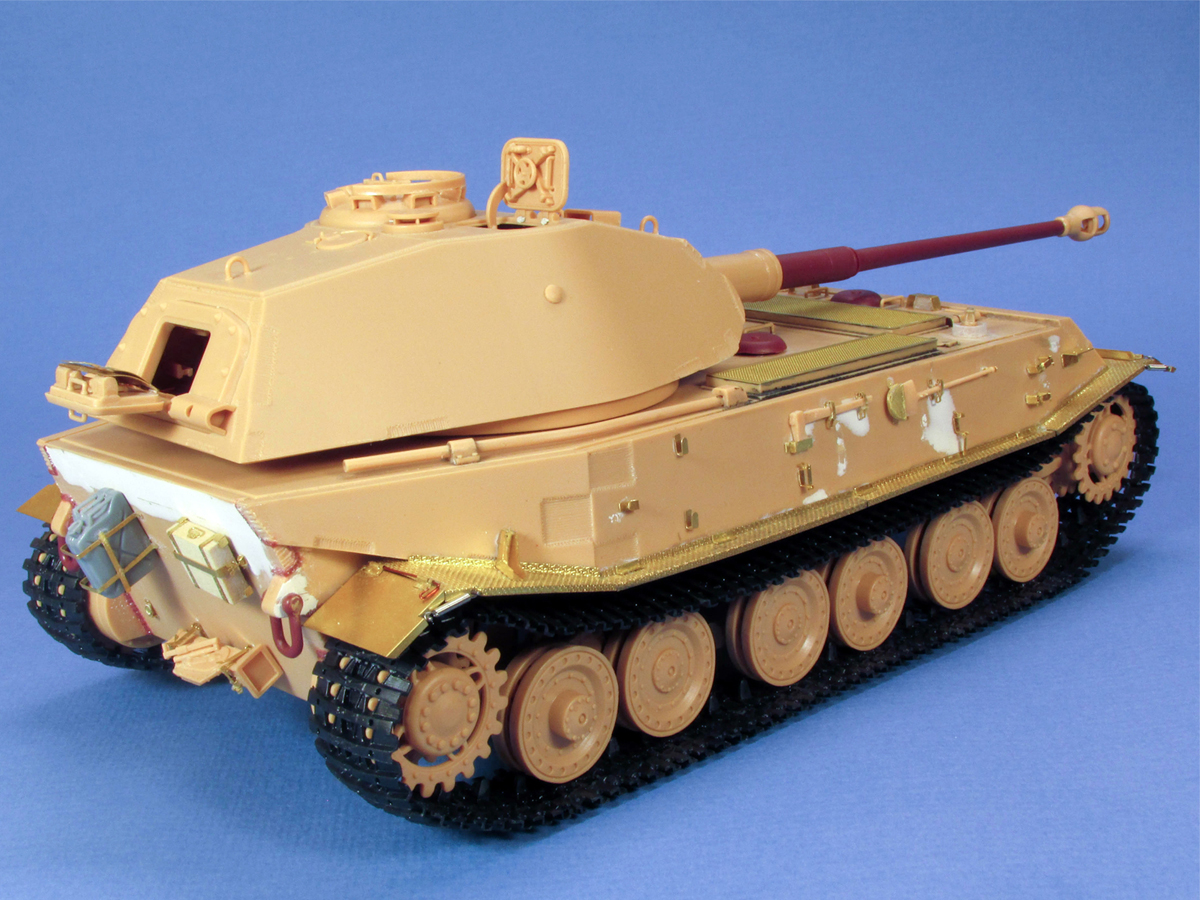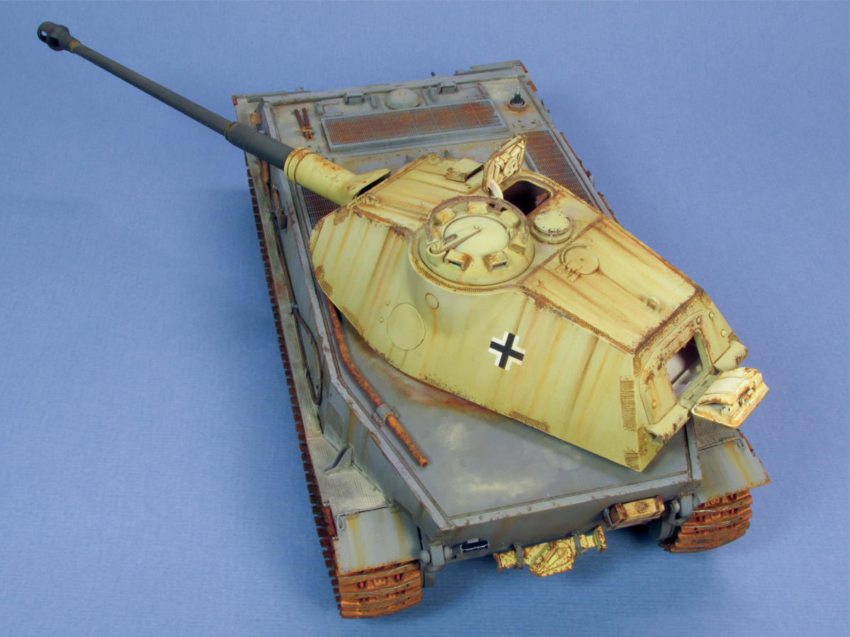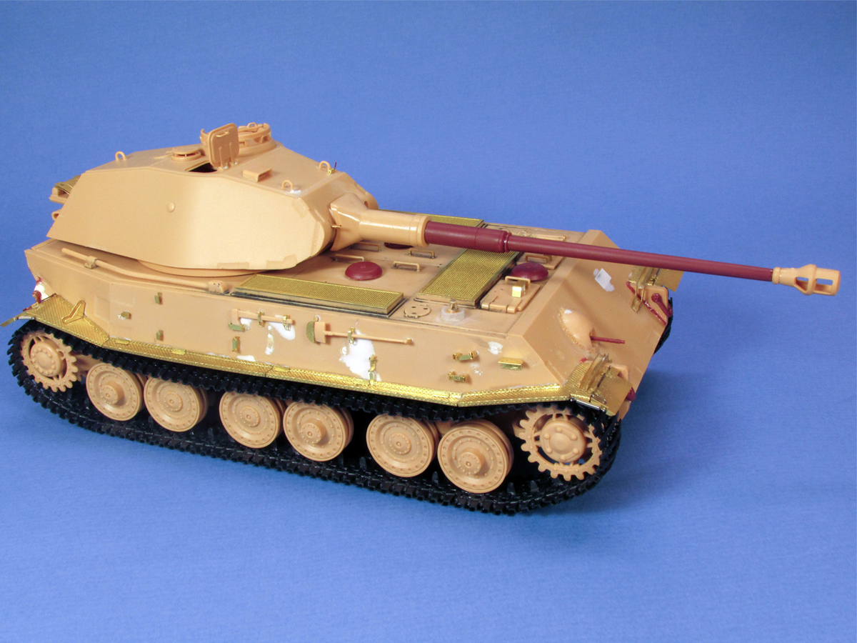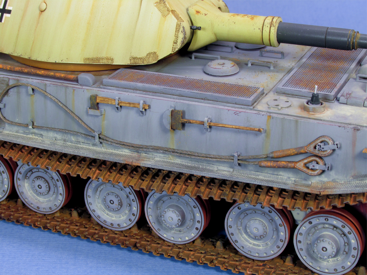 Доброго дня. После долгого перерыва, позвольте представить свою крайнюю работу. Заранее прошу прощения за не самые качественные фото, моя внутренняя жаба всё не как не хочет раскошелиться на зеркалку. Сперва о наборе. Просто не кому не рекомендую. Лично я взял модель по не знаю и не опытности, сейчас бы даже за пол цены её не стал брать. Если так охота Тапка то лучше поищите Драгон. Логика производителя лично мне вообще не понятно. Они дают полный интерьер башни и ужаснейшую деталировку корпуса. Корпус и деталировка на столько упрощены, что изкоробочный вариант подойдёт только для модели показанной на стадии сборки, когда не установлено всё навесное. Хорошо по доступной цене удалось взять фототравление. Так же дополнил модель сварными швами, вентиляционными колпаками и орудием от Менговского КТ. По окрасу. Хотелось изобразить машину которая несколько лет простояла у заводской стенки. Т.к. машина не была принята на вооружение её как Тигр P не отправили на фронт а просто оставили на территории завода. Окрас сделал двухцветный т.к. башня и корпус собирались на разных заводах и корпус ещё в старом стиле окрасили в серый а после полной сборки перекрашивать не стали. Красил Тамией и мастер акрил. Химия от АК, модель лаб. и Вайлдер. В будущем есть планы прикупить бокс нужного размера и сделать, что то наподобие виньетки. Модель без фар, т.к. те, что в наборе вообще не годятся а отдавать 400р. за смолу дороговата да и найти её не так уж и просто. Возможно, когда прикуплю обвес на Т-4 от Тамии то поставлю. Материалы: 82445 HobbyBoss 1/35 German VK4502 (P) Voyager Model PE35427 WWII German KINGTIGER VK.45.02(P)