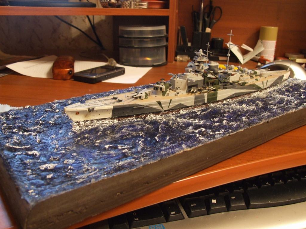 Вот моя единственная работа на морскую тематику. "Тирпиц" пластмасса фирмы Revell. Делал это аж в 2009 годуhttp://cdn-frm-eu.wargaming.net/4.3/style_emoticons/wot/Smile_Default.gif К сожелению работы давно нет, кто-то ее забрал надеюсь, а не выкинулhttp://cdn-frm-eu.wargaming.net/4.3/style_emoticons/wot/Smile_Default.gif Масштаб 1 к 570. Красилось все краской Тамия и кисточкой. Основание: Алебастр, акварель, прозрачный силикон. Сори что такие фото. не судите строго на фонhttp://cdn-frm-eu.wargaming.net/4.3/style_emoticons/wot/Smile_Default.gif