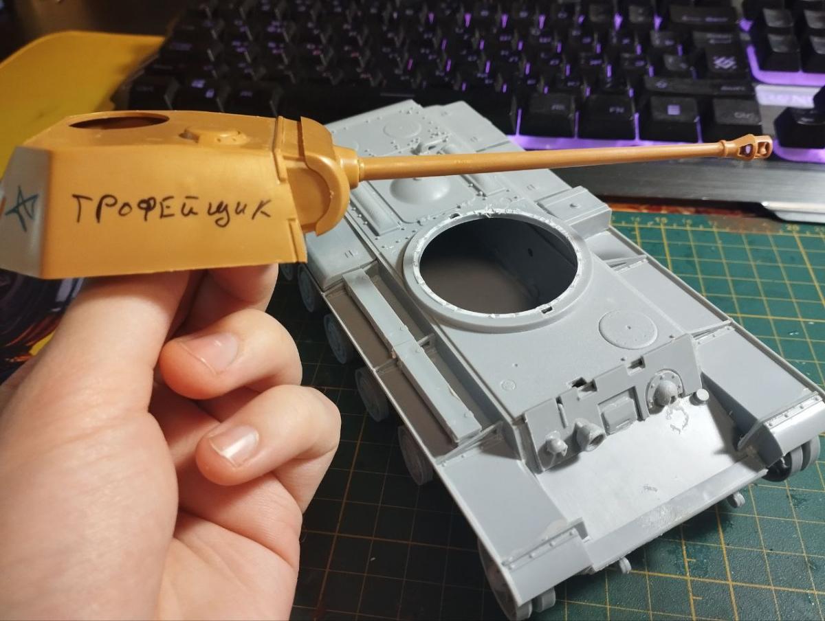 Это модель будет сделана из нескольких наборов. Я решил совместить корпус от кв 2 и башню от пантеры. На авито я купил эти детали по запчастям, люди хотели их выкинуть, но я купил их разобранными и без каких то деталей. Буду собирать из тех, что у меня есть и посмотрим что выйдет по итогу.