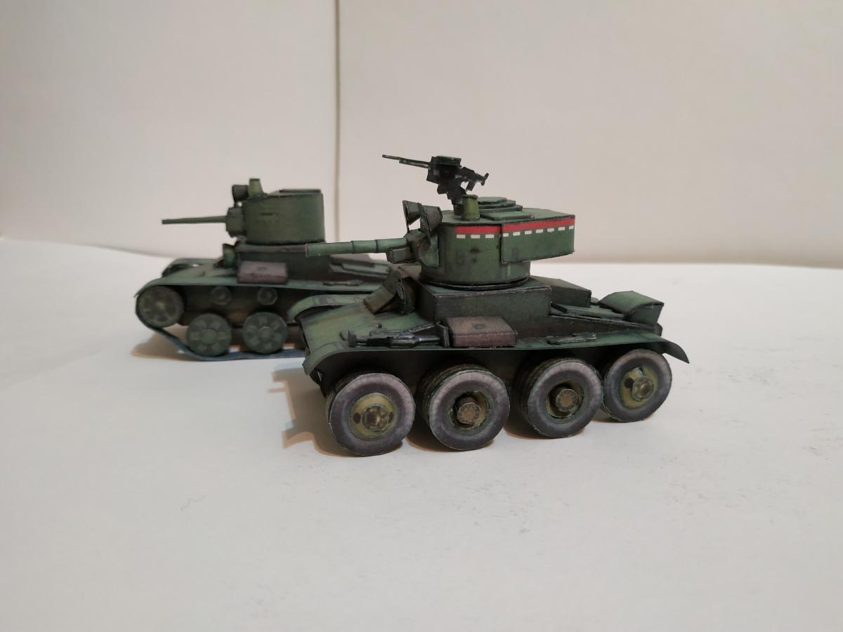 Вечер добрый! БигМеку не сиделось ровно, но было скучно отсюда вот такие "измышления" вдохновленные сайтом альтернативной истории. БТ-26 ( за основу взят Т-26 от Robototechnik, башня от БТ-2 от его аэросаней, катки от БТ-2 WoPT, гусеницы от перекраса Т-26 ль Ак71). Ссылка ставшая источником вдохновения (http://alternathistory.com/beshenyj-t-26/) http://cdn-frm-eu.wargaming.net/wot/ru/uploads/monthly_10_2019/post-1087-0-91099800-1570815811_thumb.jpg http://cdn-frm-eu.wargaming.net/wot/ru/uploads/monthly_10_2019/post-1087-0-73849100-1570815928_thumb.jpg http://cdn-frm-eu.wargaming.net/wot/ru/uploads/monthly_10_2019/post-1087-0-82567900-1570815940_thumb.jpg http://cdn-frm-eu.wargaming.net/wot/ru/uploads/monthly_10_2019/post-1087-0-90260800-1570815968_thumb.jpg http://cdn-frm-eu.wargaming.net/wot/ru/uploads/monthly_10_2019/post-1087-0-51270700-1570815991_thumb.jpg http://cdn-frm-eu.wargaming.net/wot/ru/uploads/monthly_10_2019/post-1087-0-67585500-1570816007_thumb.jpg КТ-26 (за основу так же взят Т-26 от Robototechnik, колеса от его же грузовиков, домкрат от немецкого танка от WoPT). Вот только куда приладить запаску так и не придумал Ссылка на источник вдохновения (http://alternathistory.com/kolyosnyj-tank-ba-26/) http://cdn-frm-eu.wargaming.net/wot/ru/uploads/monthly_10_2019/post-1087-0-05584600-1570816148_thumb.jpg http://cdn-frm-eu.wargaming.net/wot/ru/uploads/monthly_10_2019/post-1087-0-30557700-1570816178_thumb.jpg http://cdn-frm-eu.wargaming.net/wot/ru/uploads/monthly_10_2019/post-1087-0-75876600-1570816193_thumb.jpg http://cdn-frm-eu.wargaming.net/wot/ru/uploads/monthly_10_2019/post-1087-0-05007300-1570816206_thumb.jpg http://cdn-frm-eu.wargaming.net/wot/ru/uploads/monthly_10_2019/post-1087-0-80703200-1570816219_thumb.jpg http://cdn-frm-eu.wargaming.net/wot/ru/uploads/monthly_10_2019/post-1087-0-95572500-1570816234_thumb.jpg Ну и несколько групповых фото http://cdn-frm-eu.wargaming.net/wot/ru/uploads/monthly_10_2019/post-1087-0-46860000-1570816274_thumb.jpg http://cdn-frm-eu.wargaming.net/wot/ru/uploads/monthly_10_2019/post-1087-0-62962800-1570816299_thumb.jpg http://cdn-frm-eu.wargaming.net/wot/ru/uploads/monthly_10_2019/post-1087-0-97956300-1570816312_thumb.jpg http://cdn-frm-eu.wargaming.net/wot/ru/uploads/monthly_10_2019/post-1087-0-38417600-1570816326_thumb.jpg http://cdn-frm-eu.wargaming.net/wot/ru/uploads/monthly_10_2019/post-1087-0-94062400-1570816421_thumb.jpg