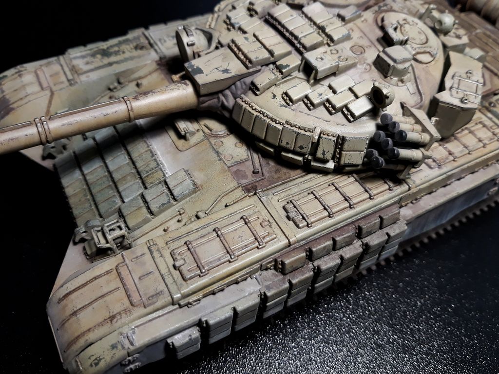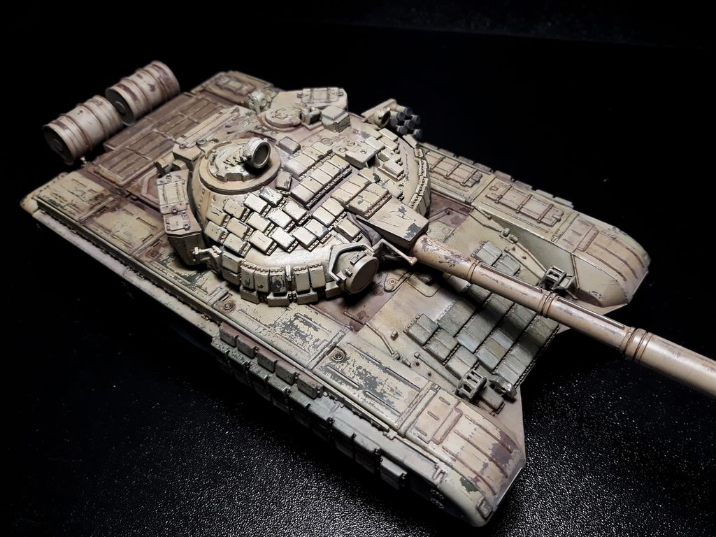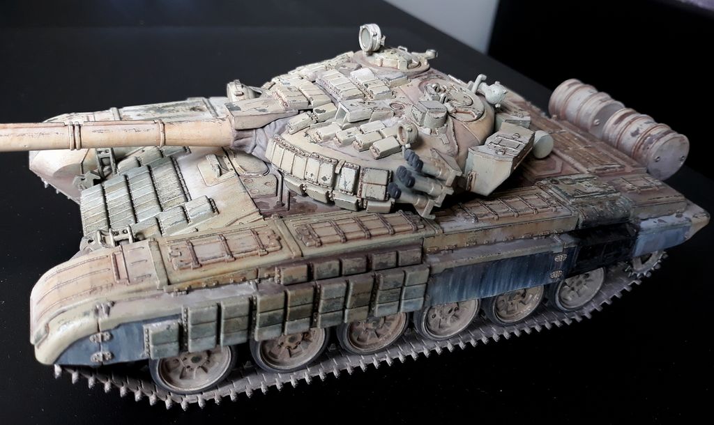 Добрый день господа. Представляю вашему вниманию небольшую диораму. Цель была сформирована выходя из возможностей. Был конкурс в группе "Звезда", в котором я занял призовые места. В совокупности балов выбрал призы. Один из них был замечательный набор:"Российские Танкисты 1/35". Просто отличный набор фигурок, по очень заманчивой цене. Проработка, позы, качество, стыкуемость и т.д., для пластмассовых фигурок - отличное. Далее он был расписан и отложен на долгое время. Примерно через год был подарен братом танк Т-72Б 1/35 от той же Звезды. Тут и решил собрать диораму. Цель была одна, попробовать новые техники росписи и элементы ландшафта. В связи с чем выбрал ландшафт - джунгли. К дополнениям прикупил набор фигурок от фирмы ICM - Soviet Tank Crew 1/35. Матчасть в принципе пошла по боку, камок тоже. Кое что сверил с оригинальным Т-72Б, расположение динамической защиты (В наборе не хватает процентов 30 блоков ДЗ). Антенну добавил и еще некоторые чисто декоративные части применил, кое что переделал, пулеметная лента, щиток, трос, бортовой экран полностью переделан, фары, к каждой дымовой шашке подведен "кабель" (некоторые выстреленные), на башне тоже имеются места где отсутствовали кабеля и т.д. (Пилил много чего, всего не упомню, работа было сделана год назад). Весь ландшафт - самодел. Собственно почти все техники создания и росписи были опробованы впервые. На бочке сколы делались с помощью лака для волос, на танке - кистью. Сама диорама никакой исторической нагрузки не несет, как и нет прототипов, на которые я бы опирался при создании диорамы.