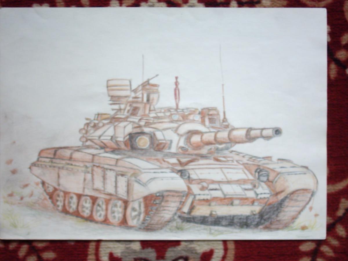 Этот танк был нарисован в году эдак 98 или 99. Точно не помню. Тогда не было игры World of Tanks, и вдохновение на рисование таких рисунков черпалось из журналов про вооружения армий. Знаю, что в нем много ошибок, я посмотрел рисунки Sypex, у него техника рисования гораздо лучше, правильно прорисованные катки, не как у меня, например. Но я его срисовывал с обложки и там катков не было видно, там была тень и я эту часть дофантазировал самостоятельно. Но я нигде этому не учился, рисовать меня научил отец, в основном базовые знания. Почему я выложил этот рисунок. Я вспомнил, что танки также рисовал и мой отец. Я нашел на книжной полке его тетрадь. Там были стихи и рисунки. Классные рисунки. В ней на одном листе была нарисована Panther'а и Tiger, правда шариковой ручкой, видимо во время уроков или сочинения стихов :) Я помню, как долго ими любовался. Я бы хотел их выложить здесь, но к сожалению при переезде я эту тетрадь утратил. Рисуйте всегда и везде. Хоть на уроках! Но не бросайте рисовать! P.S. Правым кликом по мыши в доп.вкладке или отдельном окне можно увидеть БОЛЬШУЮ картинку.