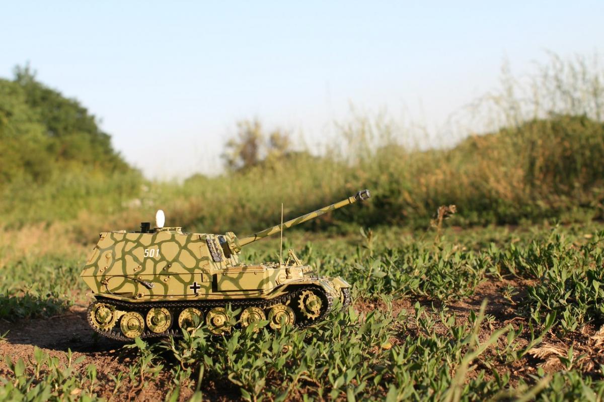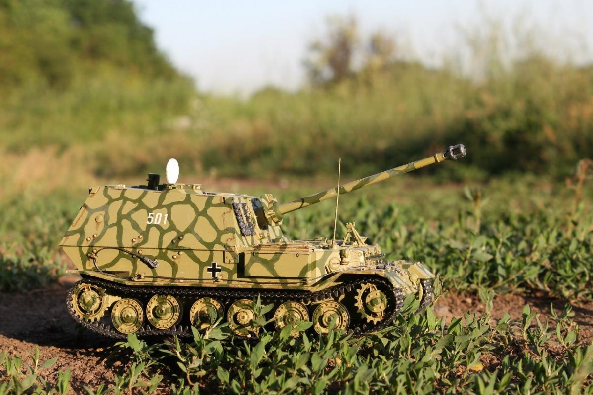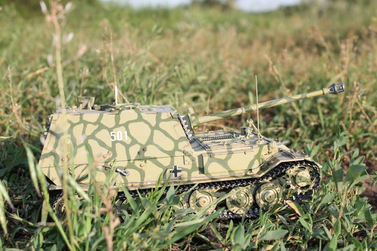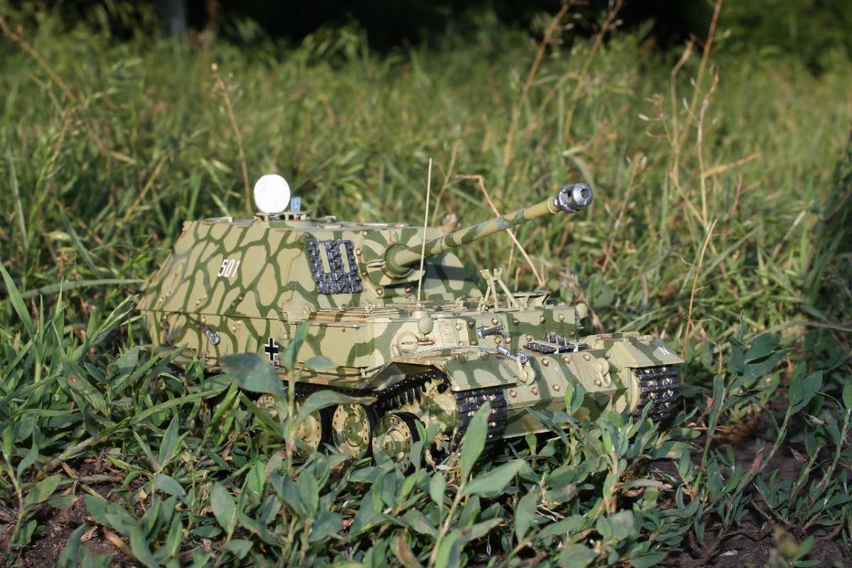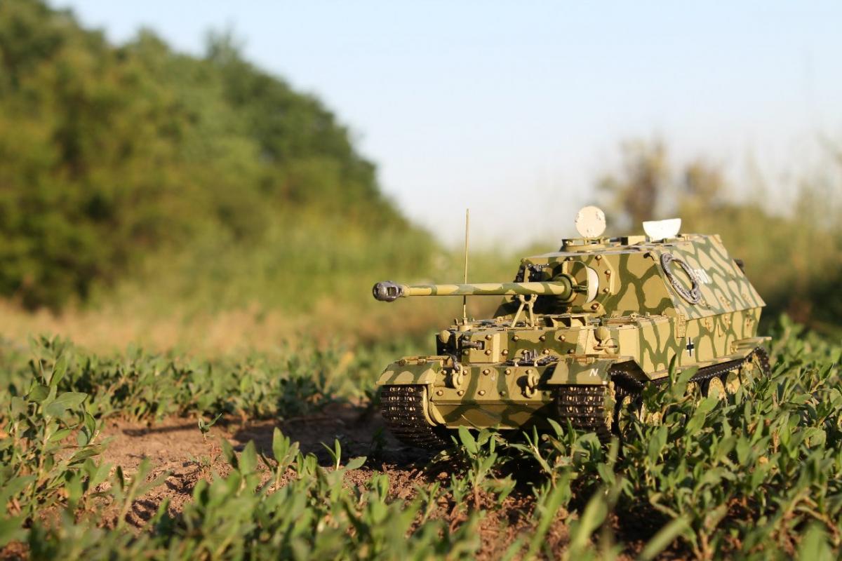 Узрите это чудо немецкого танкостроения Противотанковая самоходка Фердинанд от фирмы "Звезда". Хотелось собрать что-нибудь такое, чтобы Муразор порадовался, поэтому выбрал немцев и мой выбор пал на эту модель)) Камуфляж, который я сделал, использовался в Битве на Курской Дуге 1943г. Модель приятная, мне понравилась и не очень сложная в сборке. Так же немного вложился в фототравление и нужные эффекты. P.S. не хватало одной детали, но эта проблема решилась быстро)