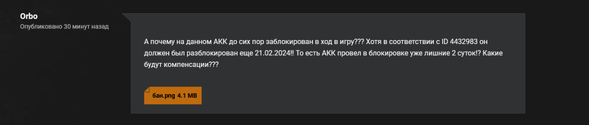 А расскажите мне пожалуйста как так получается, что у вас ЦПП раздает баны за одно и тоже, якобы нарушение, два раза??? Тоже самое касается работы форума... Почему я отправил письмо по адресу: forum.tanki@lesta.games еще 20 февраля и до сих пор на него не получил ответа???