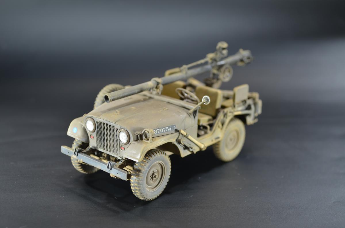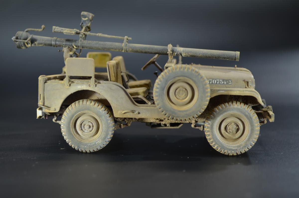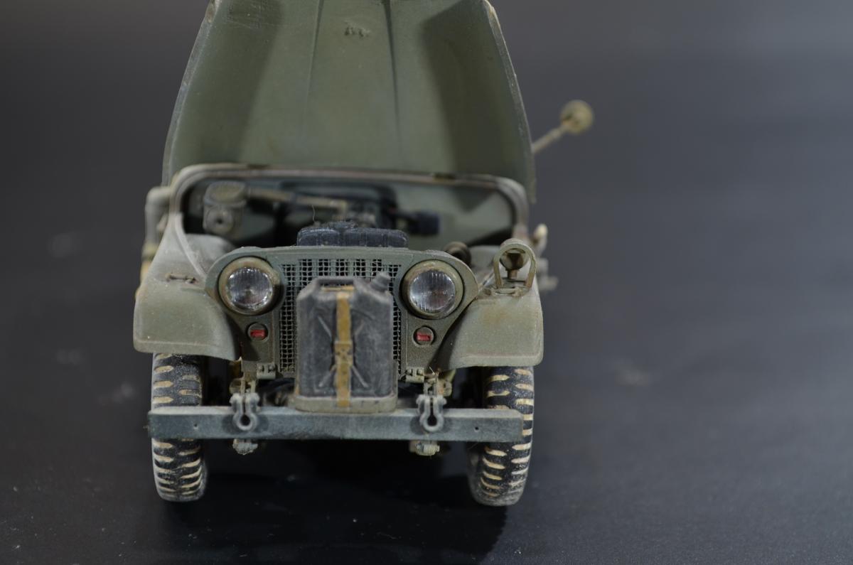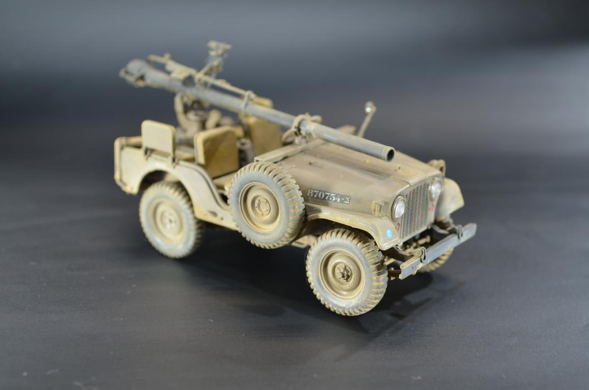 Практически одновременно с организацией выпуска джипа Willys-MC M38 компания Виллис разработала более солидный 4-х местный вариант Willys-MD или M38A1, также относившийся к категории 1/4 тонны. Первые образцы M38A1 были построены и испытаны весной 1951 года, в 1952 новый джип стал поступать на вооружение. Серийное производство базовой модели M38A1 началось в 1953 году.Willys-MD M38A1 был выполнен на новом, удлиненном всего на один дюйм шасси своего предшественника M38, но оснащался новым силовым агрегатом F4-134 Hurricane от обновленного гражданского автомобиля CJ3B, базировавшегося в свою очередь на шасси CJ3A. Он представлял собой доработанный 4-х цилиндровый 2,2 литровый двигатель от старого джипа MB, оборудованный новой головкой блока с комбинированным расположением клапанов — верхние впускные и нижние выпускные.Столь существенная модернизация позволила повысить мощность до 62 л.с, но при этом мотор получился более высоким. Что предопределило приподнятое расположение округлого капота и соответственно привело к существенному изменению внешнего оформления передней части машины.На ней применялась повышенная облицовка радиатора от модели M38, но фары и подфарники по образцу Виллиса-МВ размещались в круглых отверстиях. Прежние прямоугольные крылья уступили место обтекаемым, интегрированным в общую конструкцию открытого цельнометаллического кузова с новым двухсекционным откидным лобовым стеклом и тентом. От джипа M38 использовались боковые светомаскировочные фары и шины размером 7,00-16.Вместимость топливного бака возросла на два галлона и составила 64,3 литра. По заказу в передней части рамы монтировали и механическую лебедку с тяговым усилием 2,5 тс. При этом все агрегаты трансмиссии и ходовой части, а также основные параметры существенных изменений не претерпели.Колесная база Willys-MD M38A1 составила 2057 мм, габаритные размеры с тентом — 3517x1539x1850 мм. Снаряженная масса — 1233 кг, полная — 1773 кг. Запас хода — 450 км. Базовое шасси применялось в качестве штабного или патрульного автомобиля для доставки экипажа из четырех-пяти человек с личным оружием. Оснащалось легкими системами вооружения, радиостанциями и осветительными прожекторами. Гражданский вариант джипа имел обозначение CJ5. Окраска ARM.PNT, пигменты МХП.