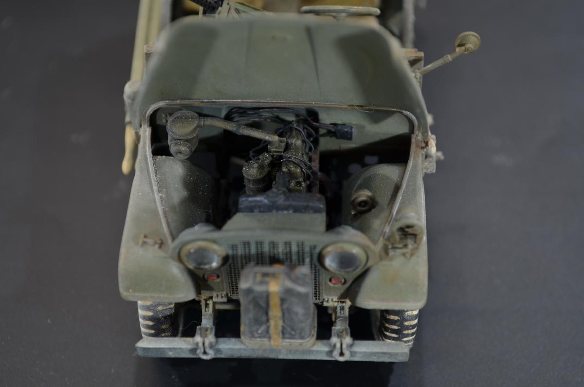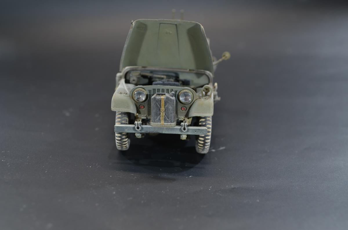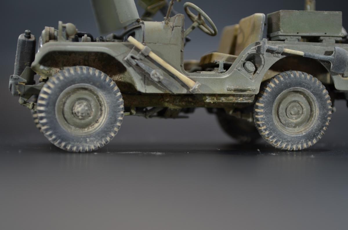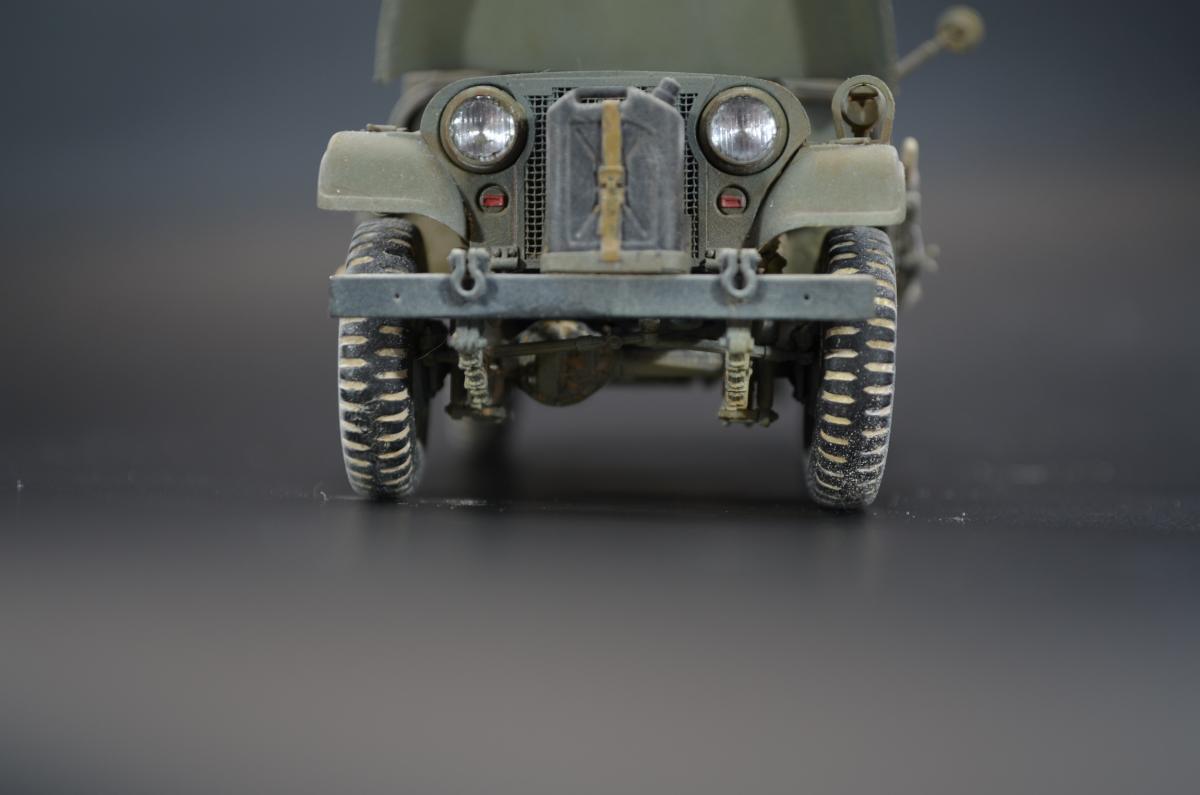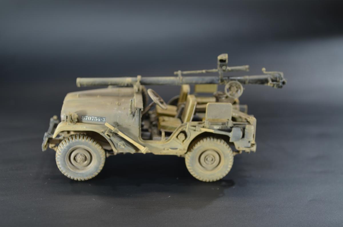 Практически одновременно с организацией выпуска джипа Willys-MC M38 компания Виллис разработала более солидный 4-х местный вариант Willys-MD или M38A1, также относившийся к категории 1/4 тонны. Первые образцы M38A1 были построены и испытаны весной 1951 года, в 1952 новый джип стал поступать на вооружение. Серийное производство базовой модели M38A1 началось в 1953 году.Willys-MD M38A1 был выполнен на новом, удлиненном всего на один дюйм шасси своего предшественника M38, но оснащался новым силовым агрегатом F4-134 Hurricane от обновленного гражданского автомобиля CJ3B, базировавшегося в свою очередь на шасси CJ3A. Он представлял собой доработанный 4-х цилиндровый 2,2 литровый двигатель от старого джипа MB, оборудованный новой головкой блока с комбинированным расположением клапанов — верхние впускные и нижние выпускные.Столь существенная модернизация позволила повысить мощность до 62 л.с, но при этом мотор получился более высоким. Что предопределило приподнятое расположение округлого капота и соответственно привело к существенному изменению внешнего оформления передней части машины.На ней применялась повышенная облицовка радиатора от модели M38, но фары и подфарники по образцу Виллиса-МВ размещались в круглых отверстиях. Прежние прямоугольные крылья уступили место обтекаемым, интегрированным в общую конструкцию открытого цельнометаллического кузова с новым двухсекционным откидным лобовым стеклом и тентом. От джипа M38 использовались боковые светомаскировочные фары и шины размером 7,00-16.Вместимость топливного бака возросла на два галлона и составила 64,3 литра. По заказу в передней части рамы монтировали и механическую лебедку с тяговым усилием 2,5 тс. При этом все агрегаты трансмиссии и ходовой части, а также основные параметры существенных изменений не претерпели.Колесная база Willys-MD M38A1 составила 2057 мм, габаритные размеры с тентом — 3517x1539x1850 мм. Снаряженная масса — 1233 кг, полная — 1773 кг. Запас хода — 450 км. Базовое шасси применялось в качестве штабного или патрульного автомобиля для доставки экипажа из четырех-пяти человек с личным оружием. Оснащалось легкими системами вооружения, радиостанциями и осветительными прожекторами. Гражданский вариант джипа имел обозначение CJ5. Окраска ARM.PNT, пигменты МХП.