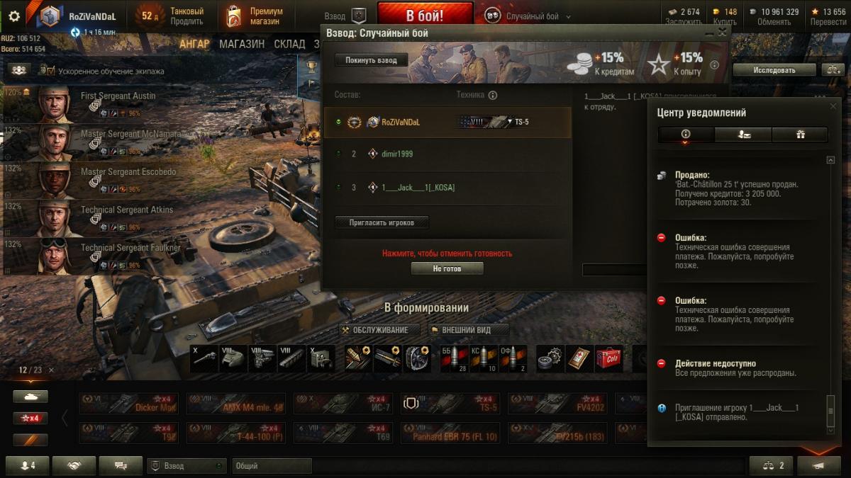 В первые секунды поступления предложения была техническая ошибка совершения платежа.3 раза ошибка, на 4-й раз - танк распродан. Почему вы списываете свои ошибки на игроков? Требую компенсацию.